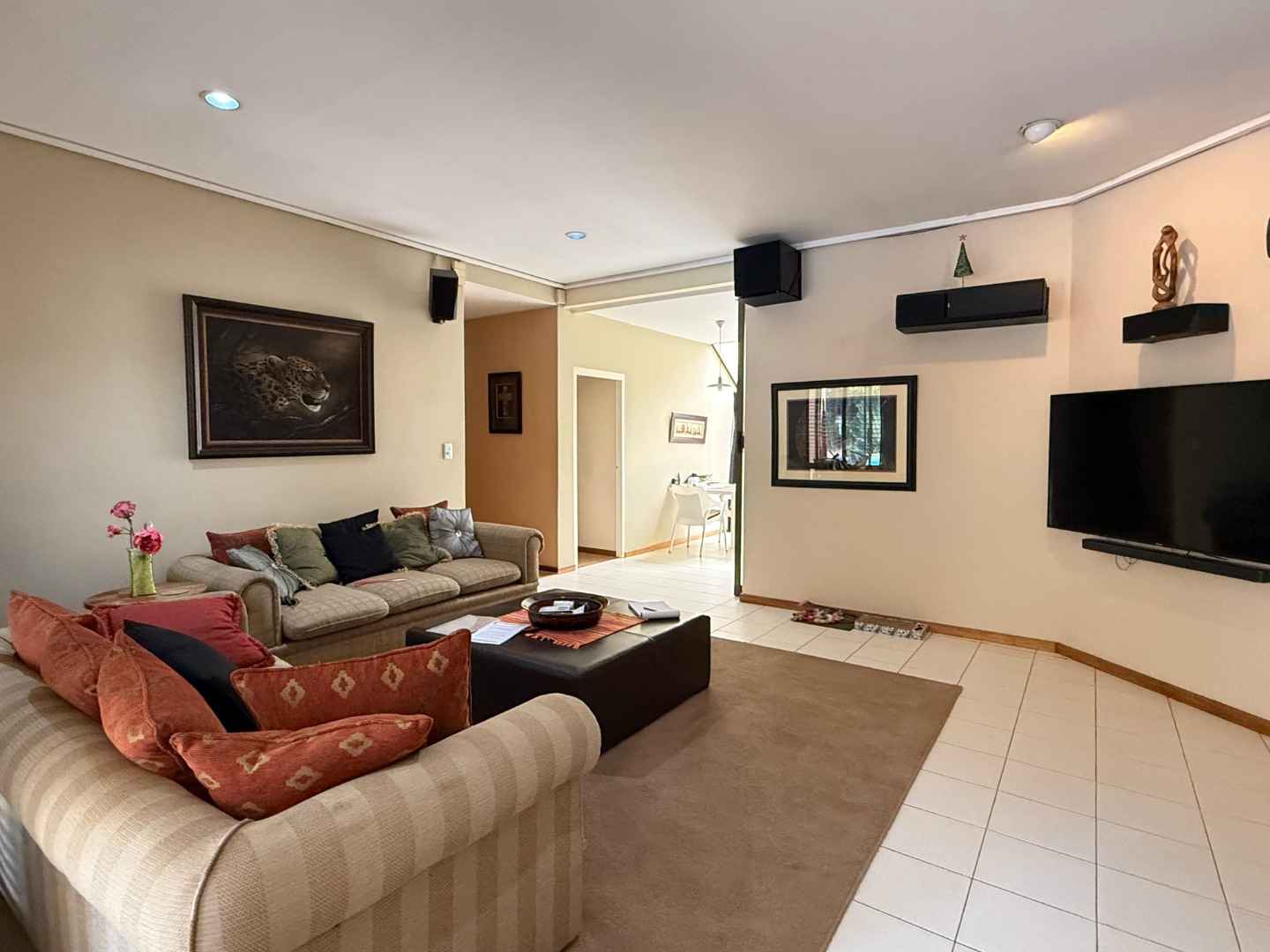 Step inside to discover beautifully designed living spaces including a formal lounge, family room, TV room, and a dedicated study – ideal for working from home. The heart of the home flows seamlessly into a large, covered patio with a built-in braai and bar, perfect for hosting gatherings all year round.