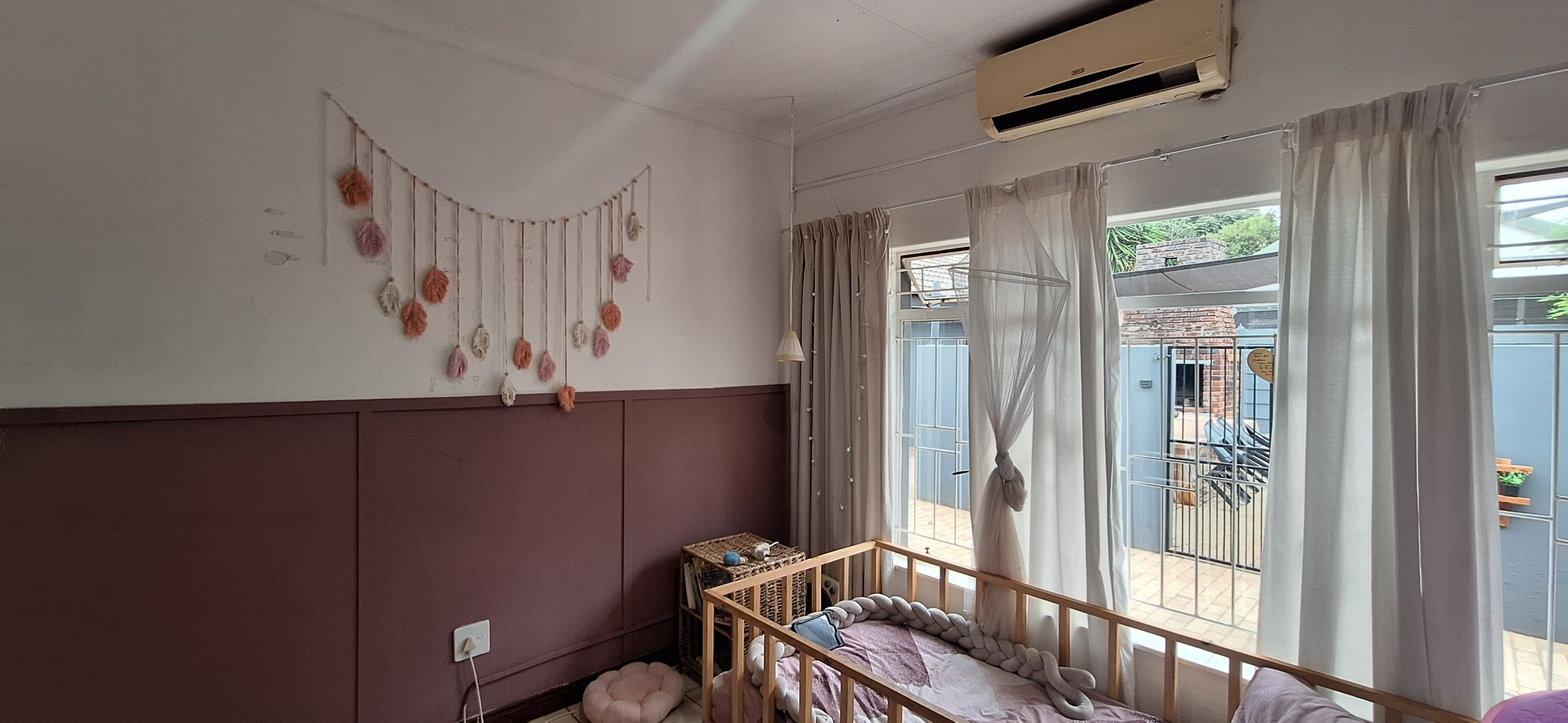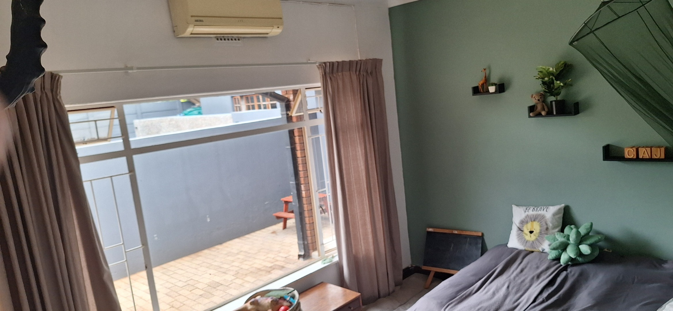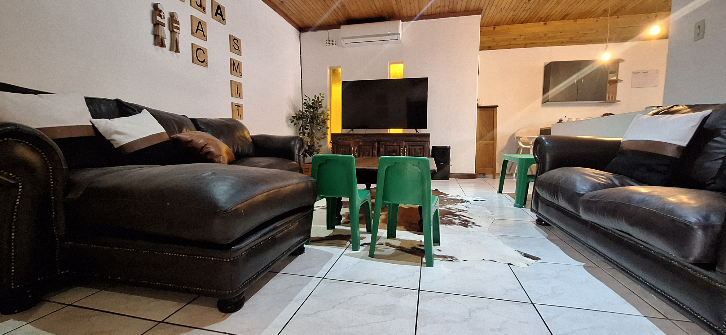 A living area with an aircon.