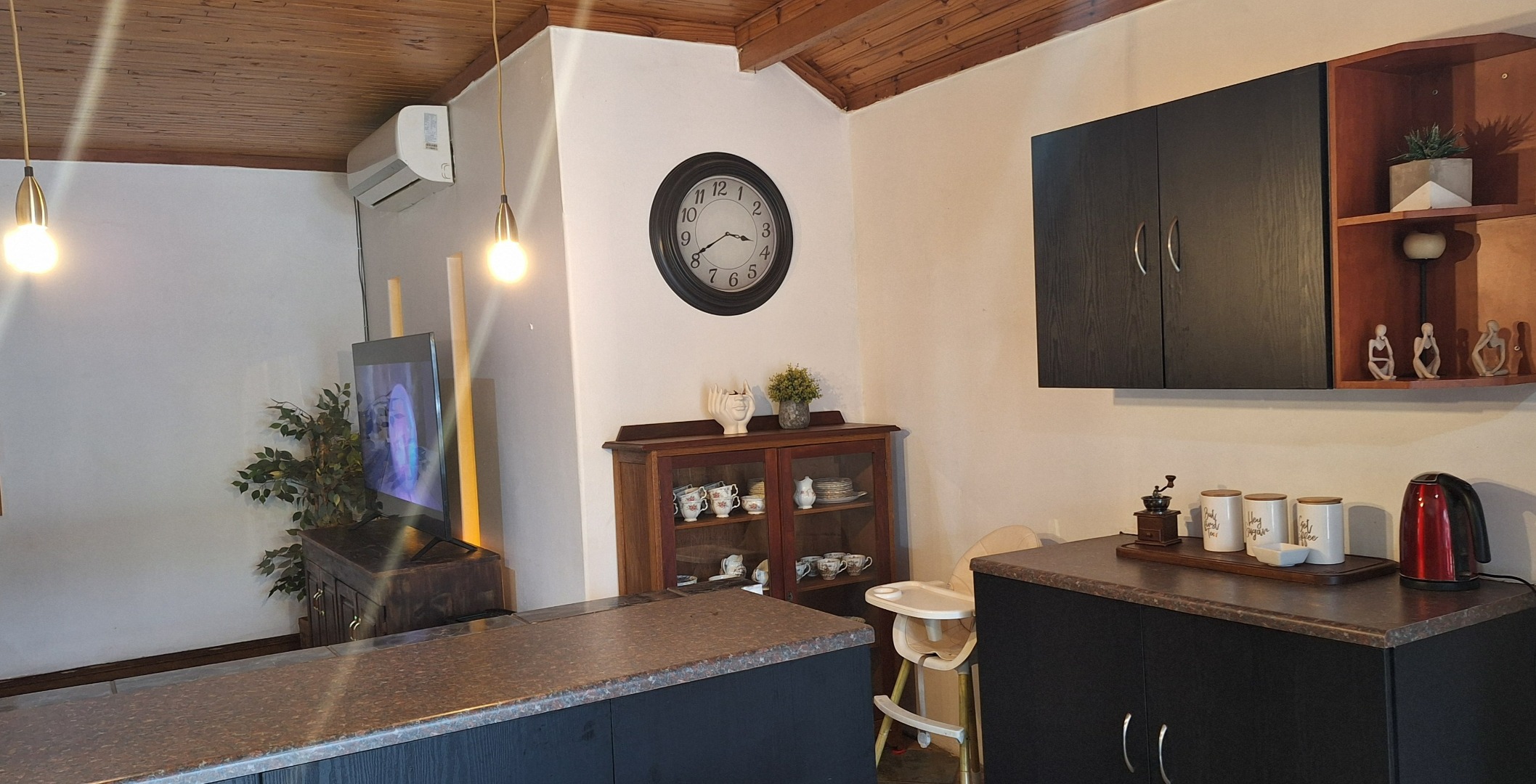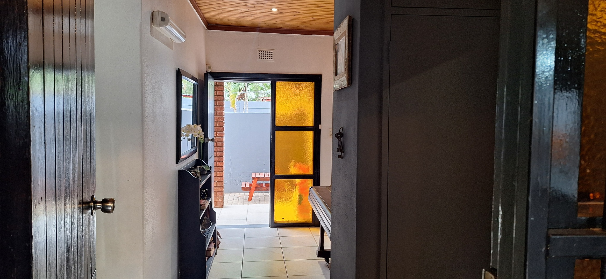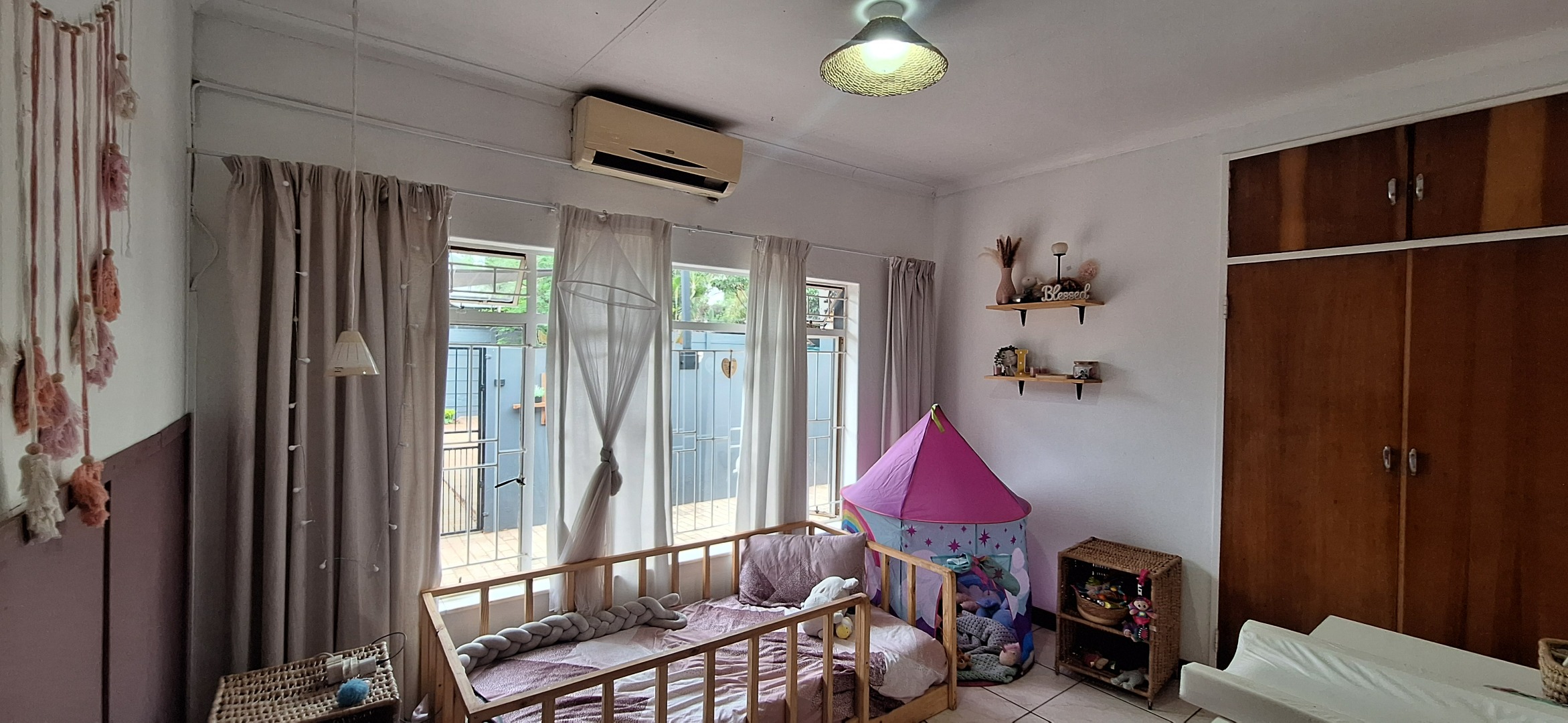 A living area with an aircon.