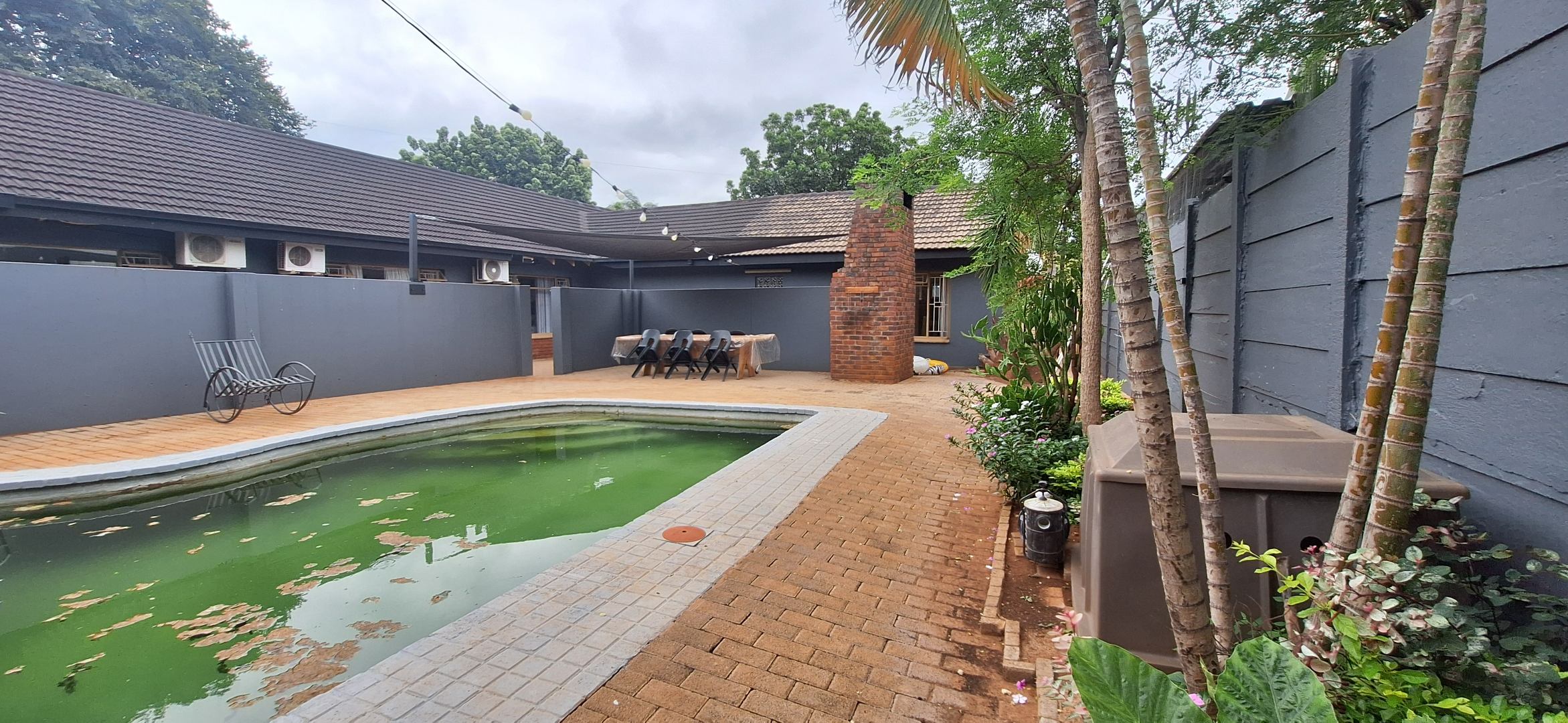 Paved with a built-in braai & Swimming Pool.