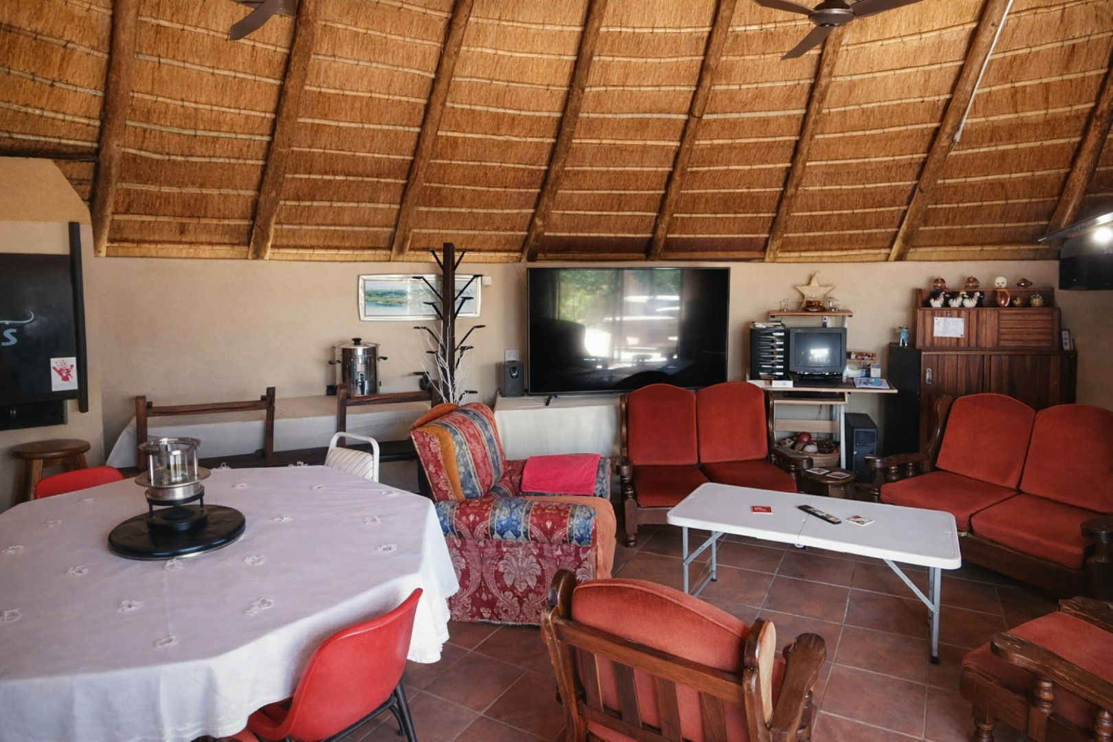 The property features a well-appointed main house comprising two bedrooms, two bathrooms, a comfortable living area, and an open-plan kitchen with TV room. This flows effortlessly to a private Lapa, making it ideal for entertaining or guest use. Additional features include a storeroom and double-shaded net parking.
