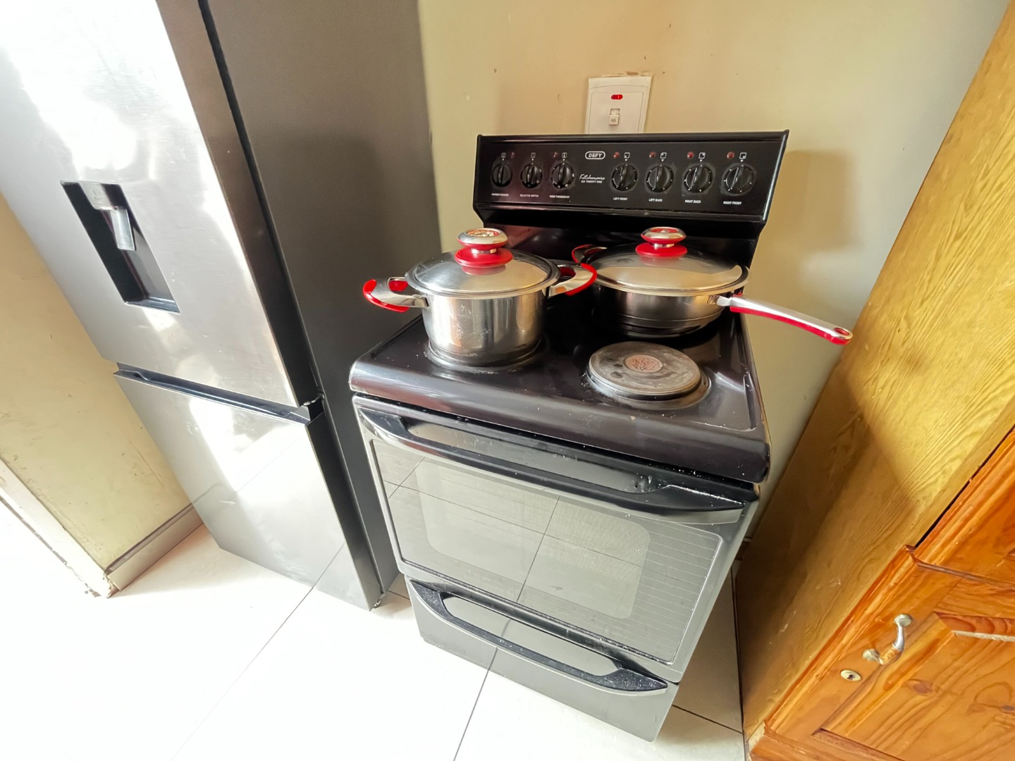 The home welcomes you with a bright and airy open lounge, creating a relaxed space for both everyday living and entertaining. The kitchen is practical and functional, fitted with an electric stove to make cooking effortless.