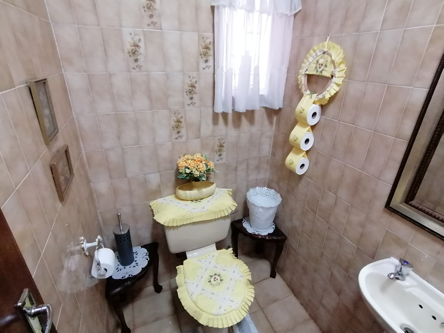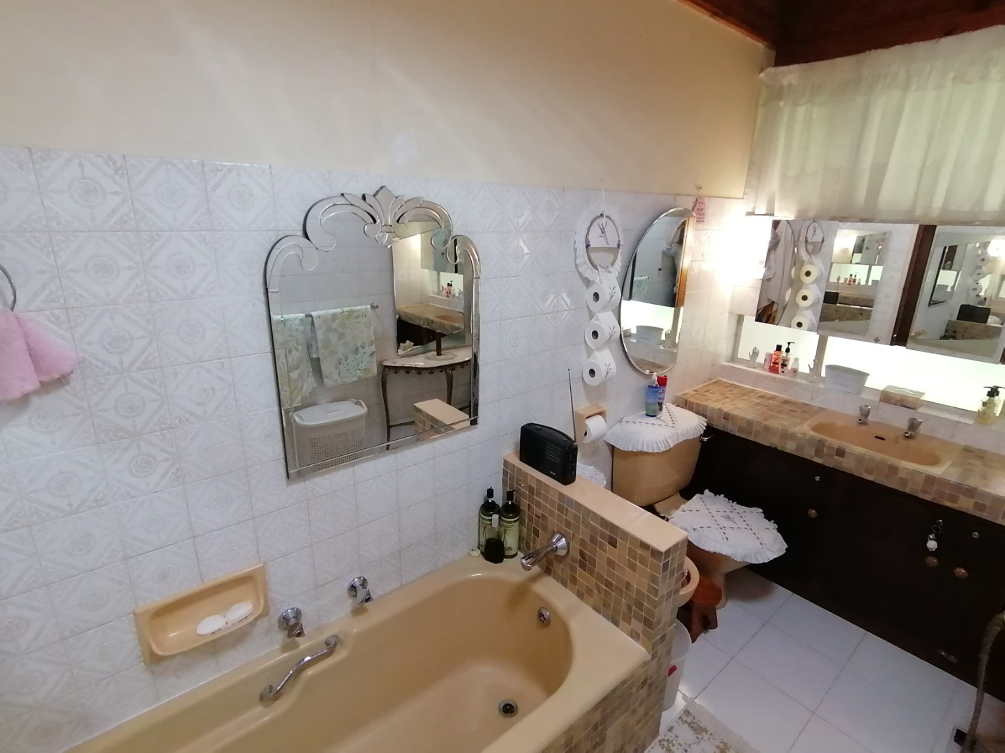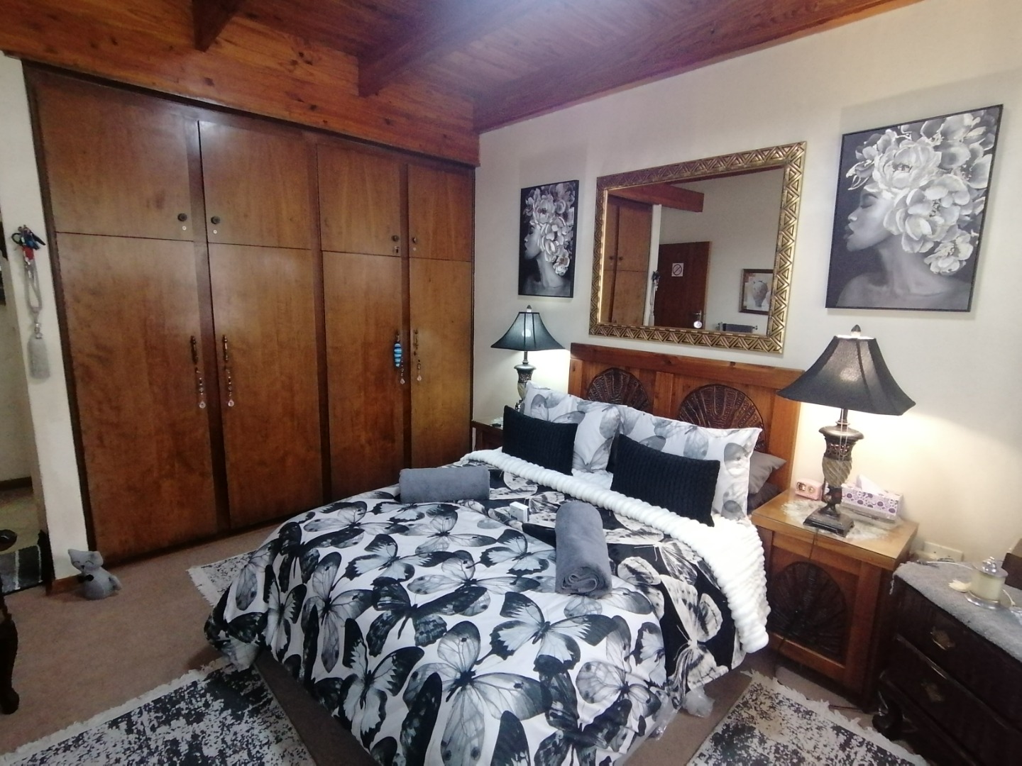 The kitchen includes a double oven and electric built-in stove, a well-appointed scullery and pantry, offering functionality and flow for both everyday living and entertaining. A separate washing room adds convenience, while the double garage and 9 additional parking spaces ensure ample room for family and guests alike.