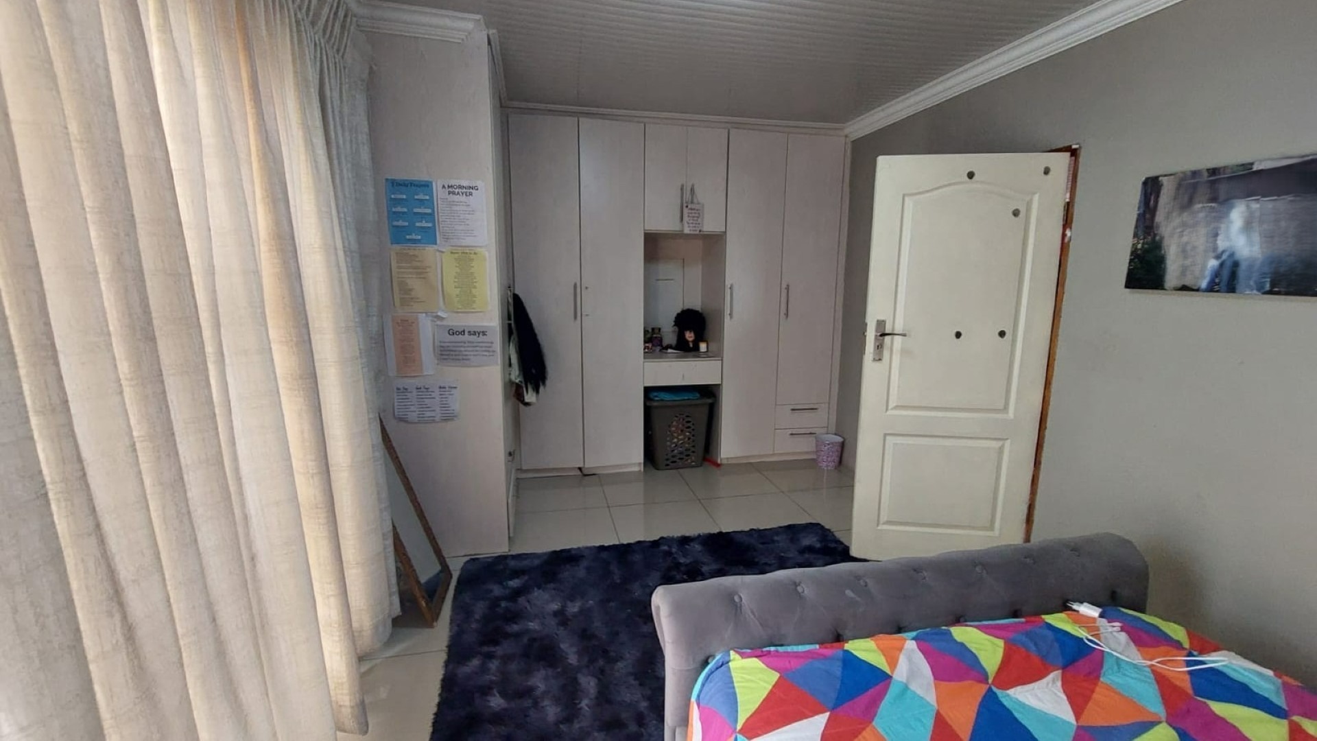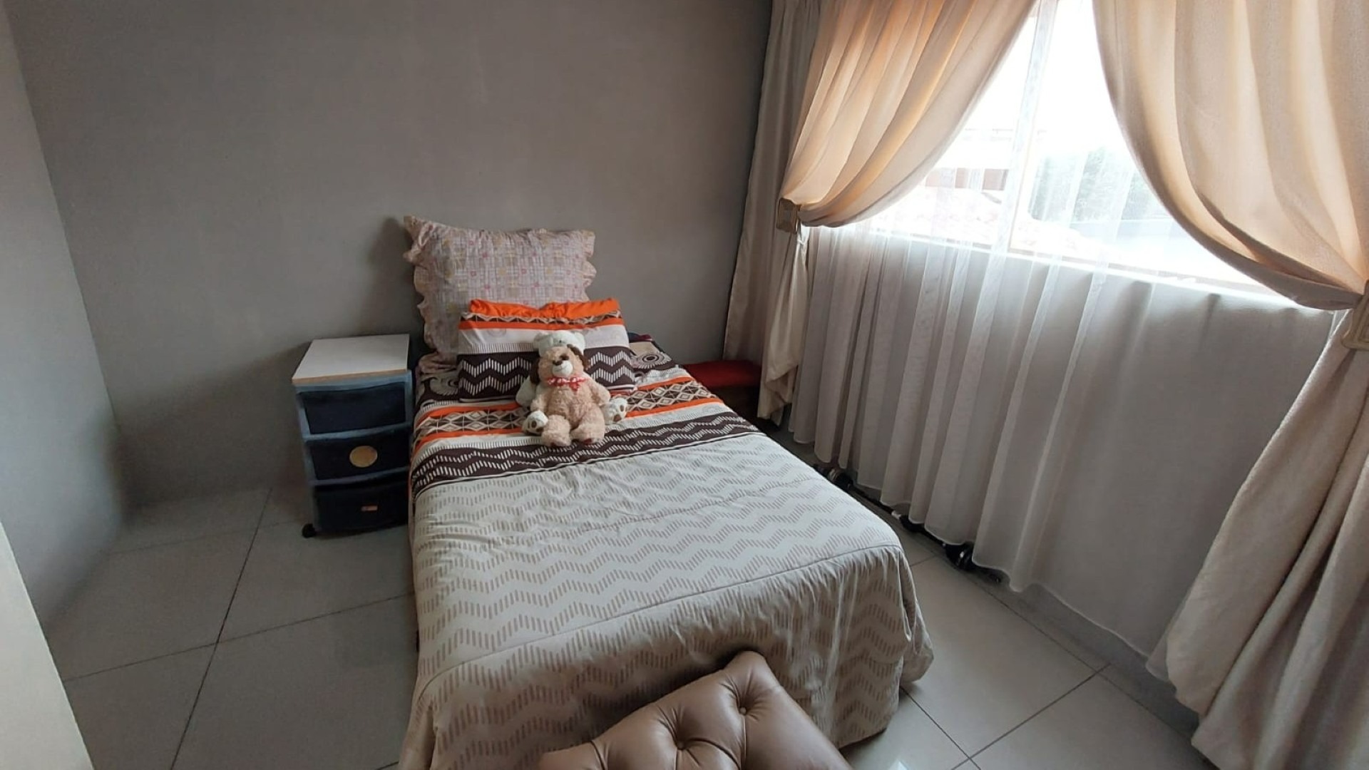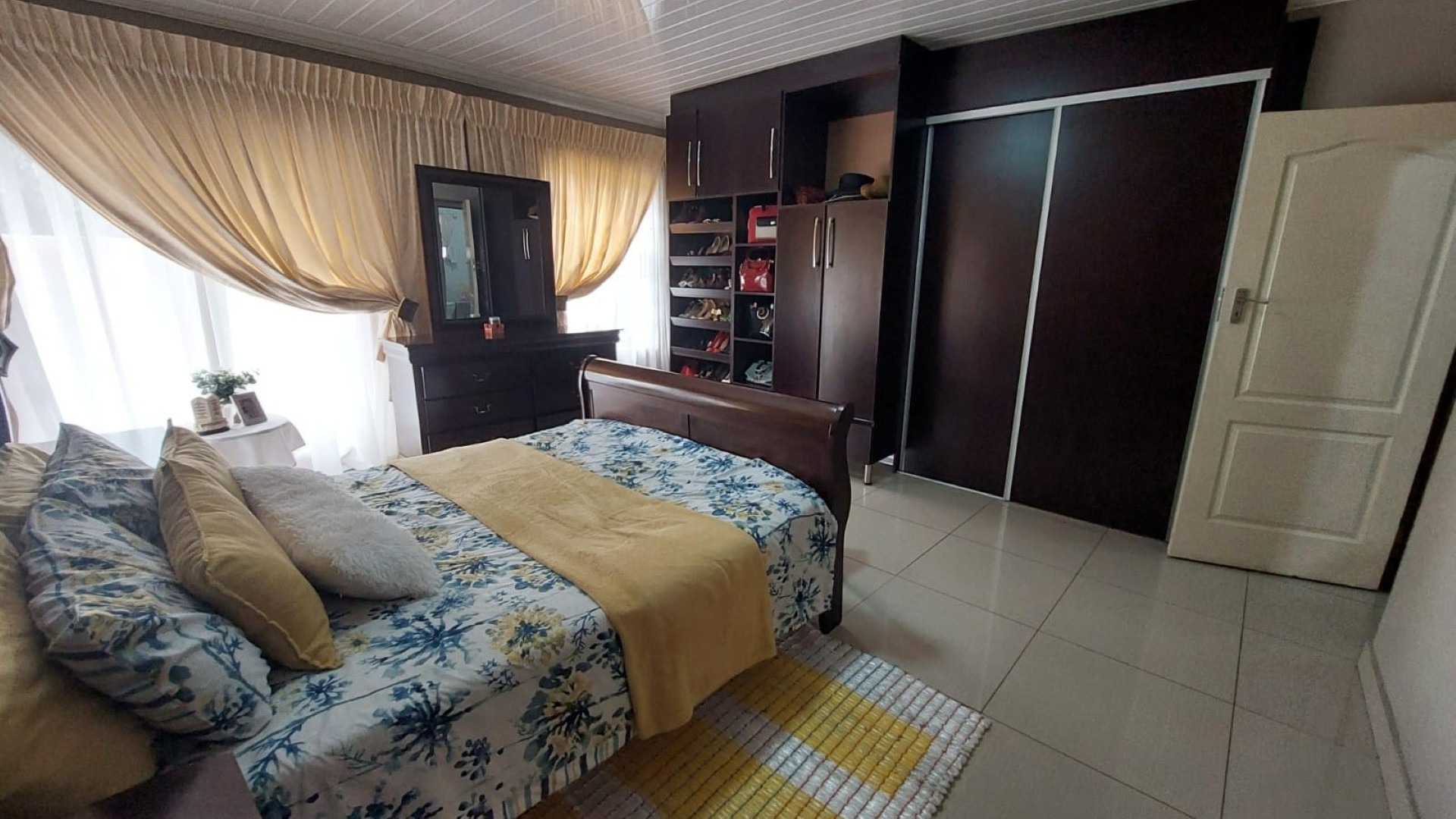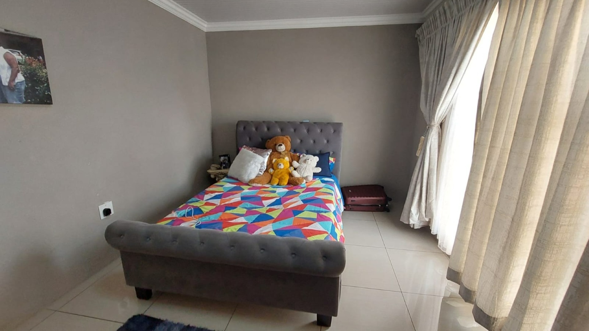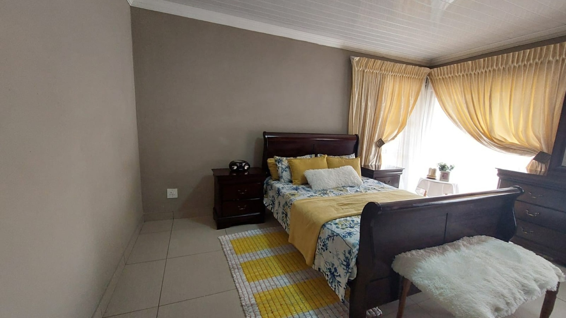 Bedroom 4 Tiled Floors, Double Bed, Curtain Rails