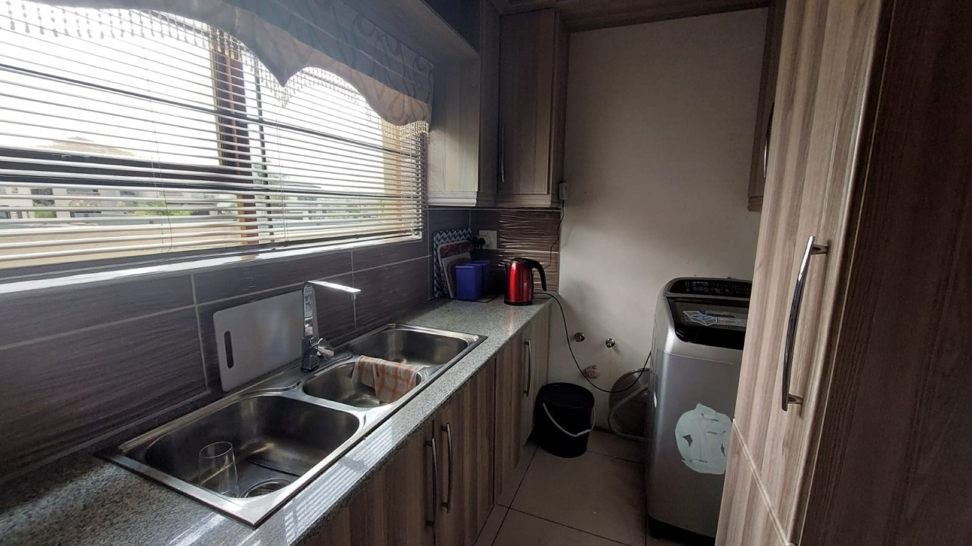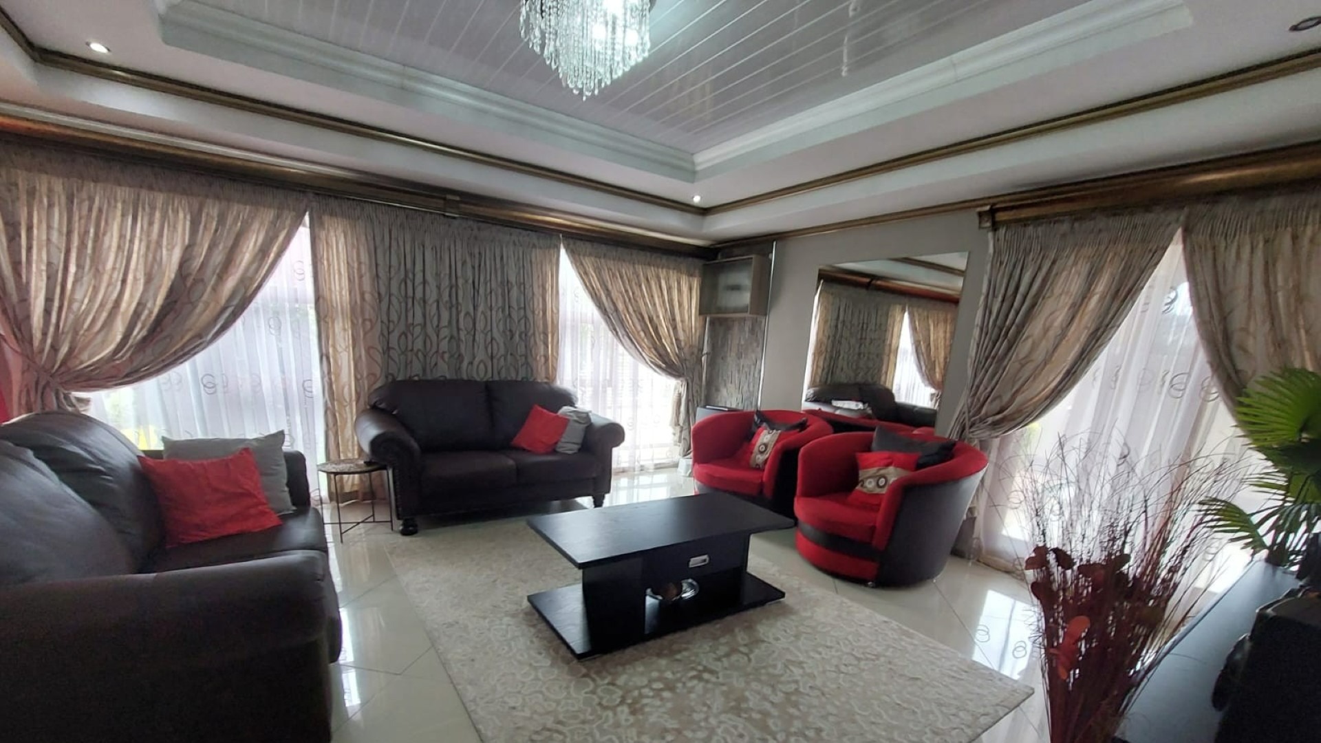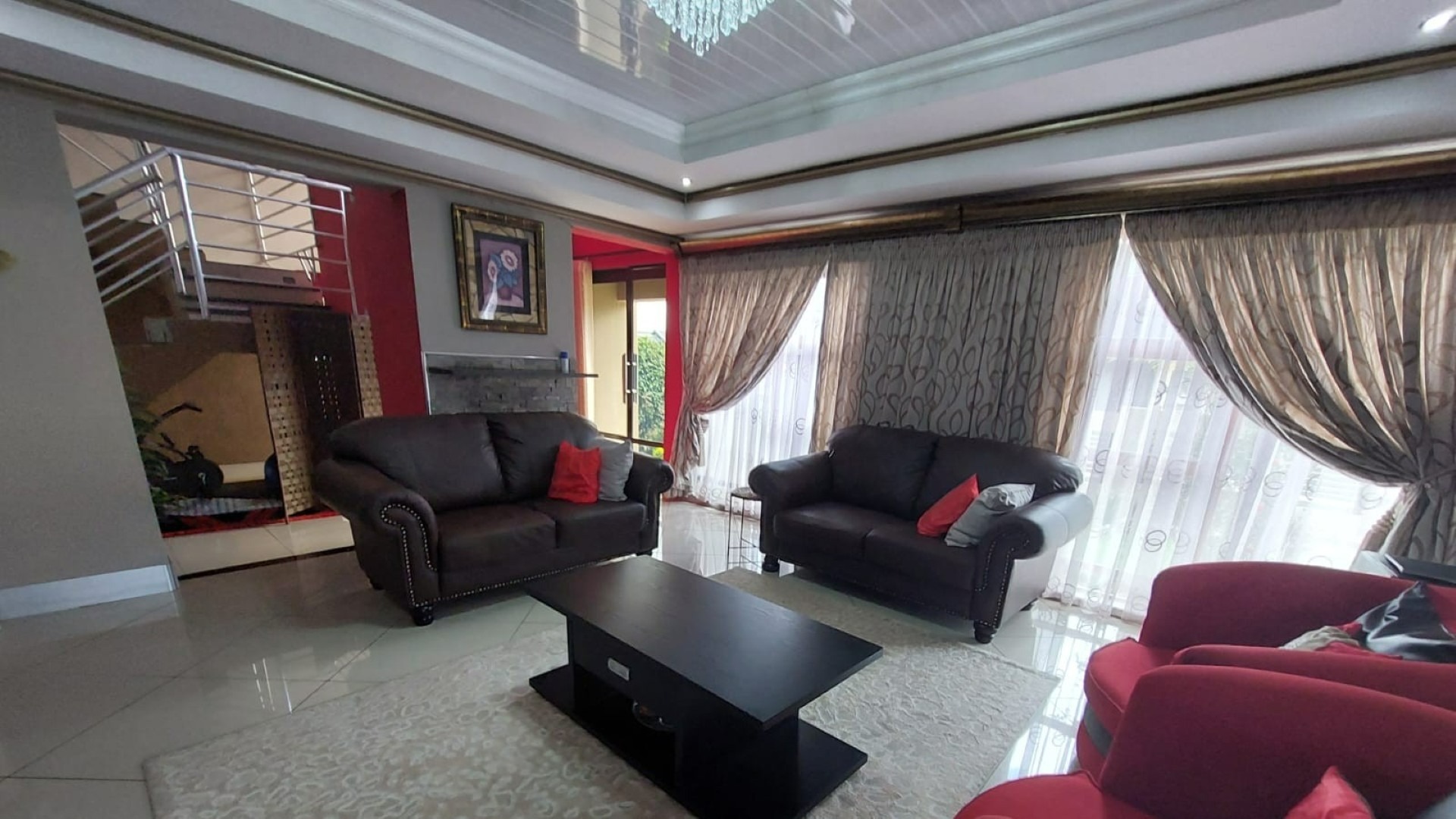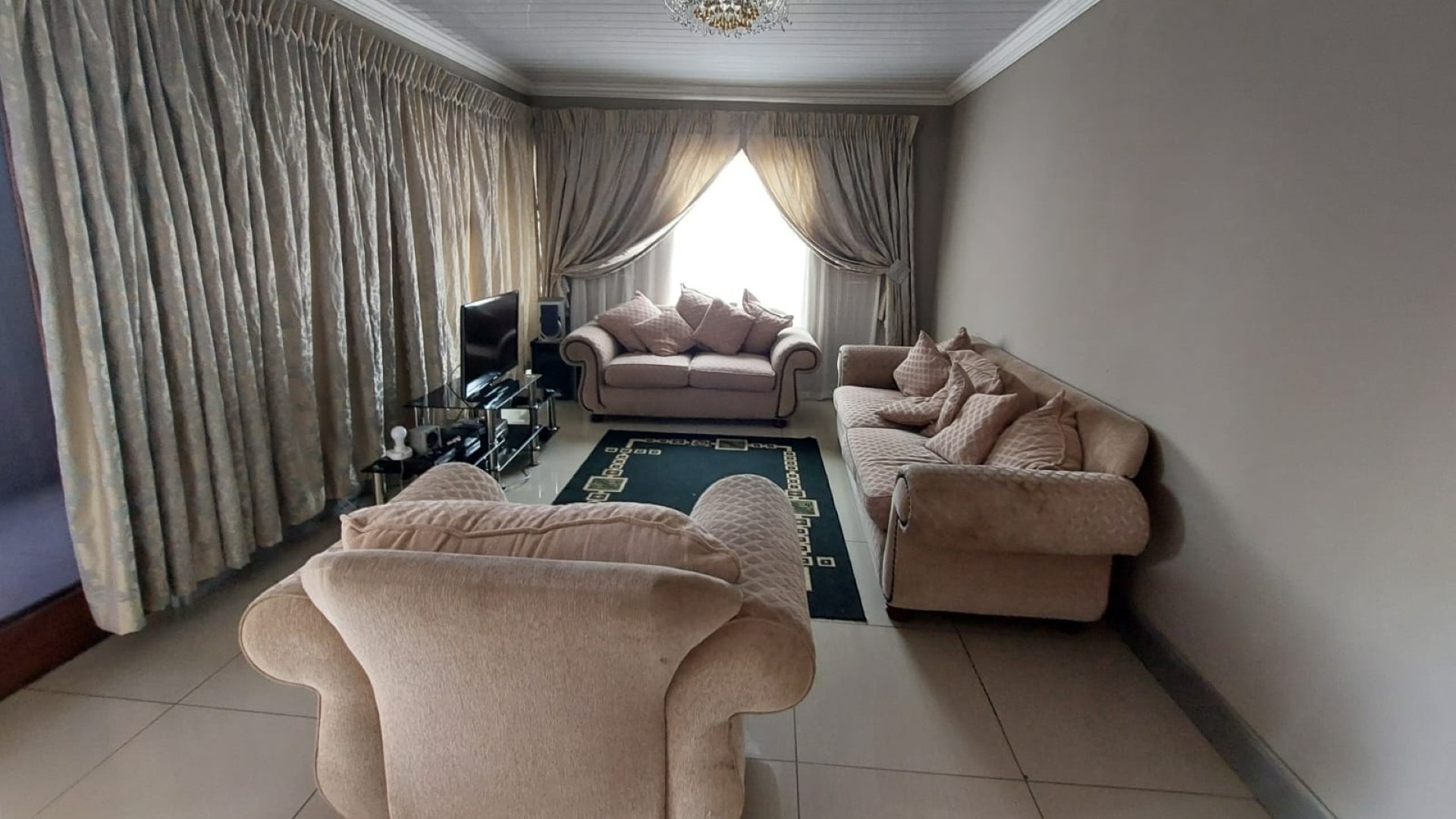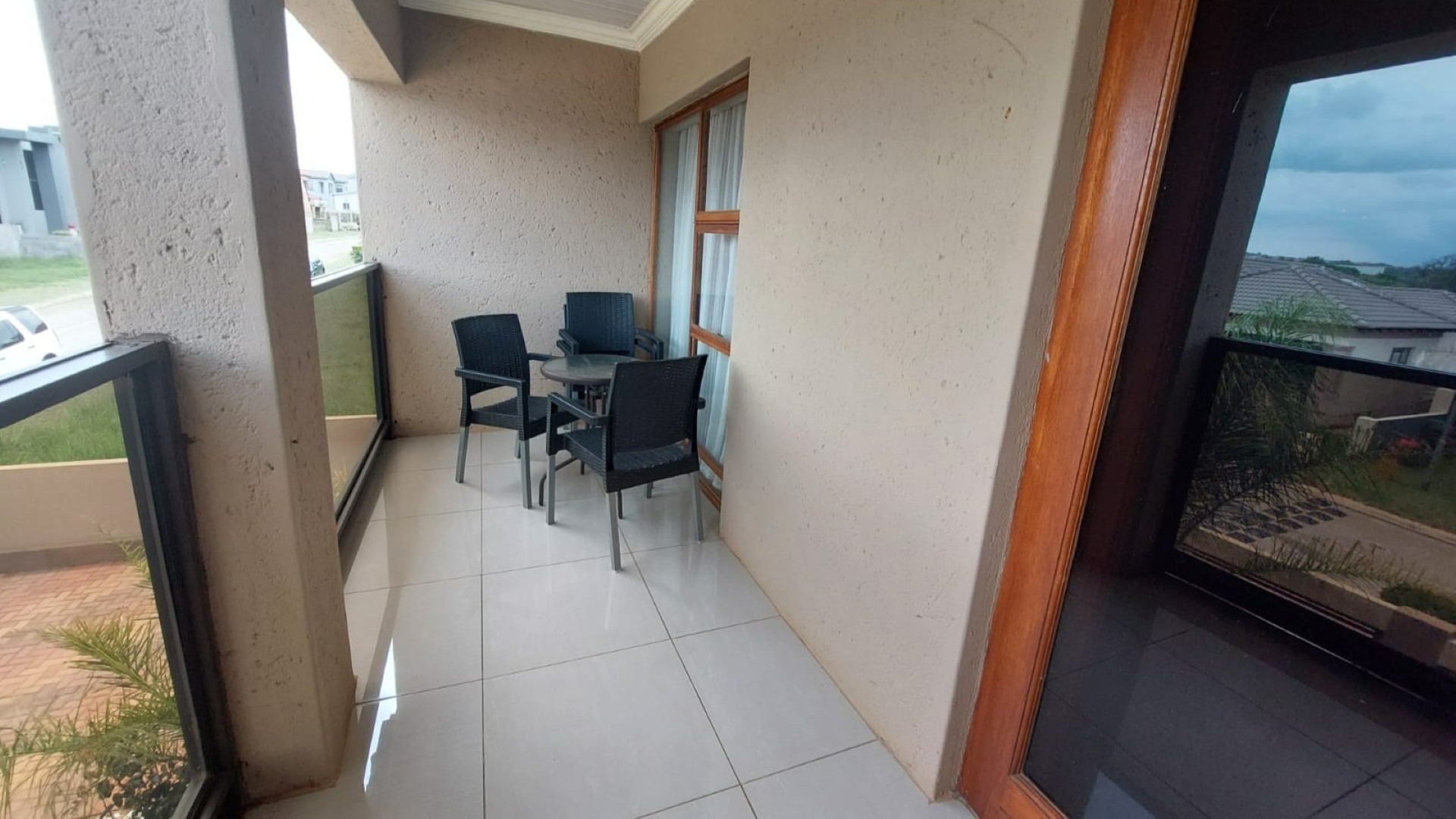Lounge Tiled Floors, Sliding Door, Curtain Rails, Balcony