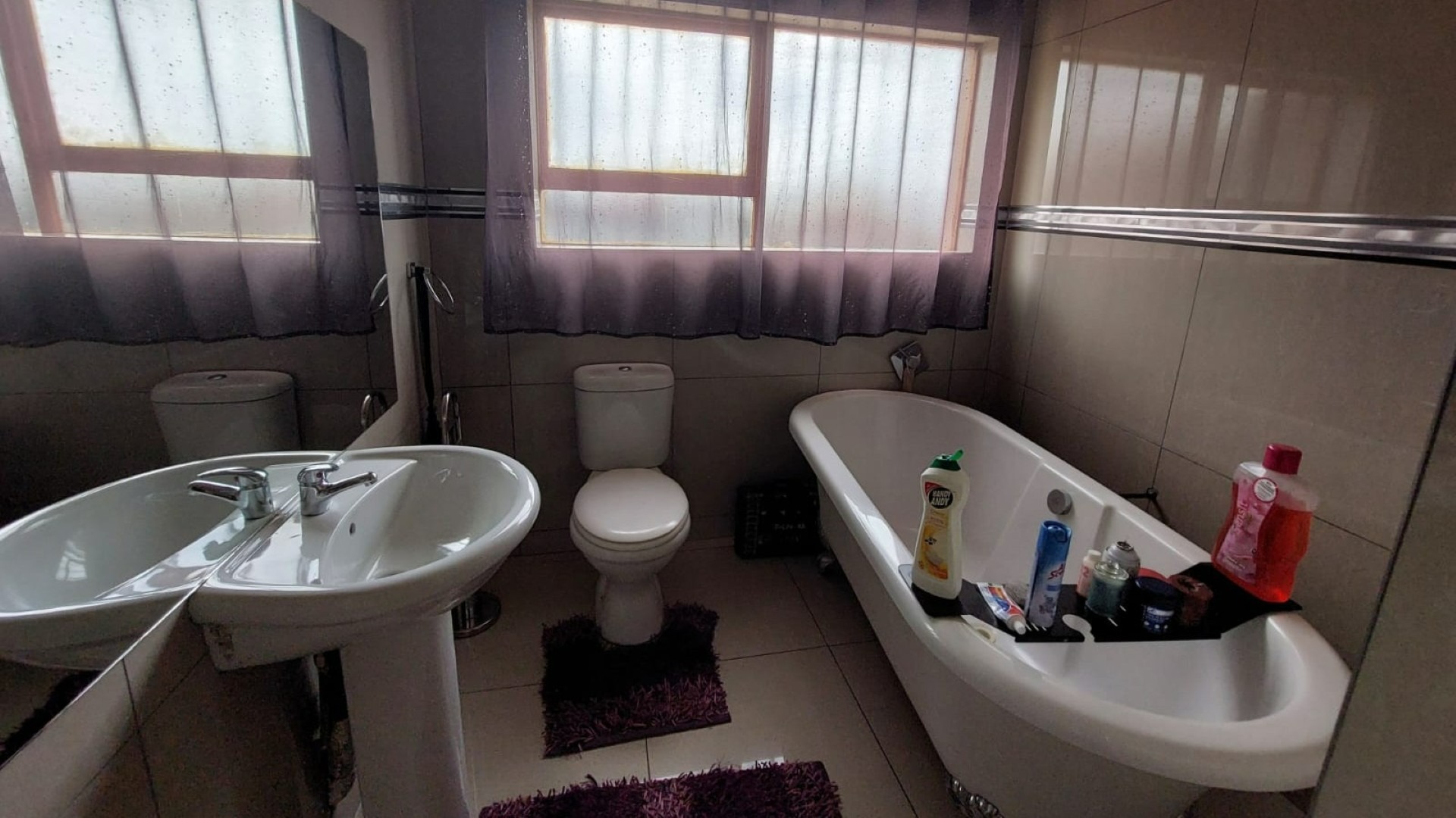 Bathroom 3 Tiled Floors, Bath, Basin and Toilet