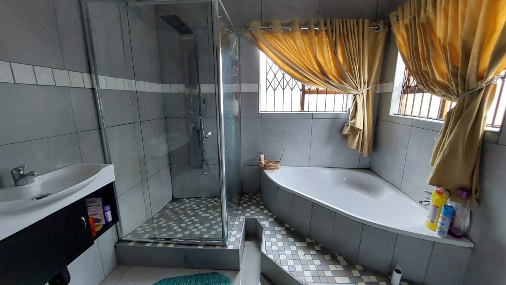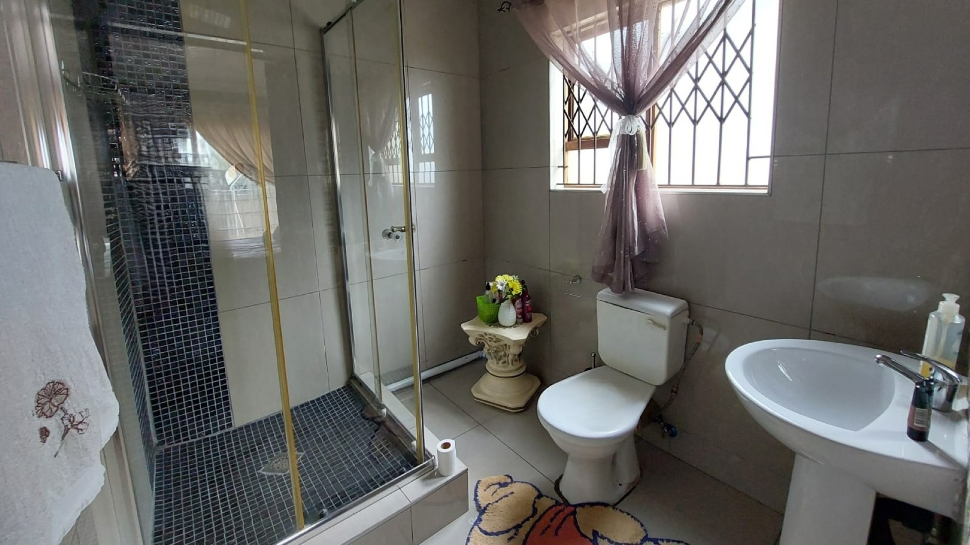 Bathroom 2 Tiled Floors, Shower, Basin and Toilet