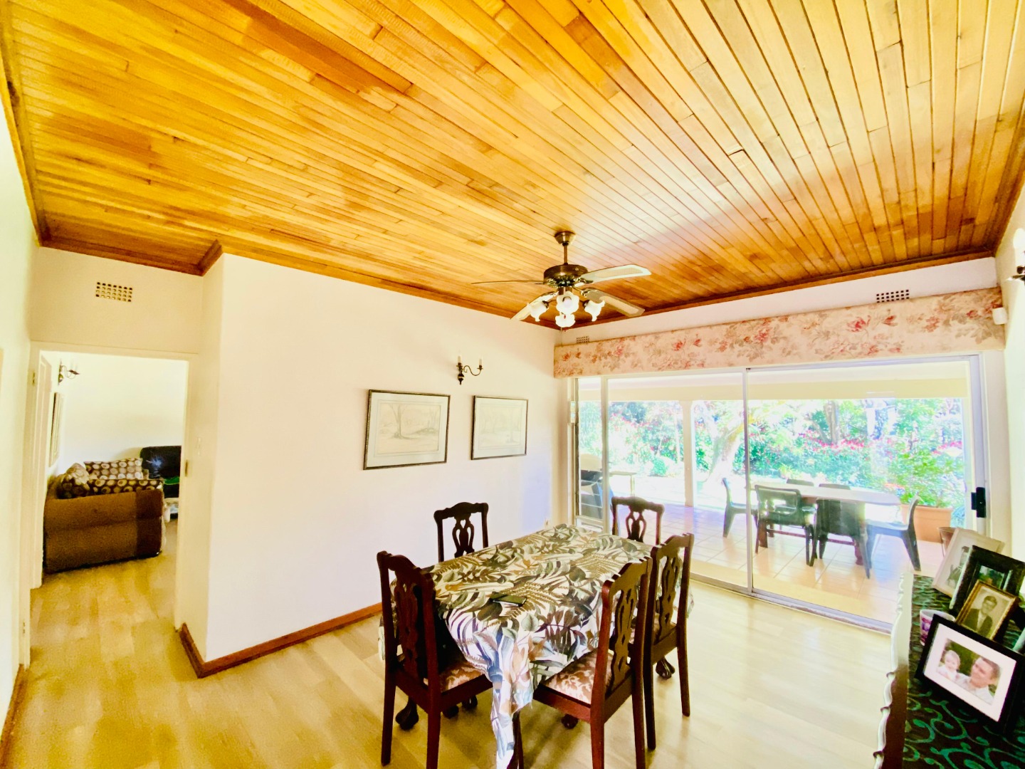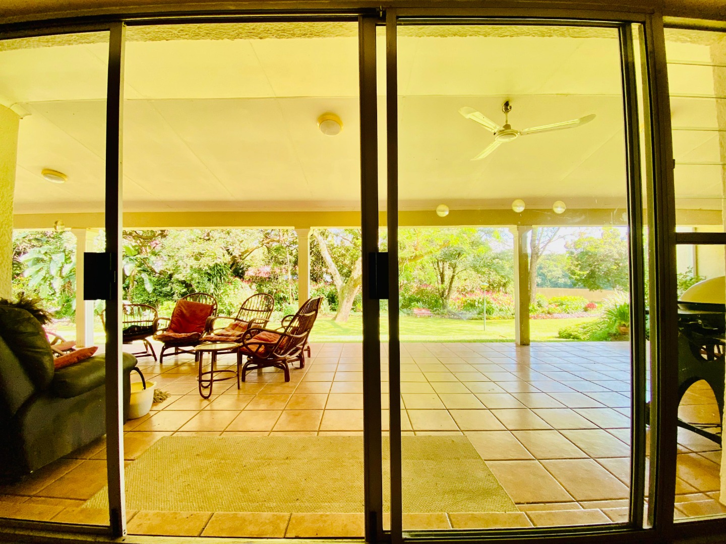 Step outside to discover an expansive, beautifully maintained garden with mature greenery, offering privacy and a sense of escape. The patio further boasts picturesque views of a nearby dam, adding to the peaceful, nature-inspired setting.