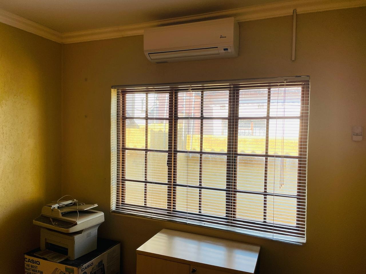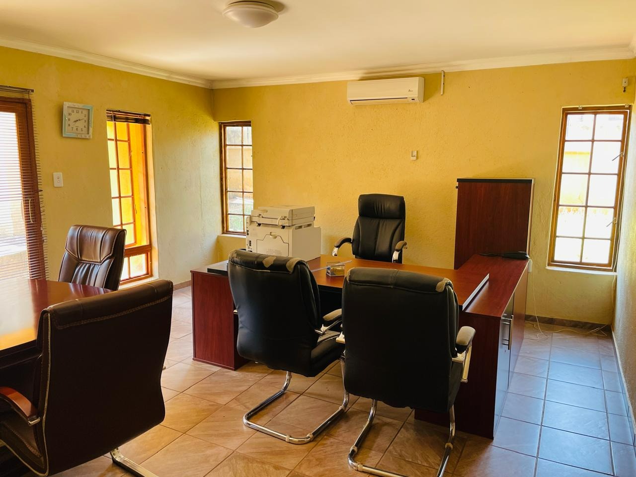 Discover this spacious residential property for sale in Lenyenye A. This family home is conveniently located near schools and shops offering both comfort and convenience. The property features four bedrooms (main bedroom en-suite), spacious lounge, and dining room, 2 bathrooms with separate guest toilet, kitchen and single drive through garage. All rooms are air conditioned. Outside building consists of storeroom, bath and shower combined with 2500 litres Jojo tank. Wall fenced with electric fence. The property was used as an office before and residential zoned.