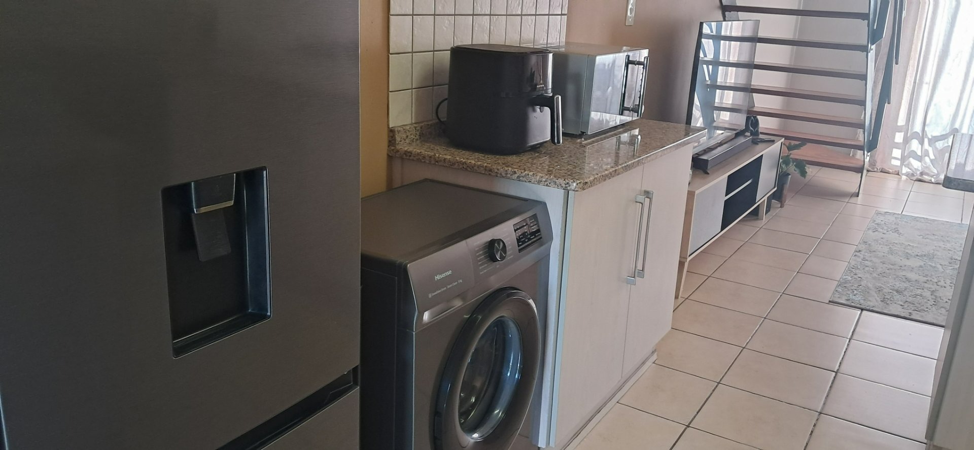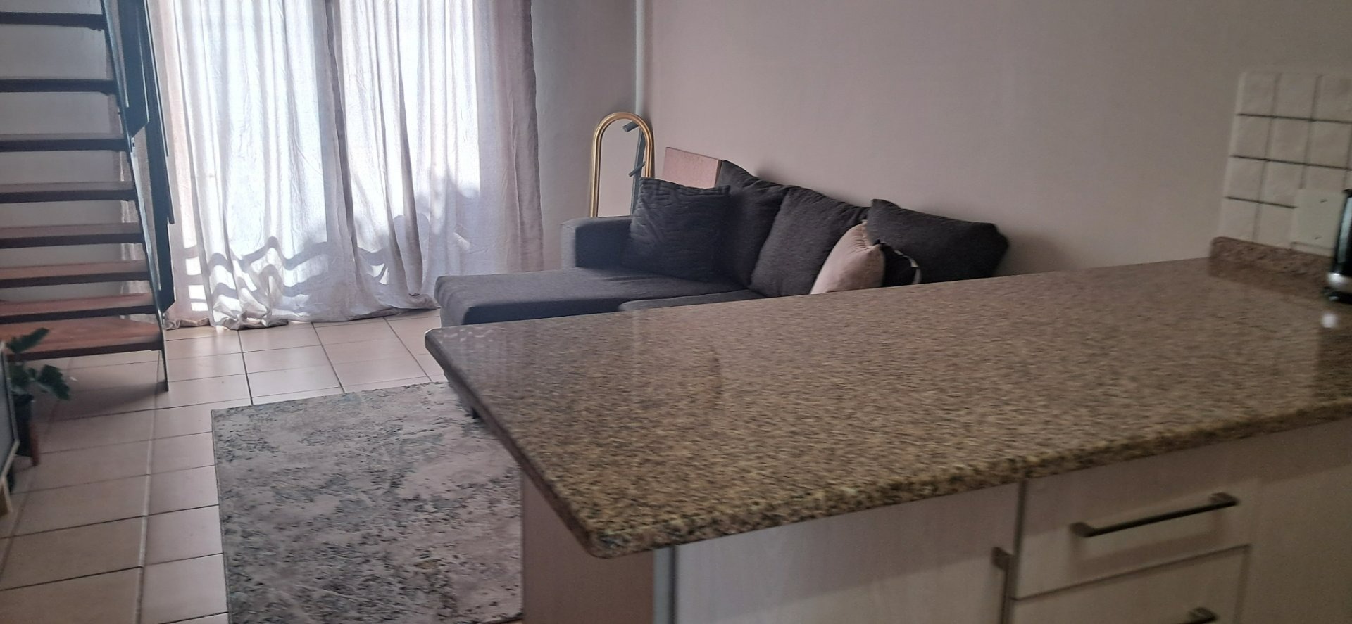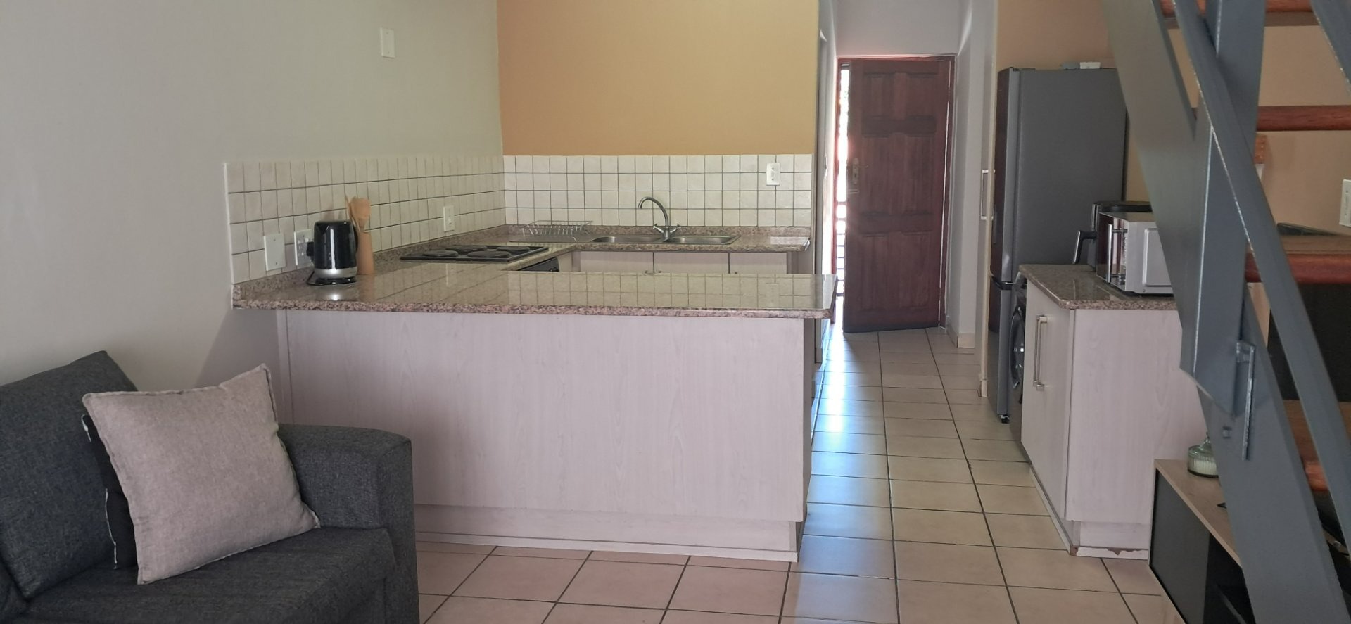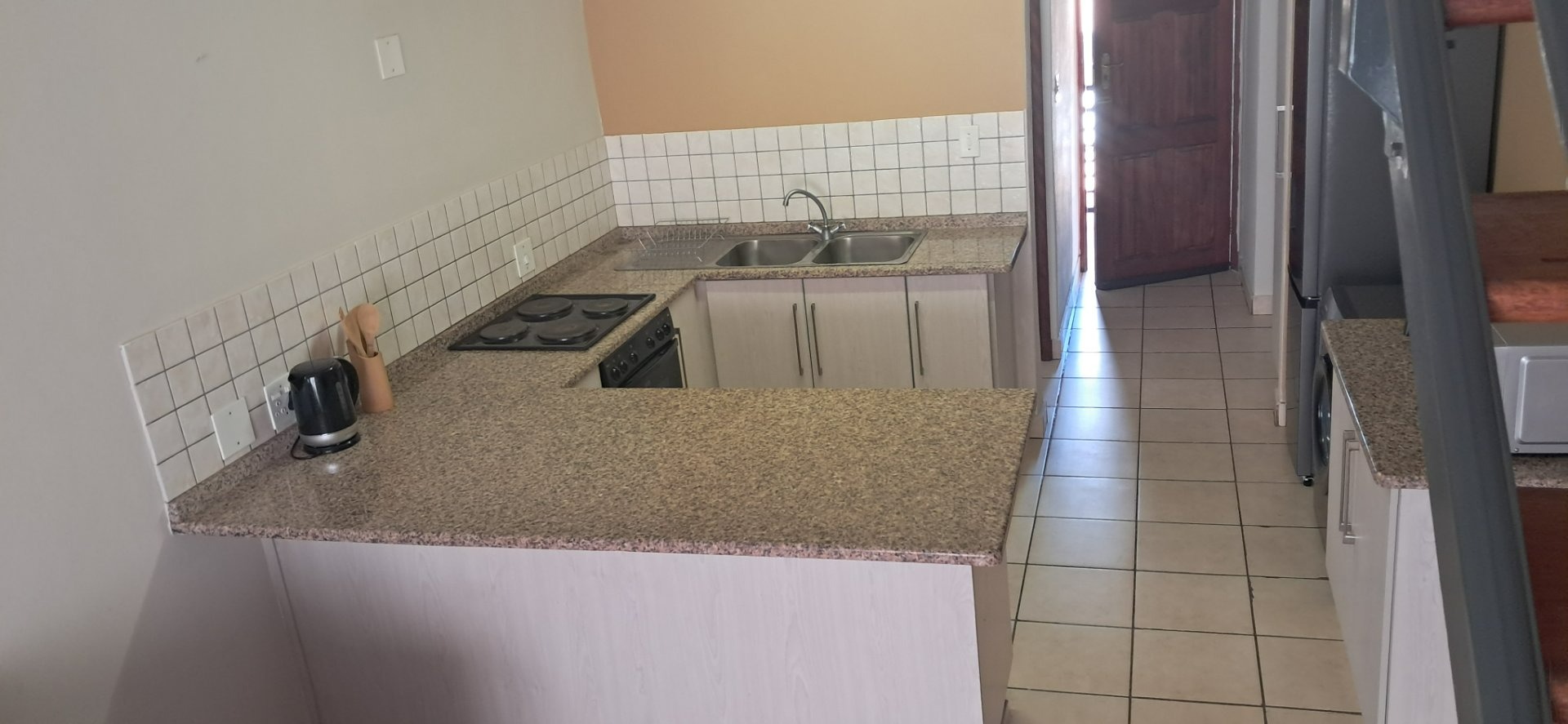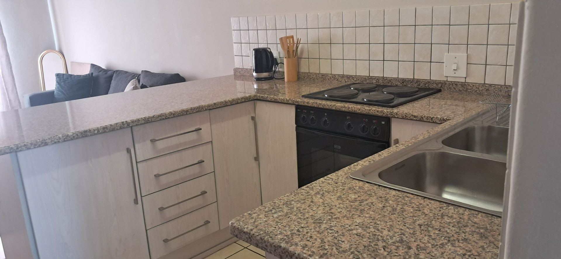 Open plan kitchen with enough built-in cupboards, overlook the living area with sliding doors for the hot summer days.