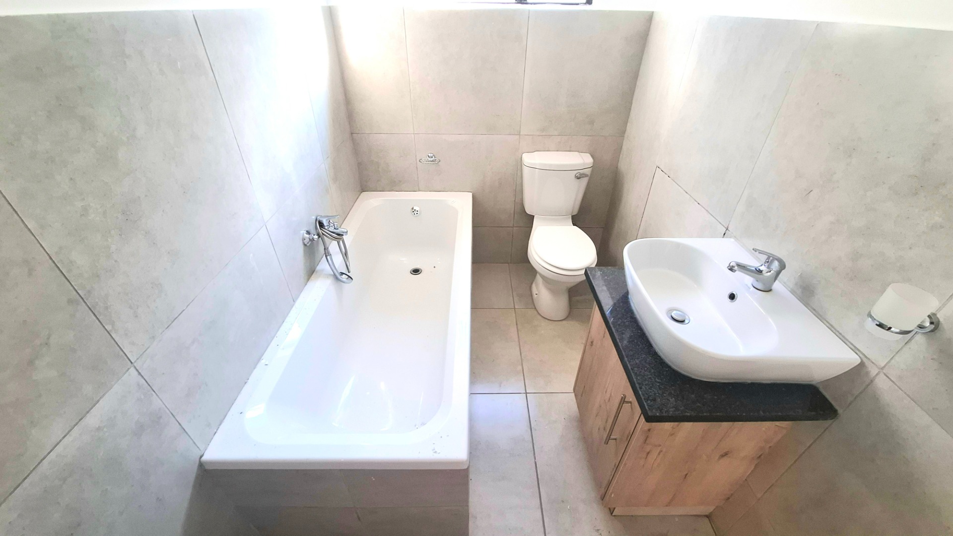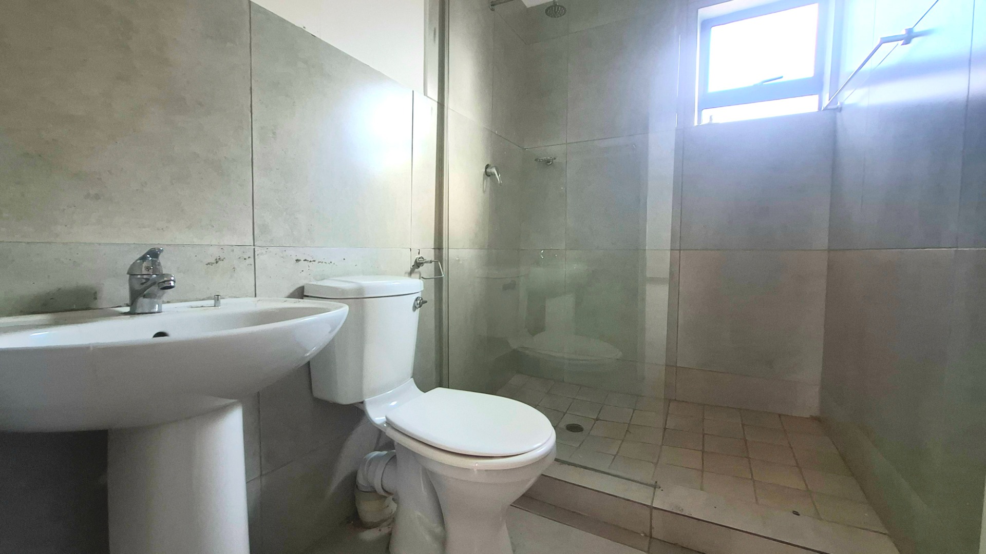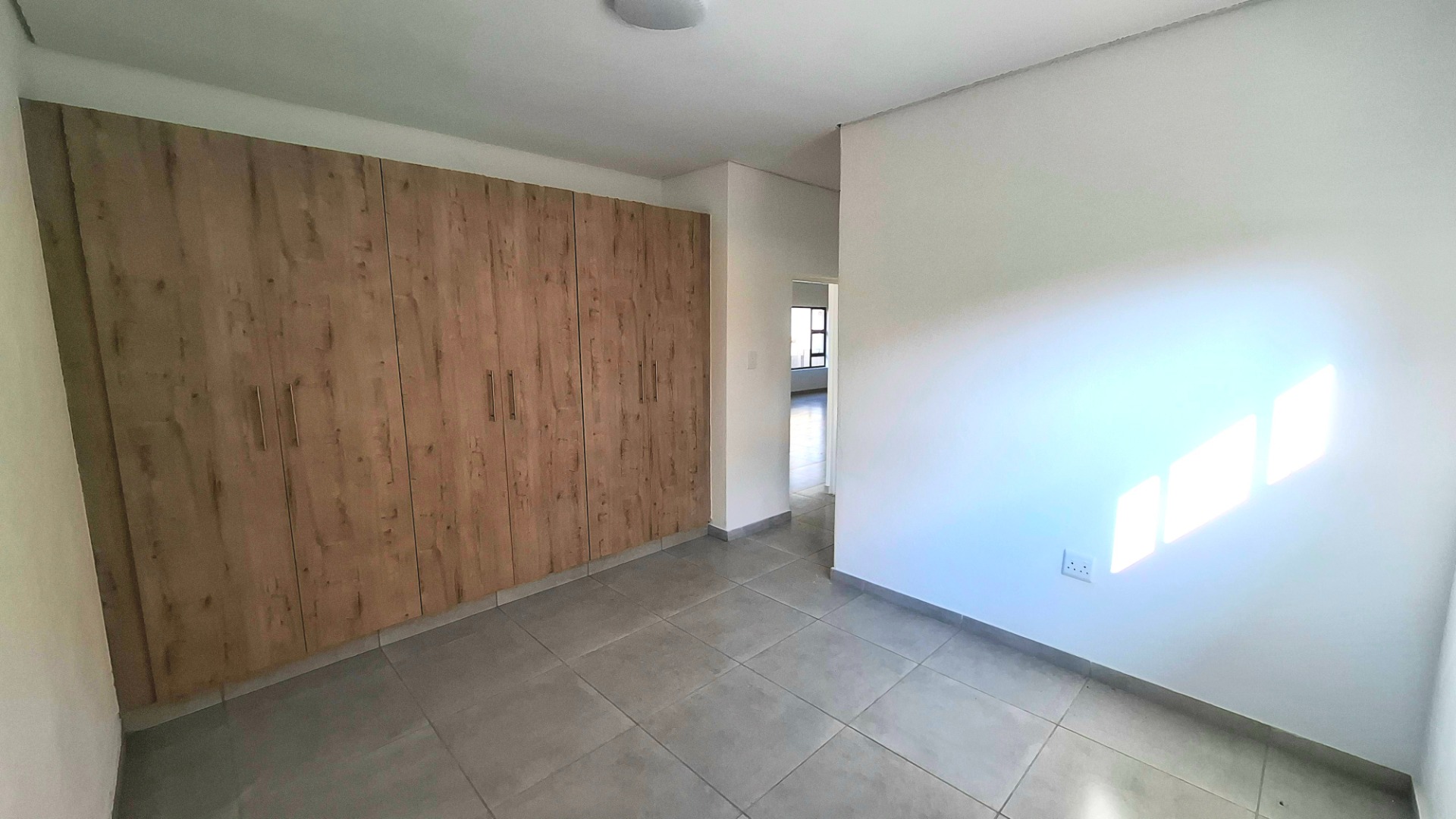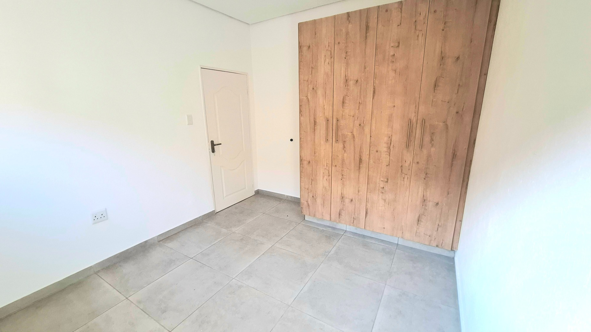 It features three bedrooms and two bathrooms, with the main bedroom boasting an en-suite. The open-plan kitchen and dining area flow into a spacious living room, creating a bright and functional layout. A patio with a built-in braai extends the living space outdoors, perfect for entertaining.