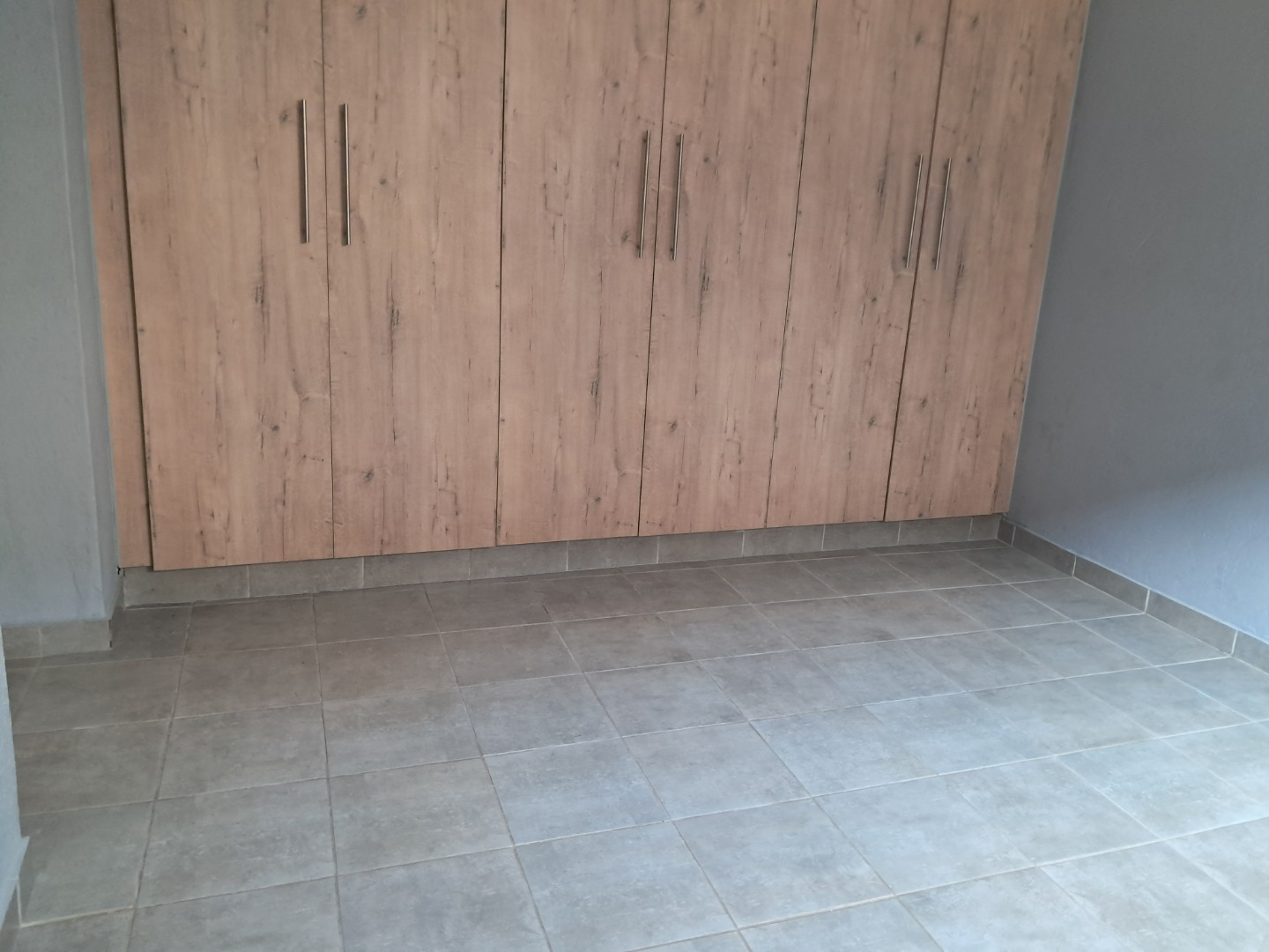 The spacious open-plan lounge and dining area flow seamlessly onto a covered patio with a built-in braai, creating the ideal space for entertaining family and friends. Additional features include 2 secure lock-up garages, tiled flooring throughout the home for easy maintenance, and pre-paid electricity to give you full control over your usage.