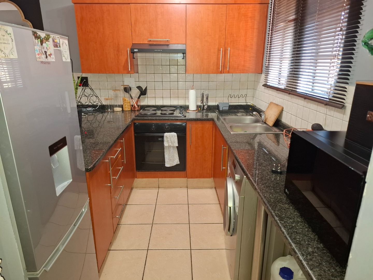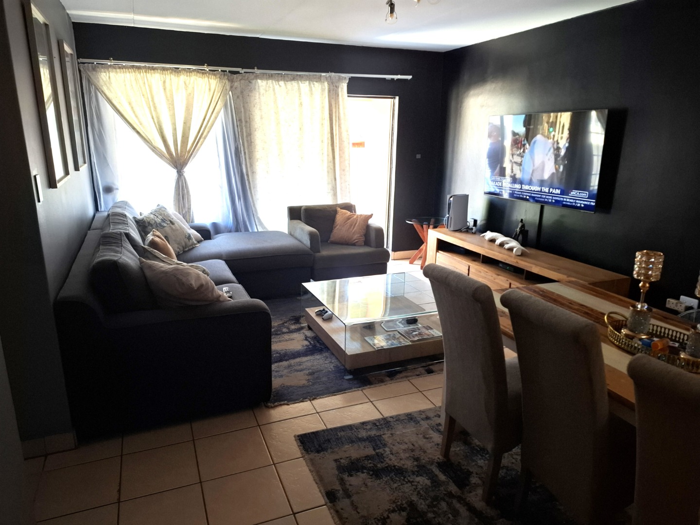 The home features three bedrooms with two full bathrooms, ideal for families or professionals looking for extra space and security. The open-plan kitchen and lounge create a welcoming living area that is perfect for everyday living and entertaining.