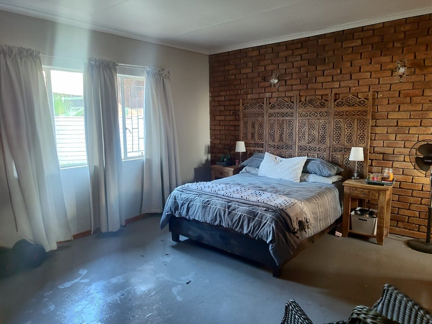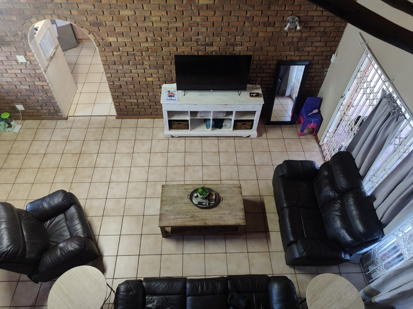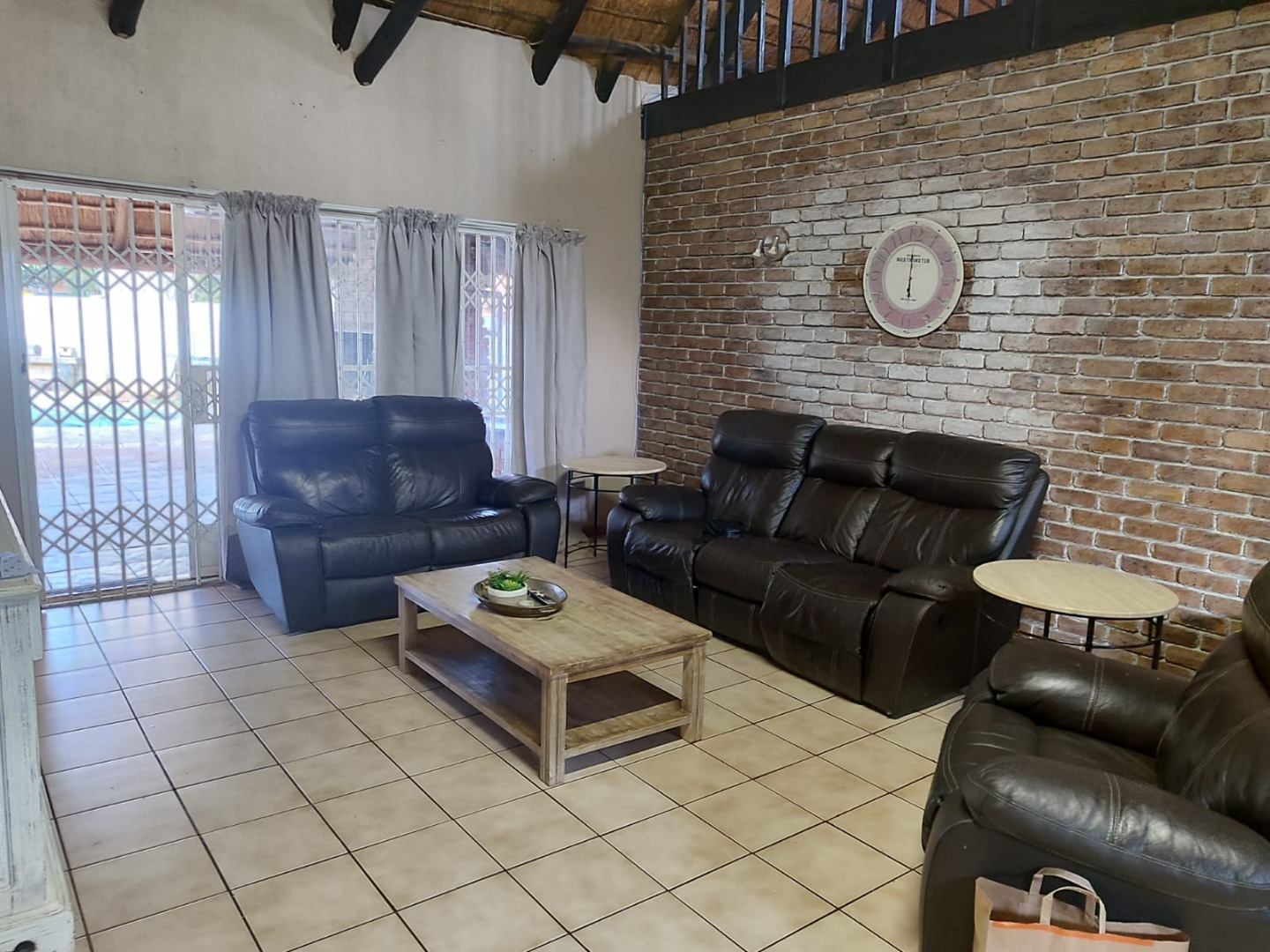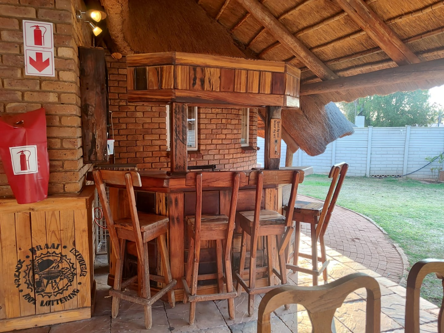 Lounge opens onto a covered patio with bar and built-in braai. Splash pool to cool down on a hot day.