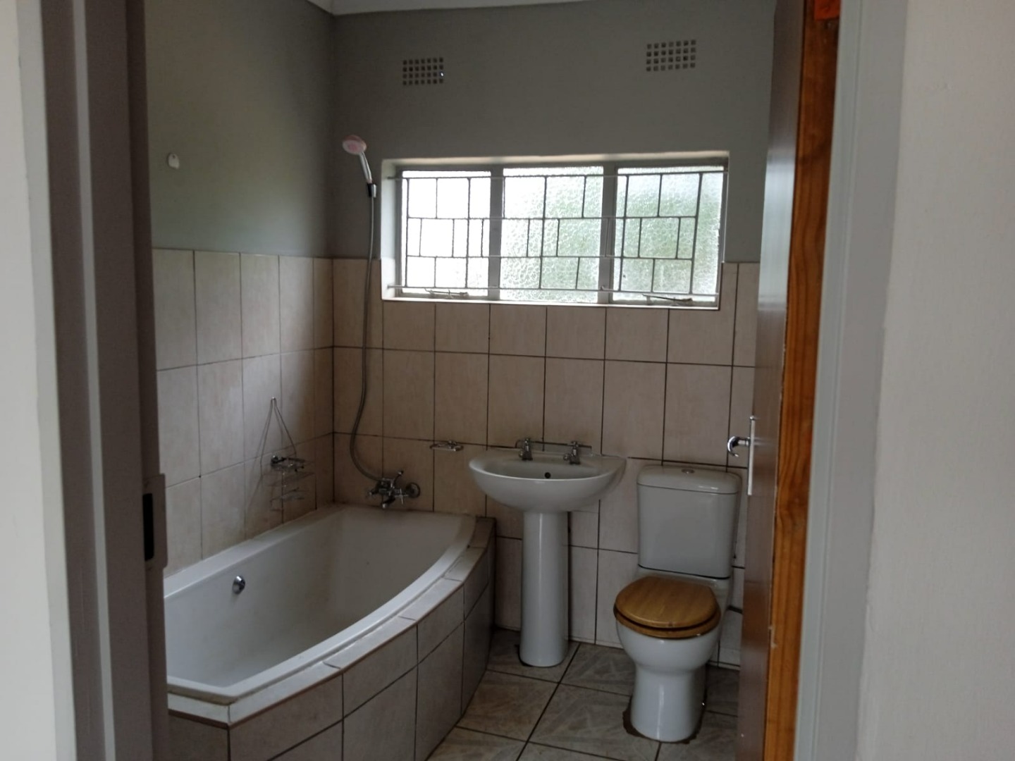 Accommodation includes three well-proportioned bedrooms, all featuring built-in cupboards. The main bedroom is notably generous in size and boasts its own en-suite bathroom, offering privacy and comfort. A second bathroom conveniently serves the remaining two bedrooms, making this an ideal layout for families.