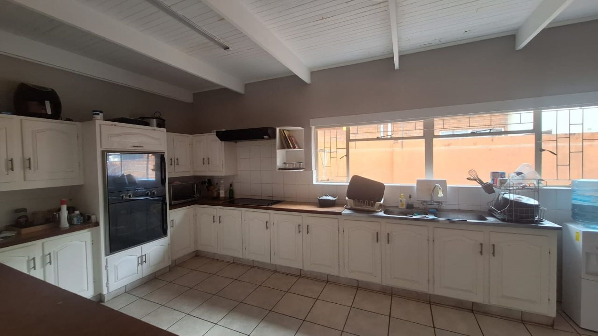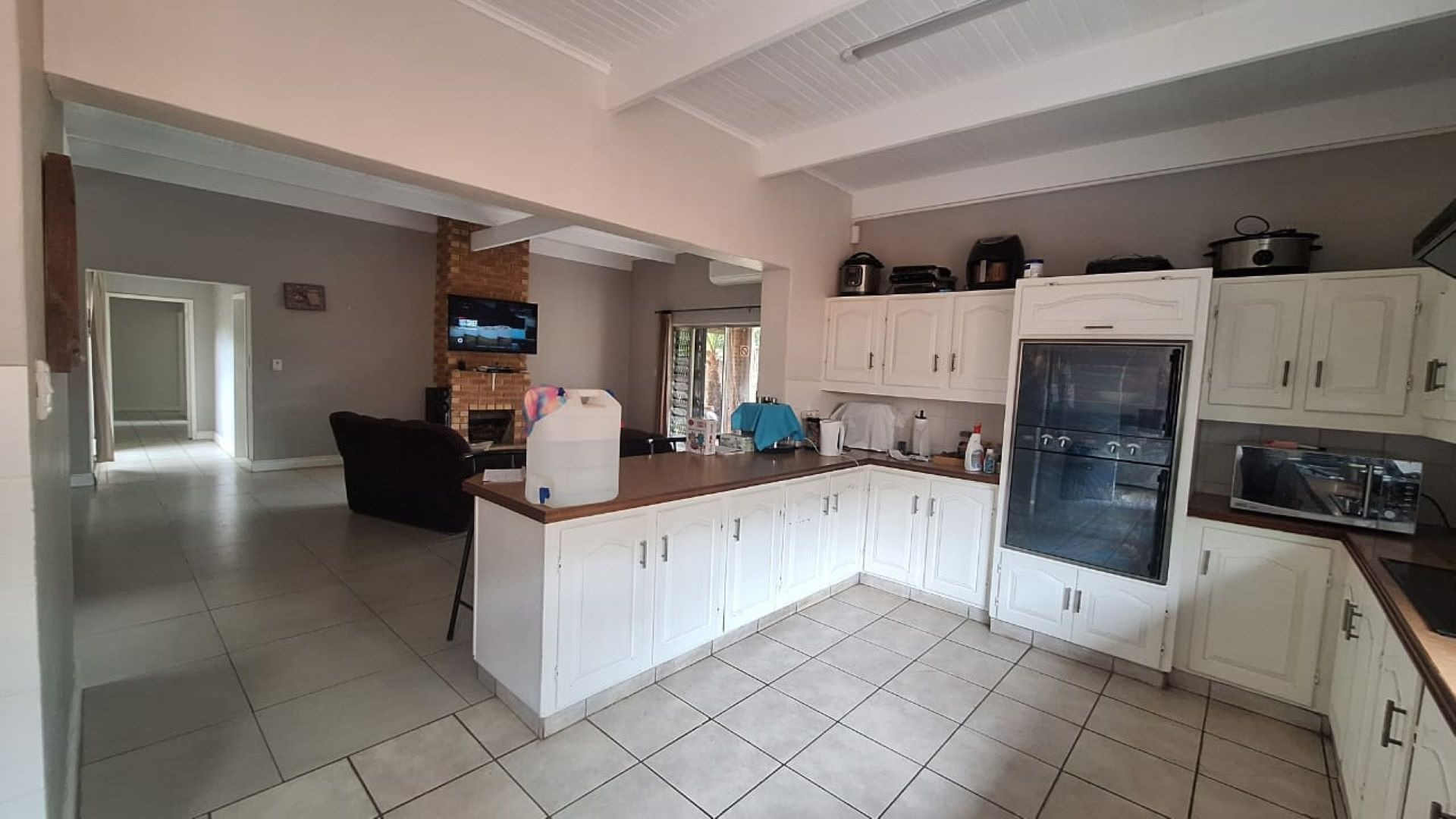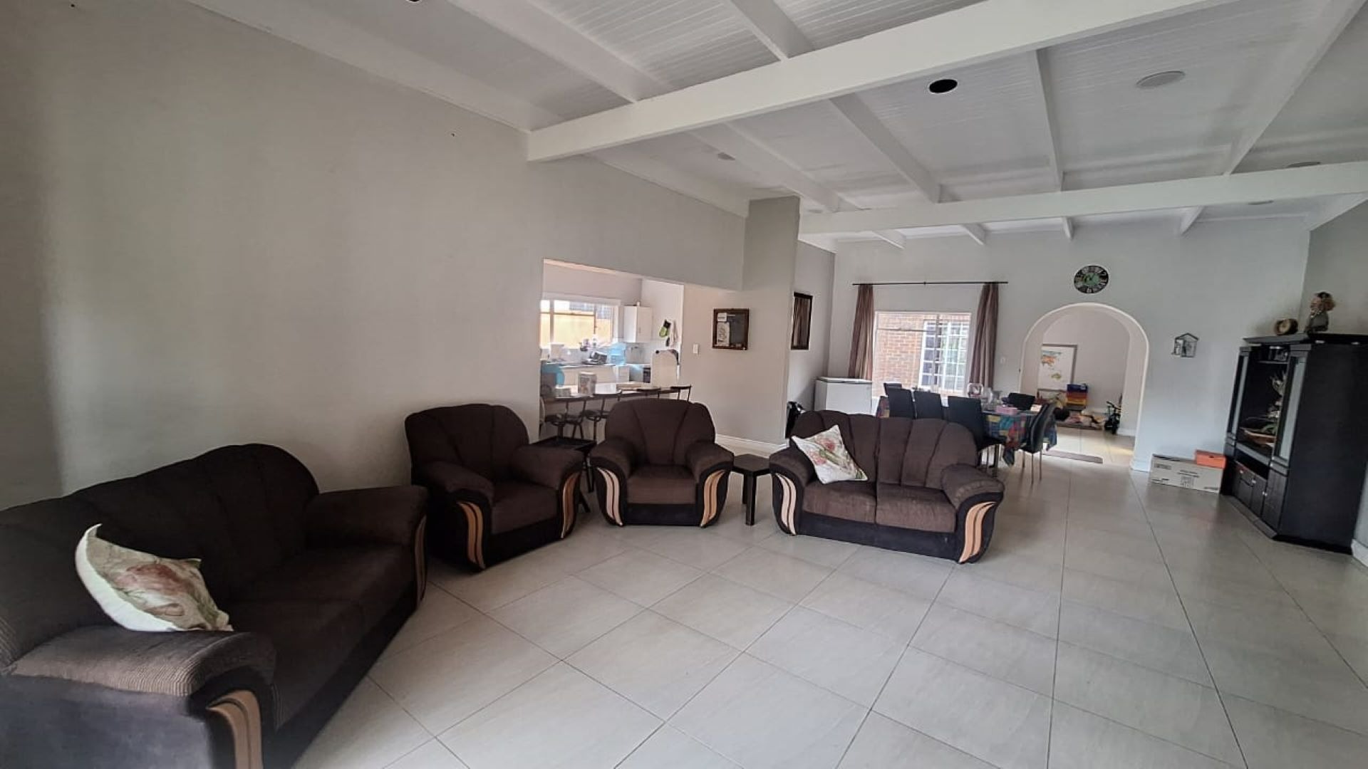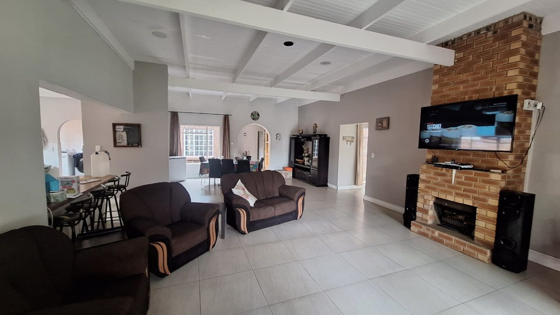 This well-kept 5-bedroom, 2-bathroom tiled and laminated home offers comfortable family living with an open-plan TV and dining area flowing into the kitchen with pantry, scullery, and laundry.