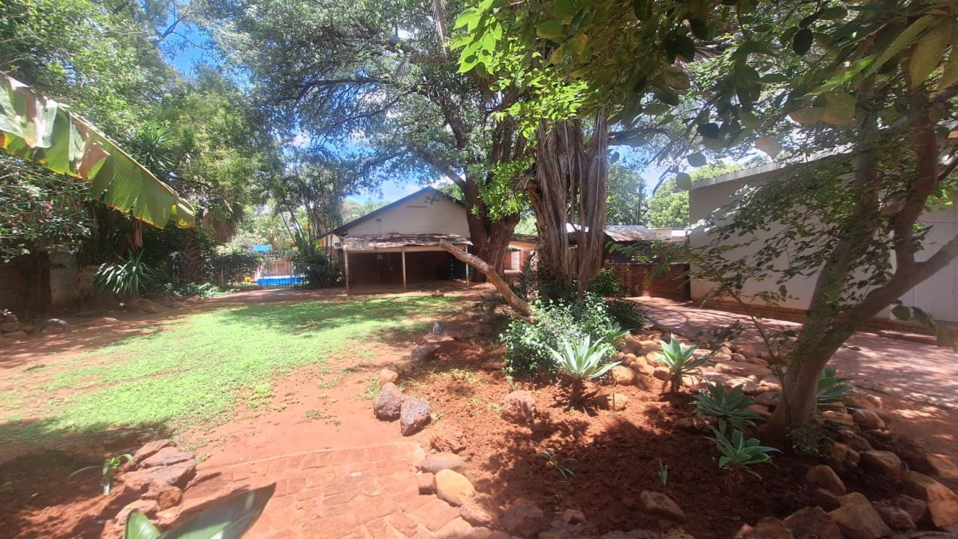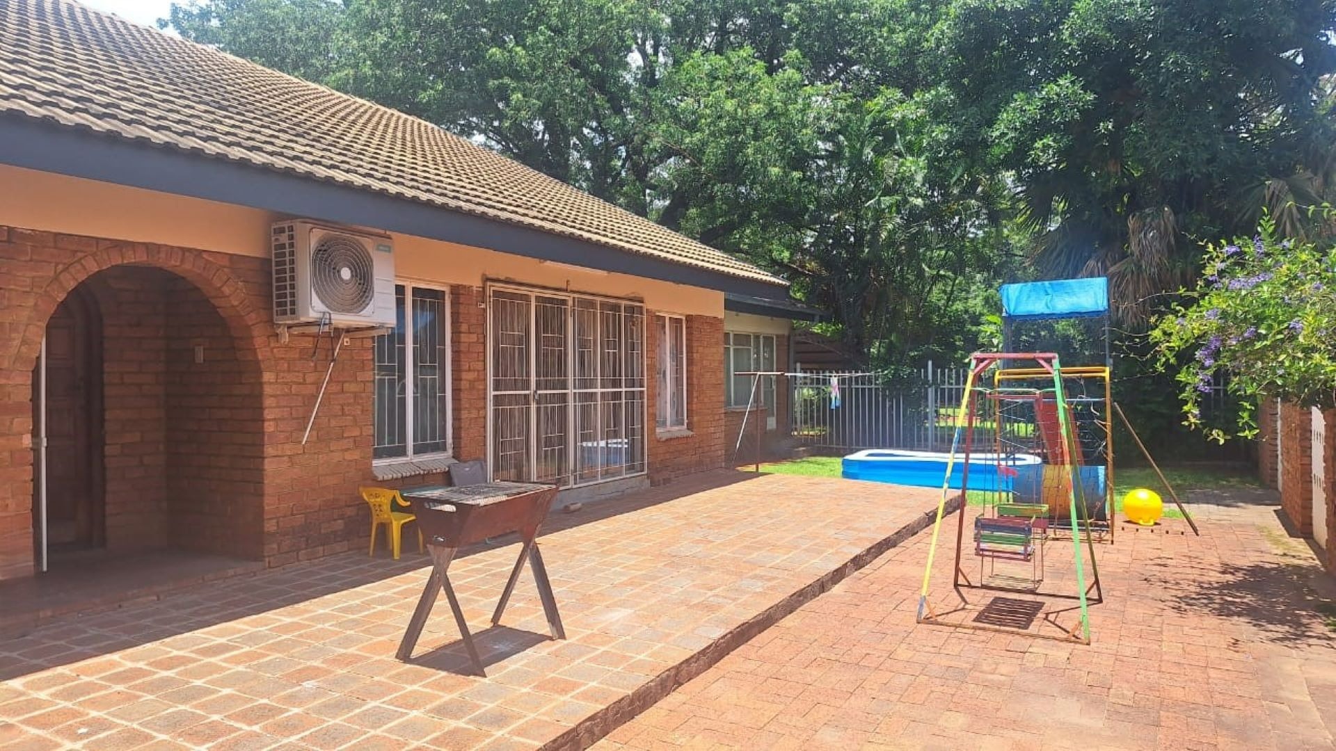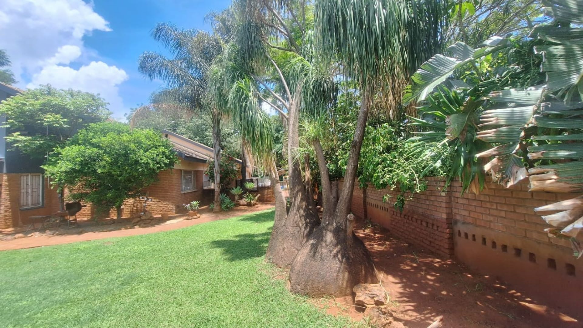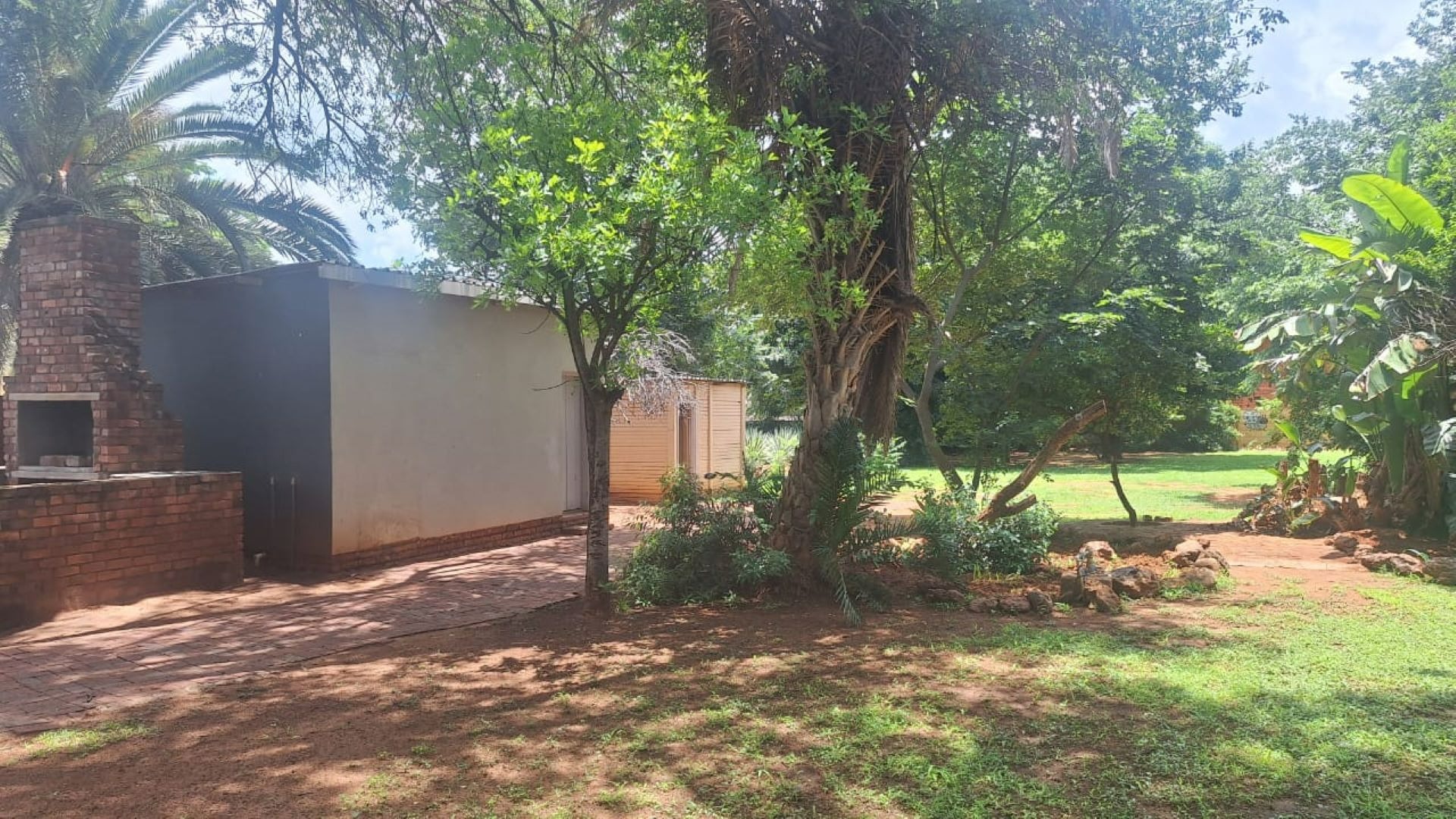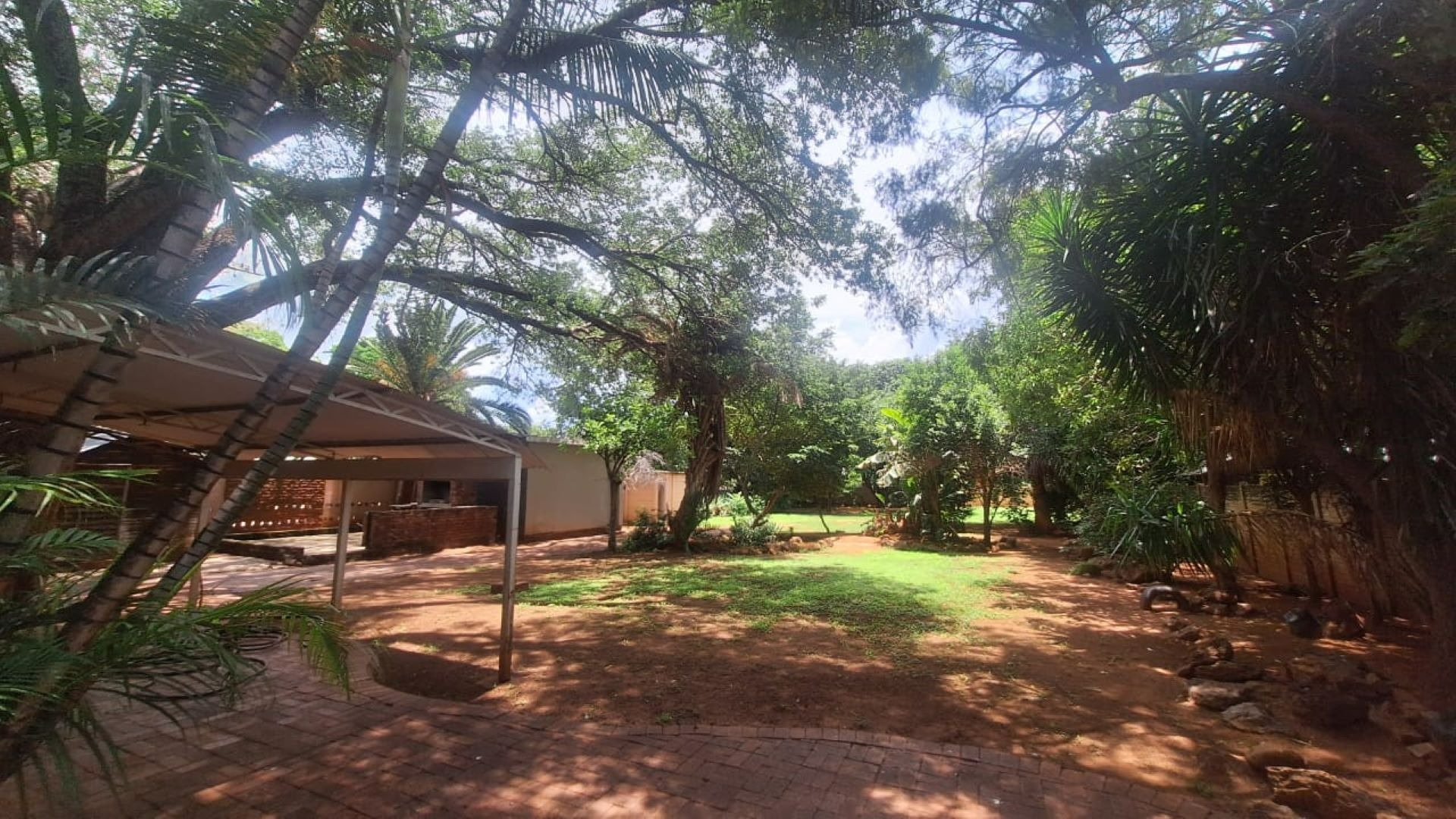 The outdoor braai area overlooks a huge garden, creating an inviting space for relaxation and entertainment. Additional features include carports, an electric gate, inverter, Jojo tank, borehole, and two storerooms—making this a complete, well-equipped property.