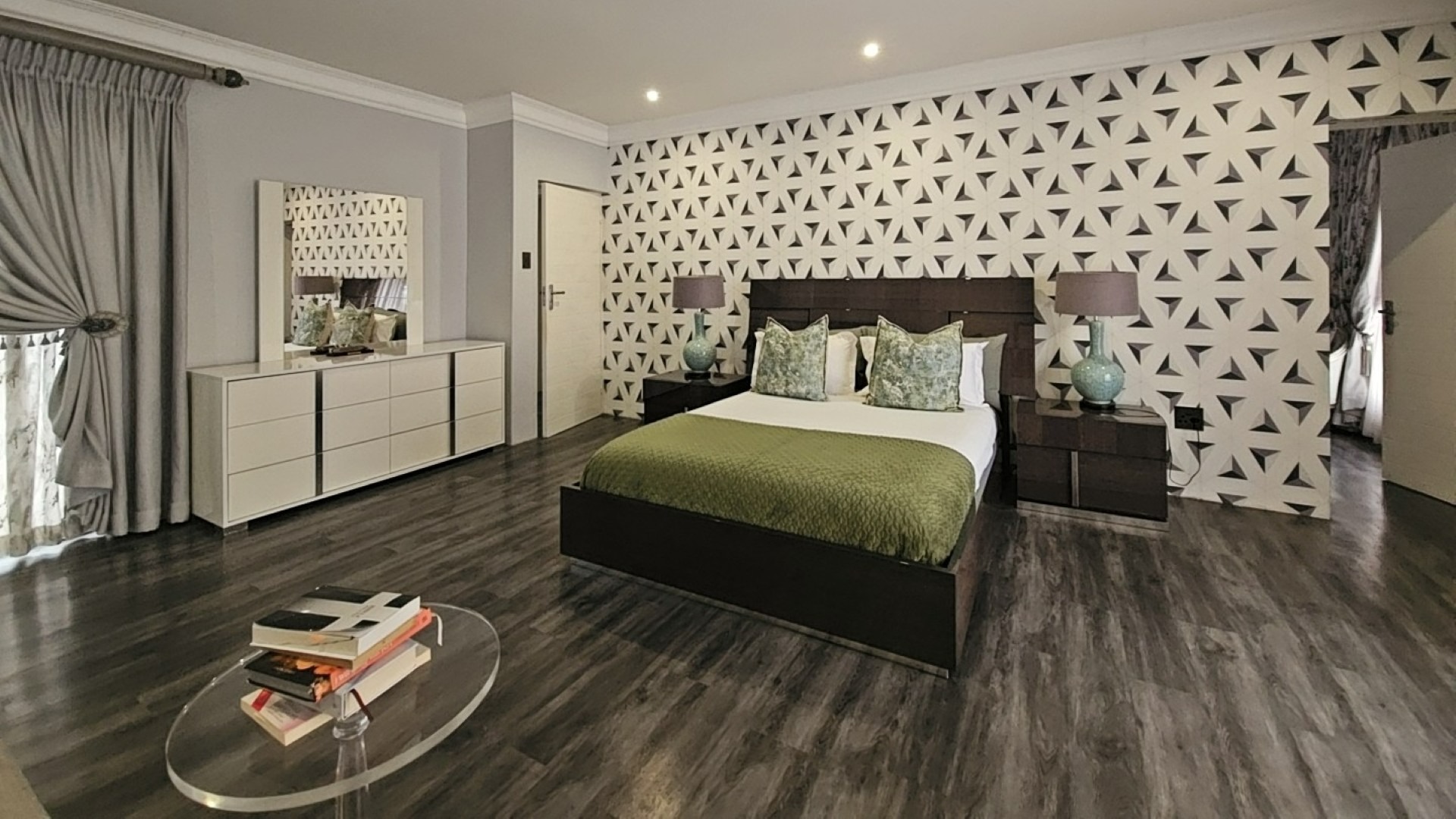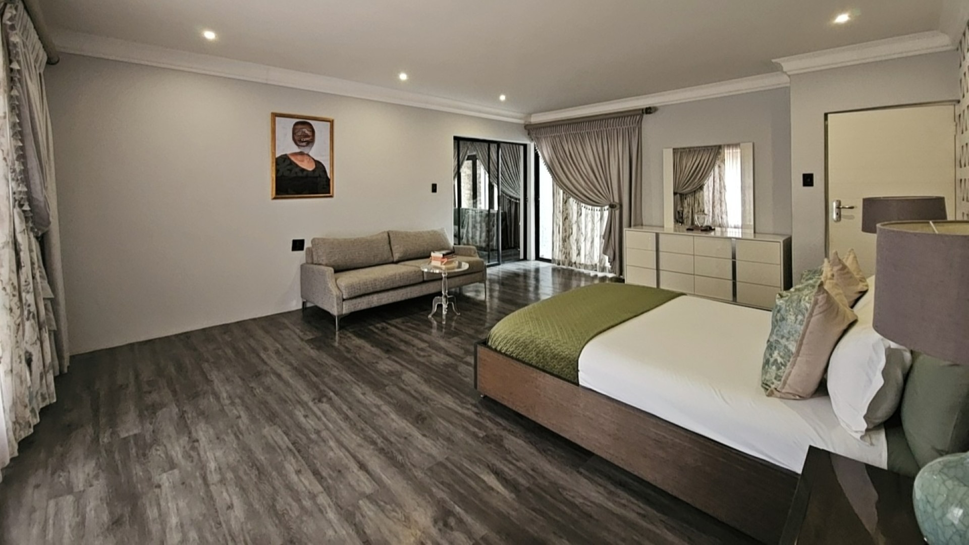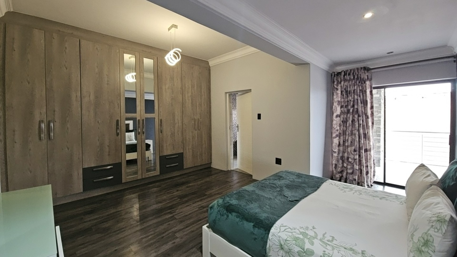 Bedroom 5 Laminated Floors, Built-in Cupboards, King bed, En-suite, Balcony