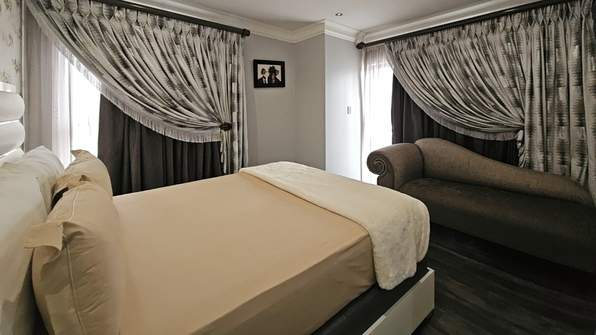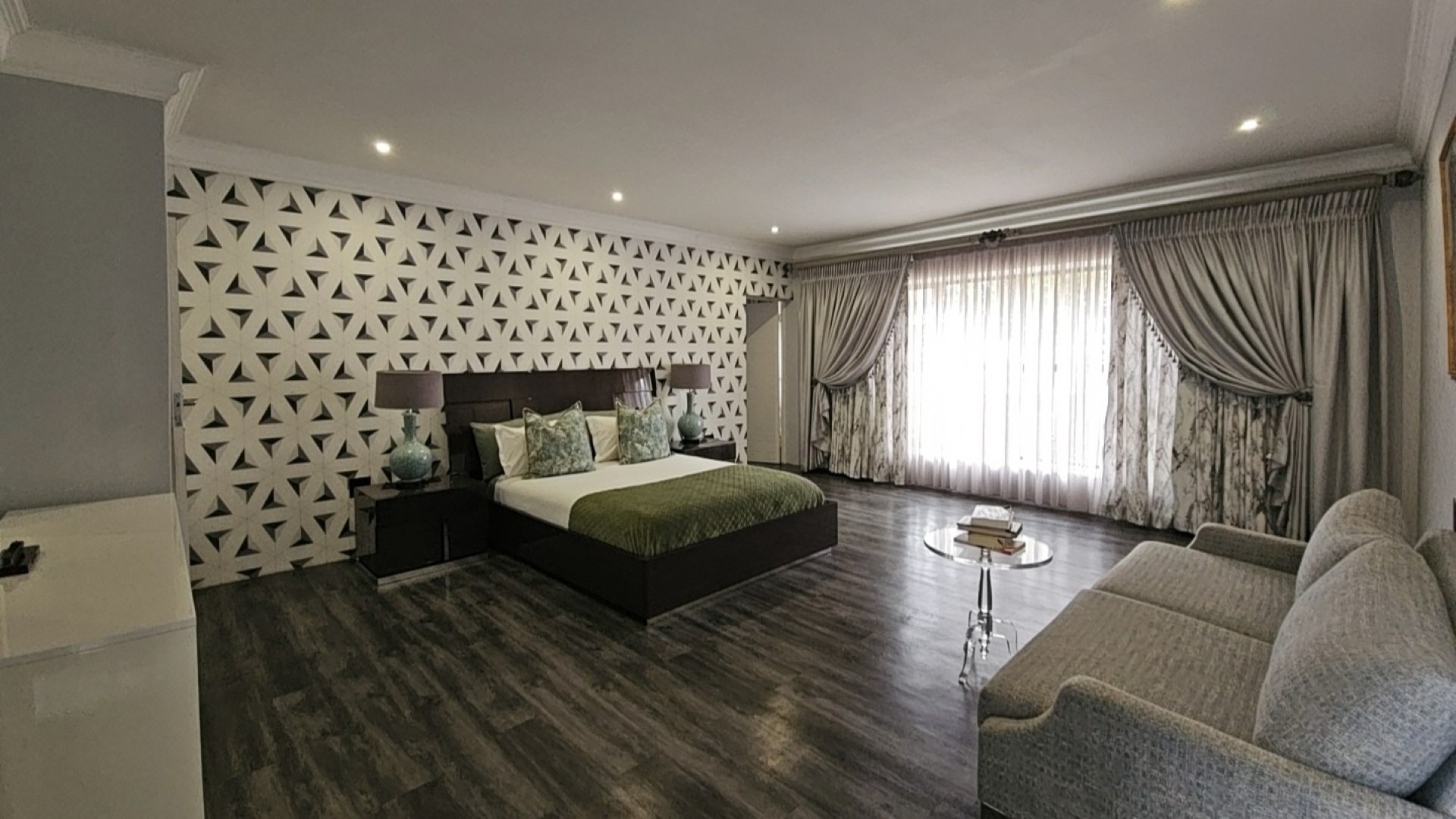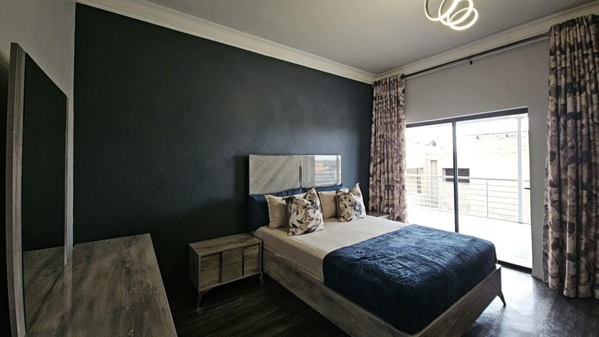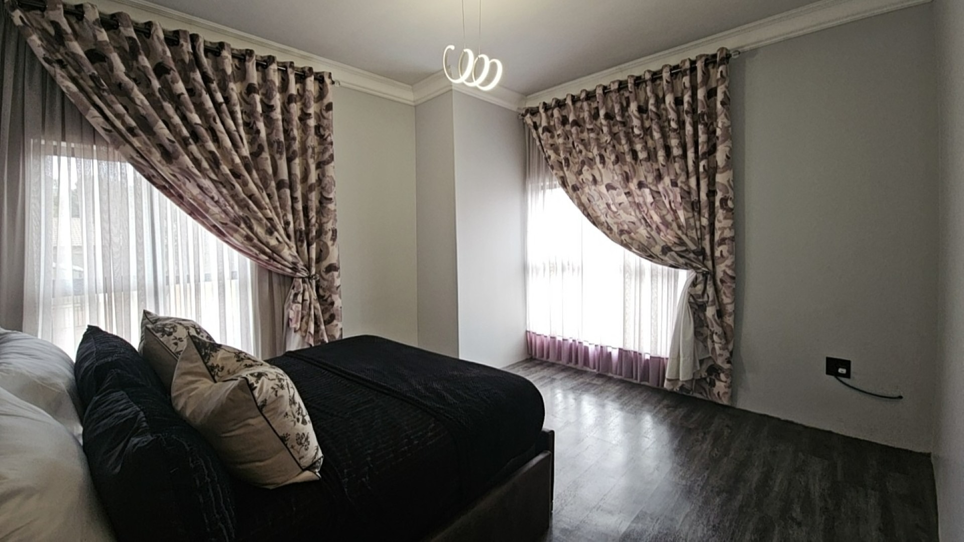 Bedroom 5 Laminated Floors, Built-in Cupboards, King bed, En-suite, Balcony