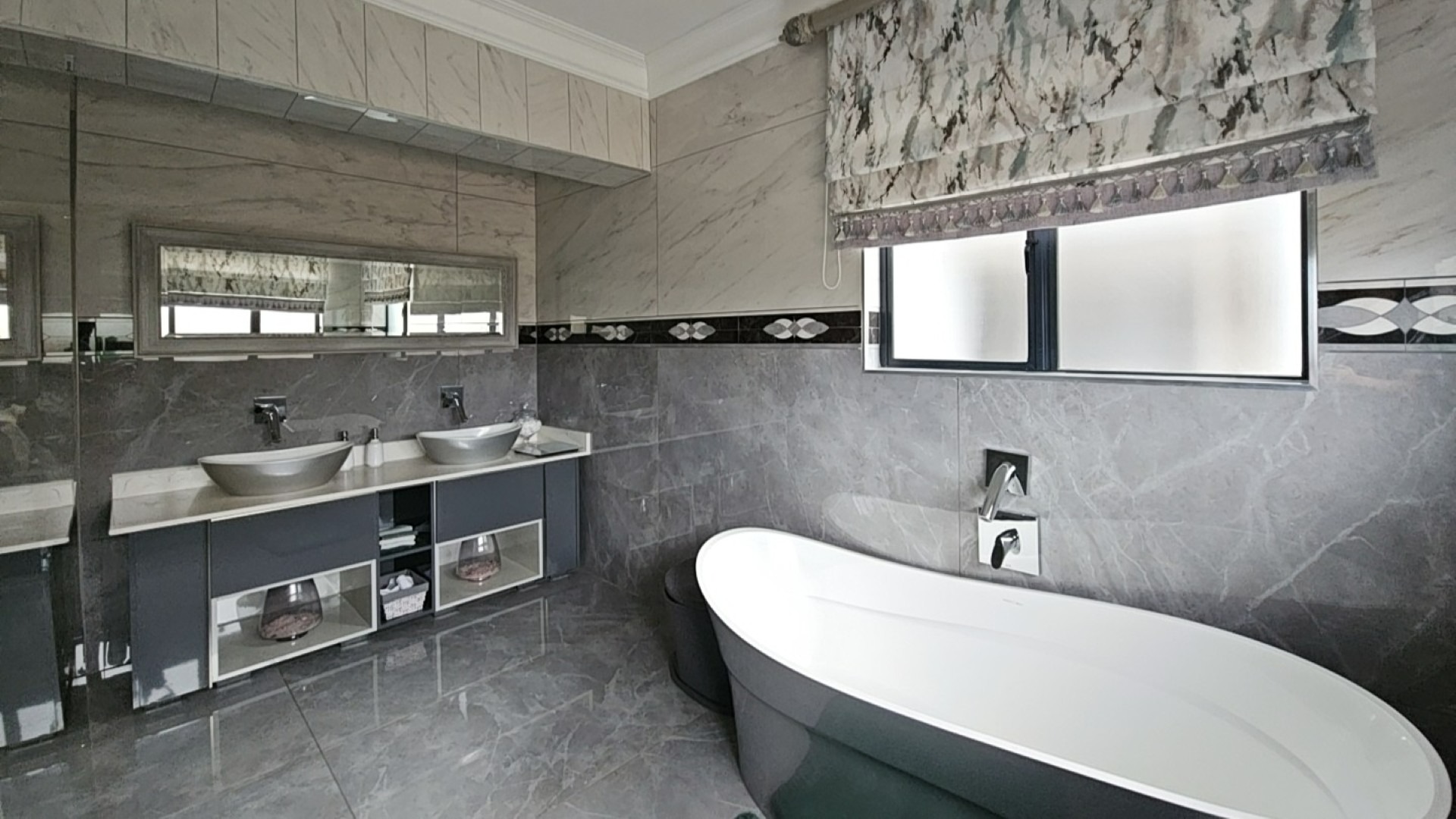 Bathroom 1 Tiled Floors, Bath, Toilet, Double Basin and Shower