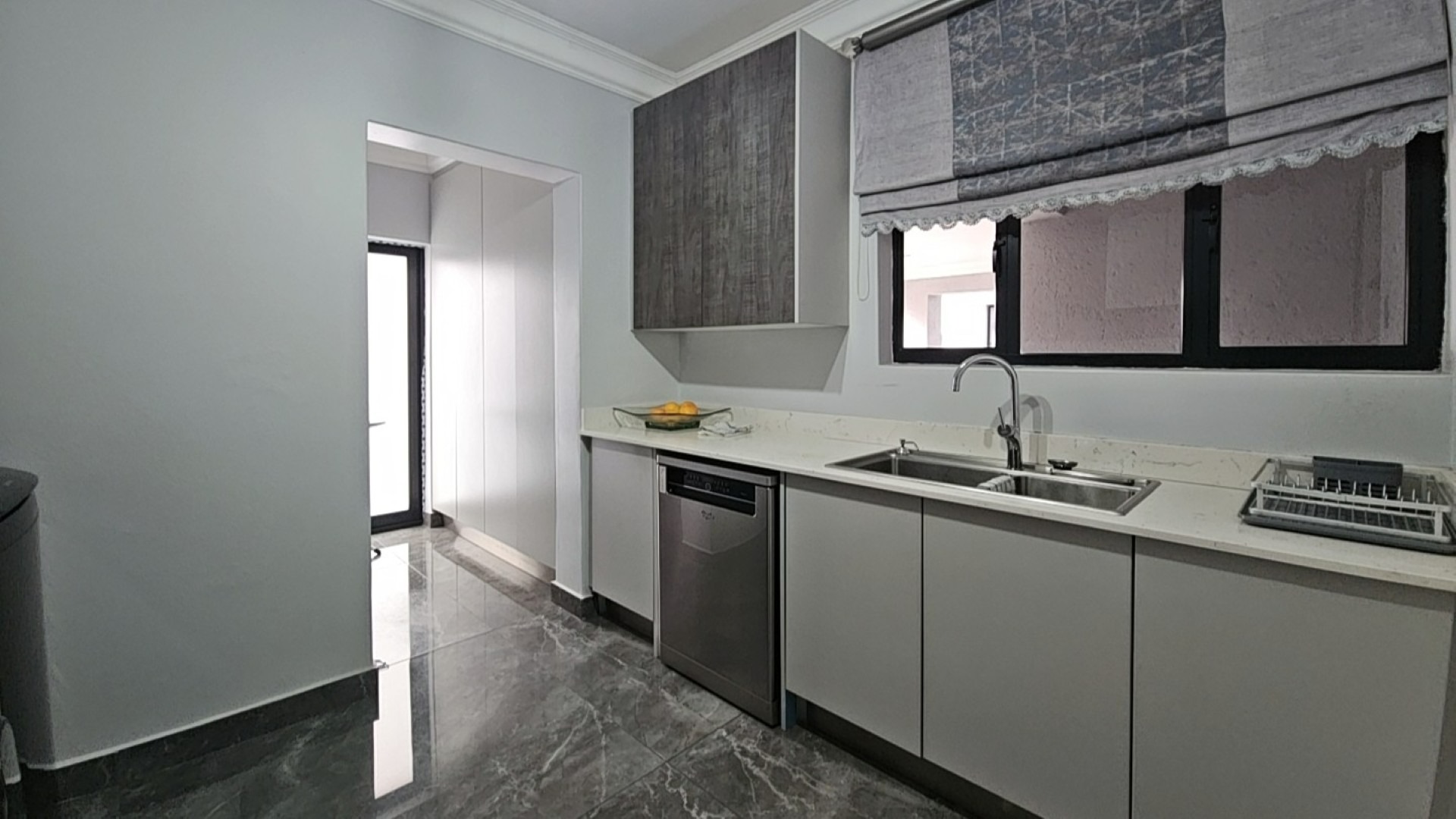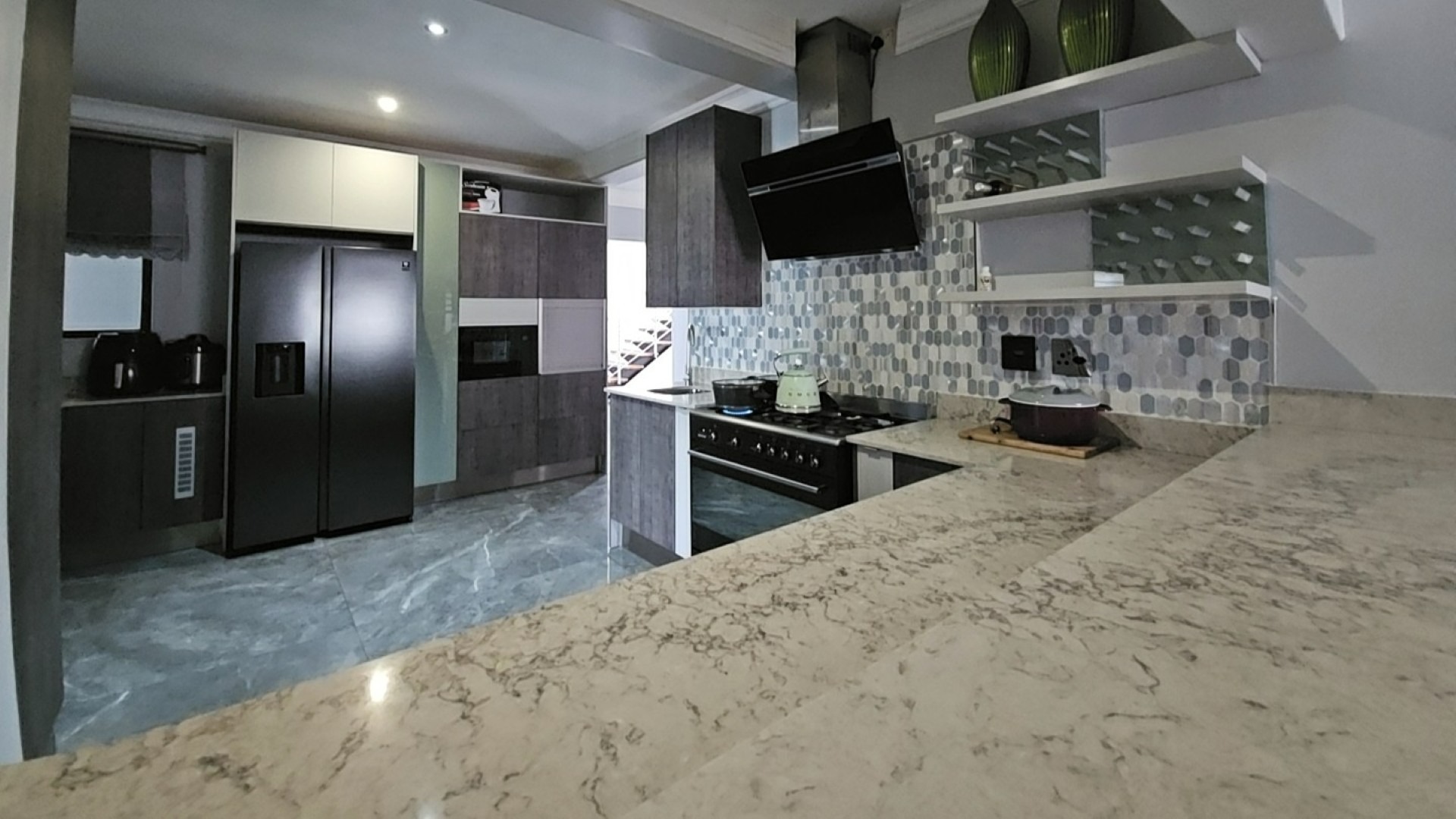 Kitchen Tiled Floors, Built-in Cupboards, Gas stove, Gas Oven, Open Plan,