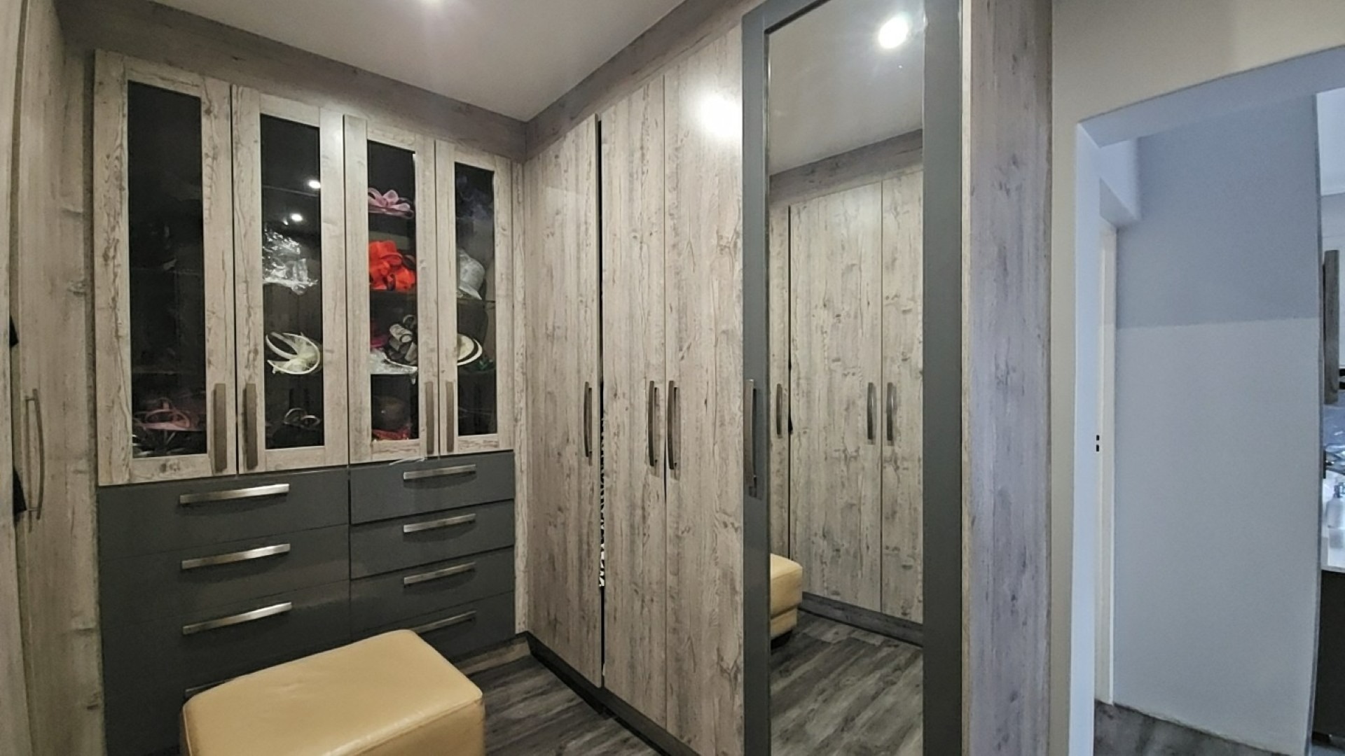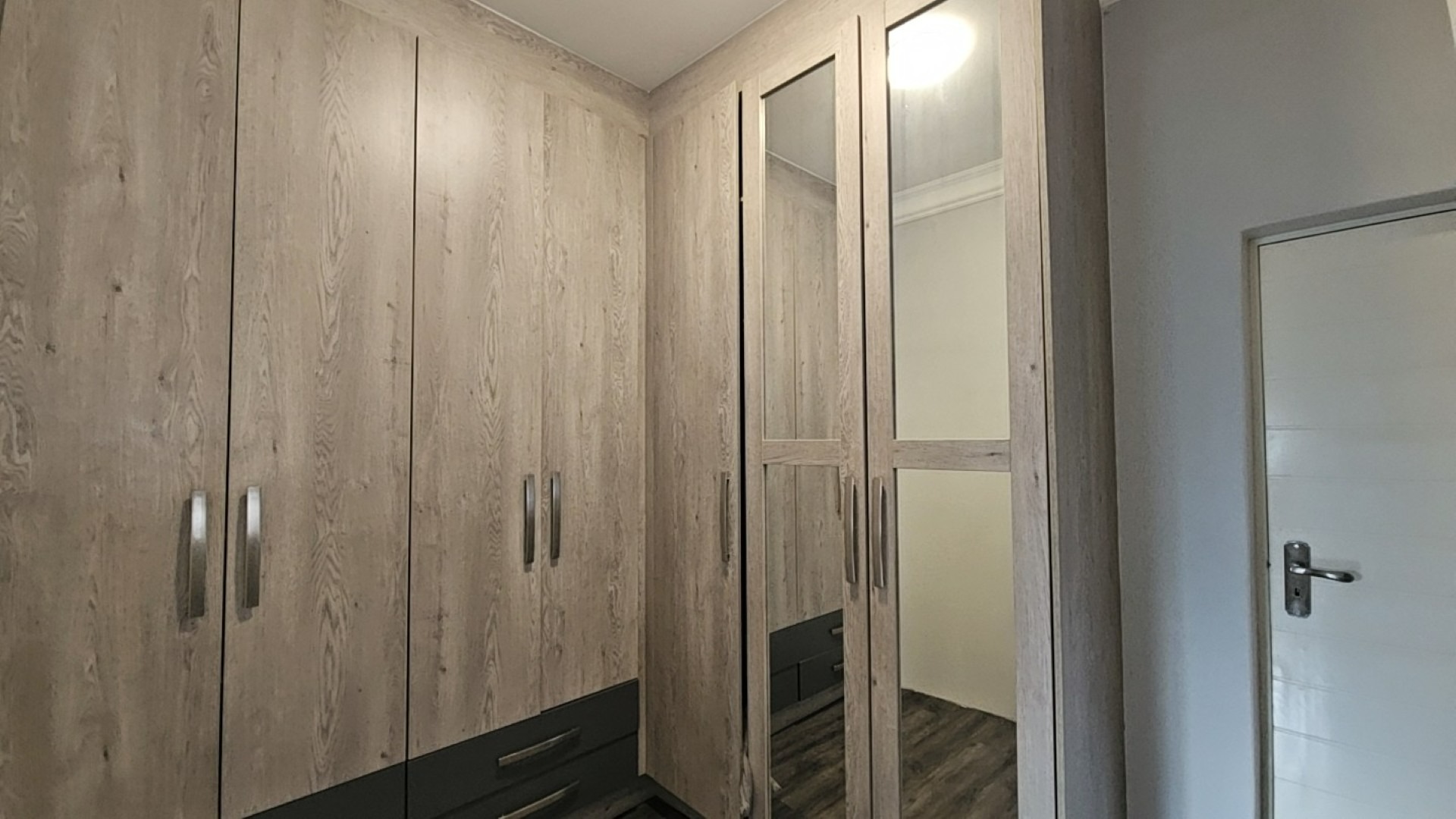 Bedroom 4 Laminated Floors, Built-in Cupboards, King bed, En-suite, Balcony