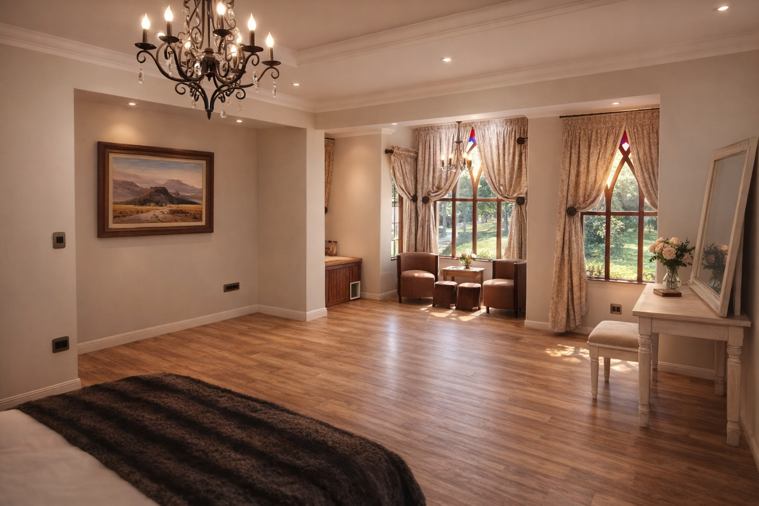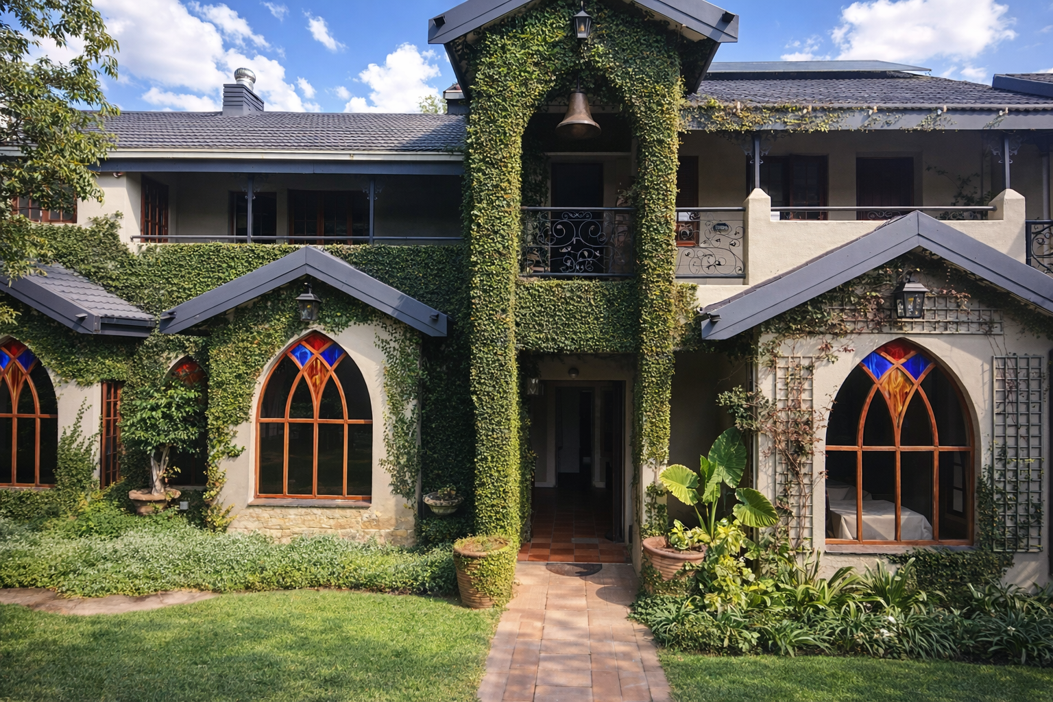 A distinguished guest house offering 6 beautifully curated bedrooms and 5 and a half bathrooms, thoughtfully designed to provide comfort and privacy. Set within a lush, landscaped garden, the property invites guests to unwind in tranquil outdoor spaces. With refined overnight accommodation, each room offers homely warmth, creating an inviting retreat for families, friends, and special occasion stays.
