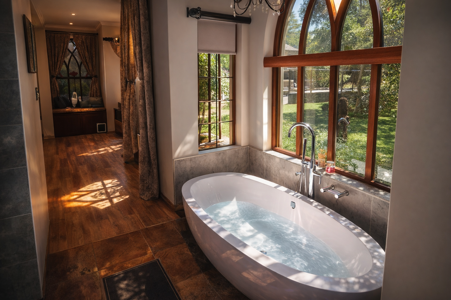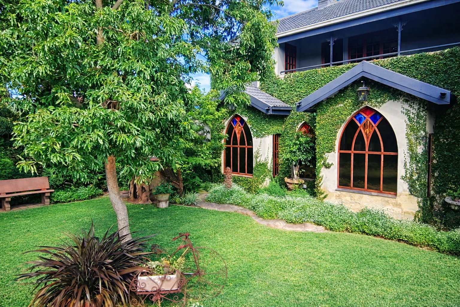 A distinguished guest house offering 6 beautifully curated bedrooms and 5 and a half bathrooms, thoughtfully designed to provide comfort and privacy. Set within a lush, landscaped garden, the property invites guests to unwind in tranquil outdoor spaces. With refined overnight accommodation, each room offers homely warmth, creating an inviting retreat for families, friends, and special occasion stays.