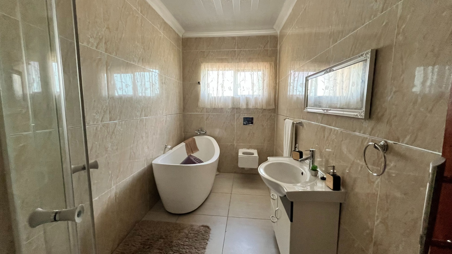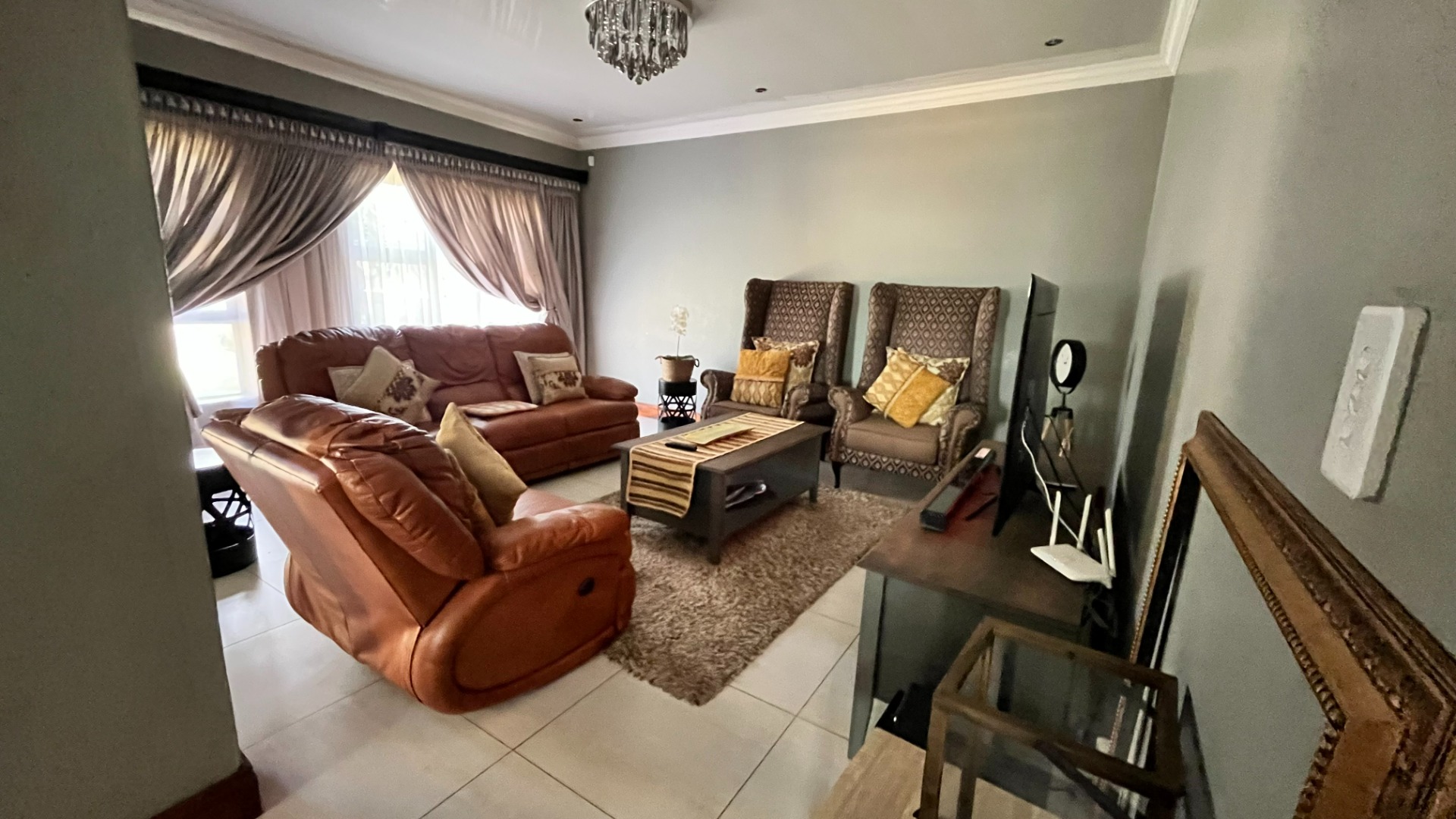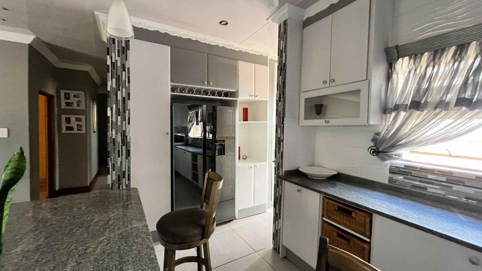 The home features a spacious open-plan layout, seamlessly connecting the kitchen, lounge, and dining area to create a warm and inviting atmosphere. The kitchen is both stylish and functional, complemented by a separate scullery that adds convenience and keeps the living space clutter-free.