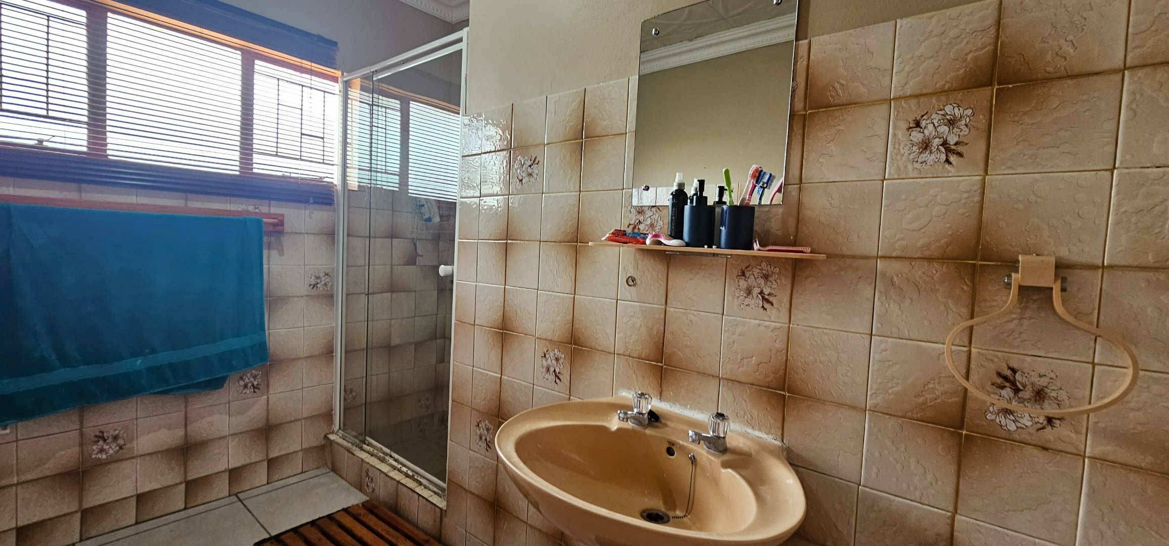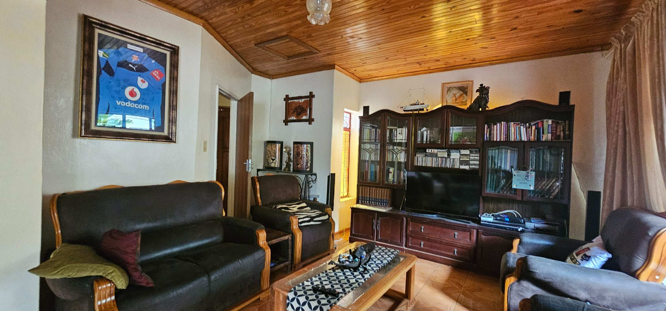 At the back of the property, there’s a dedicated entertainment area, a storeroom, and a sparkling pool — perfect for hosting family and friends. Additional features include a borehole, double garage, and shaded parking.