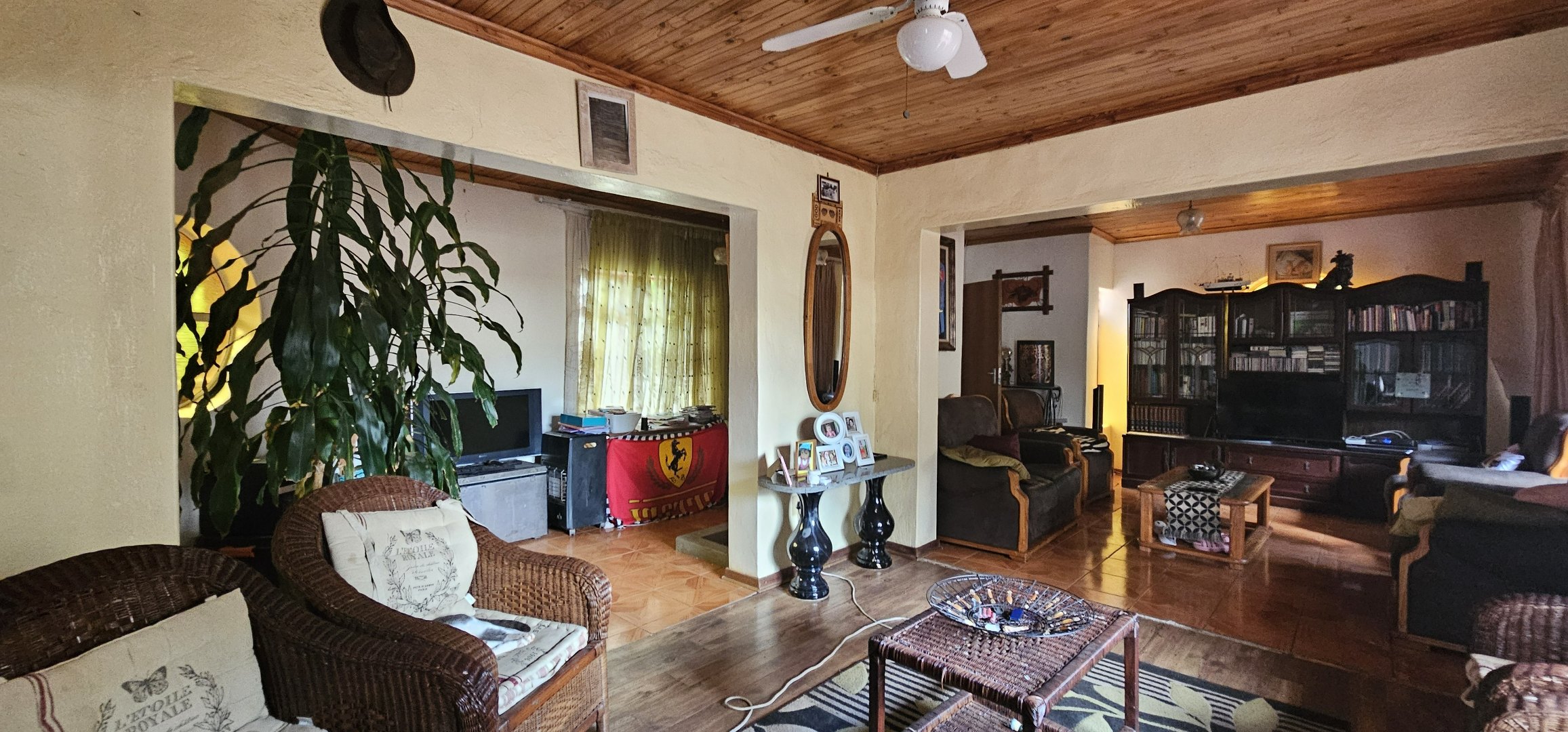 To the right of the dining area, a hallway leads to three bedrooms and two bathrooms. The main bedroom is en-suite, while the remaining two bedrooms share a second bathroom. On the left side of the hallway, you’ll find a spacious kitchen with a separate scullery, offering convenience and functionality.
