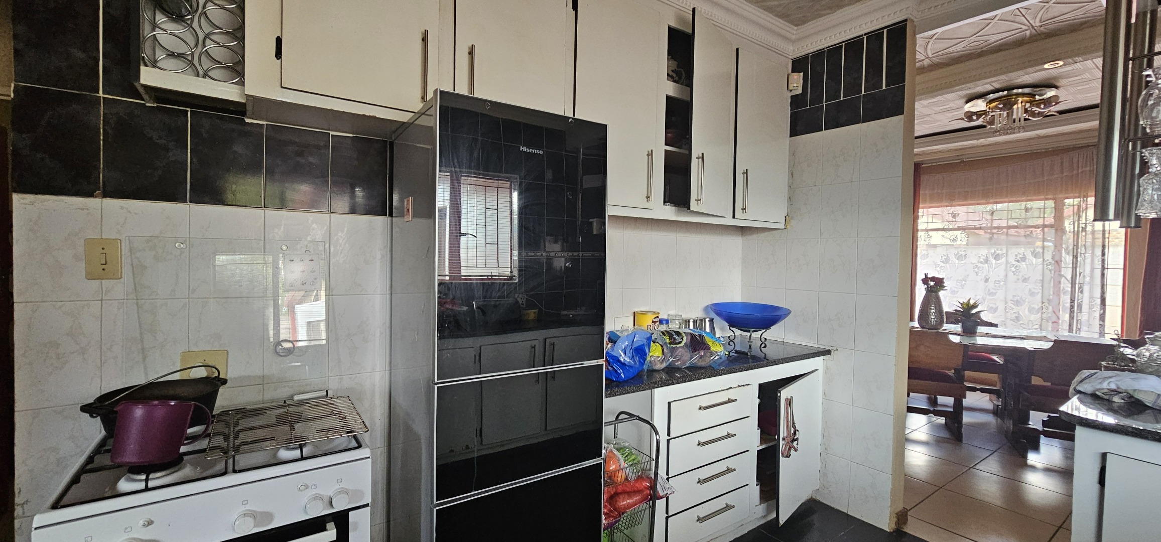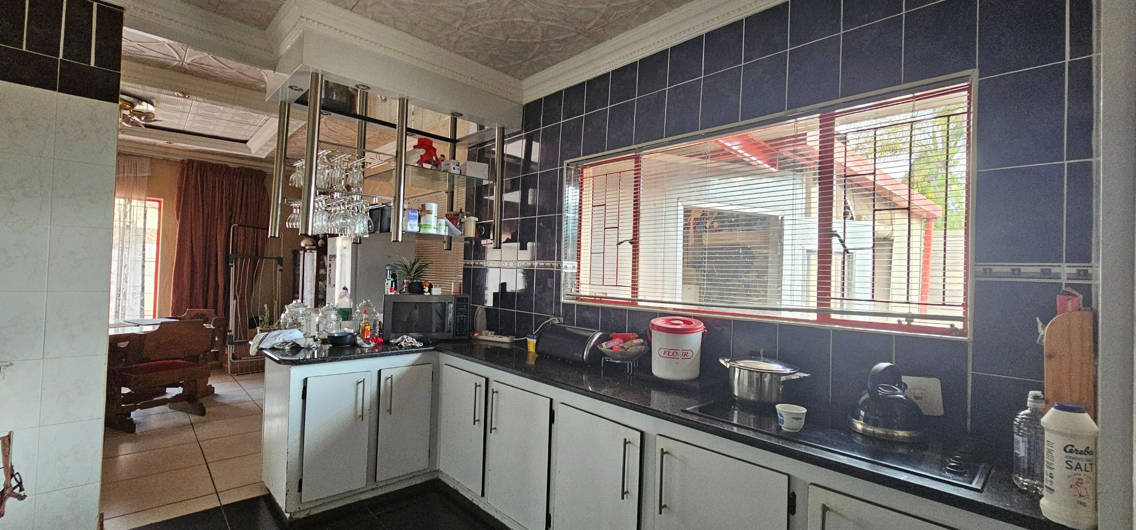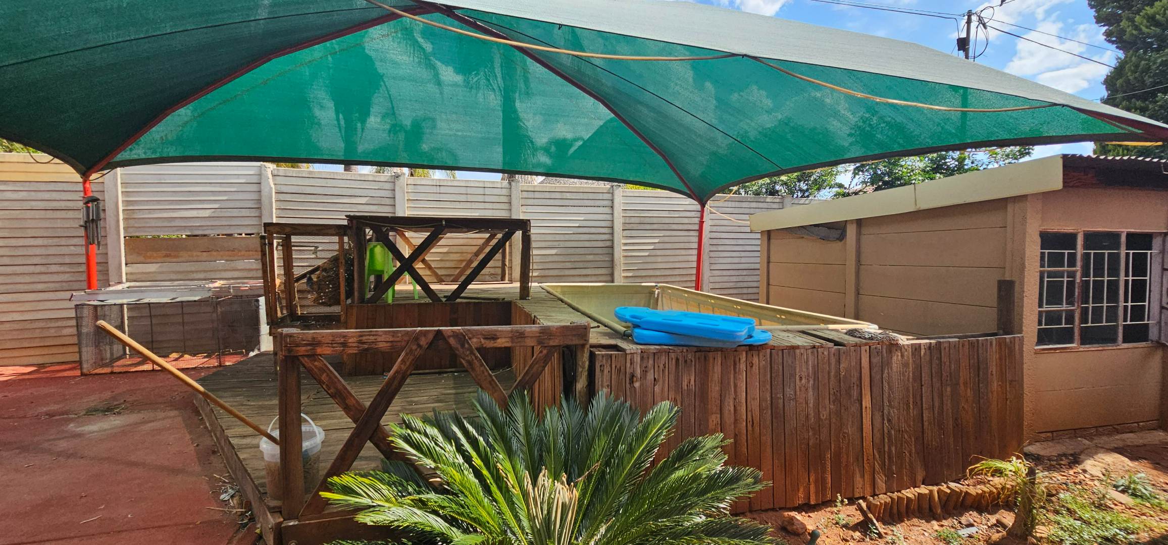 At the back of the property, there’s a dedicated entertainment area, a storeroom, and a sparkling pool — perfect for hosting family and friends. Additional features include a borehole, double garage, and shaded parking.