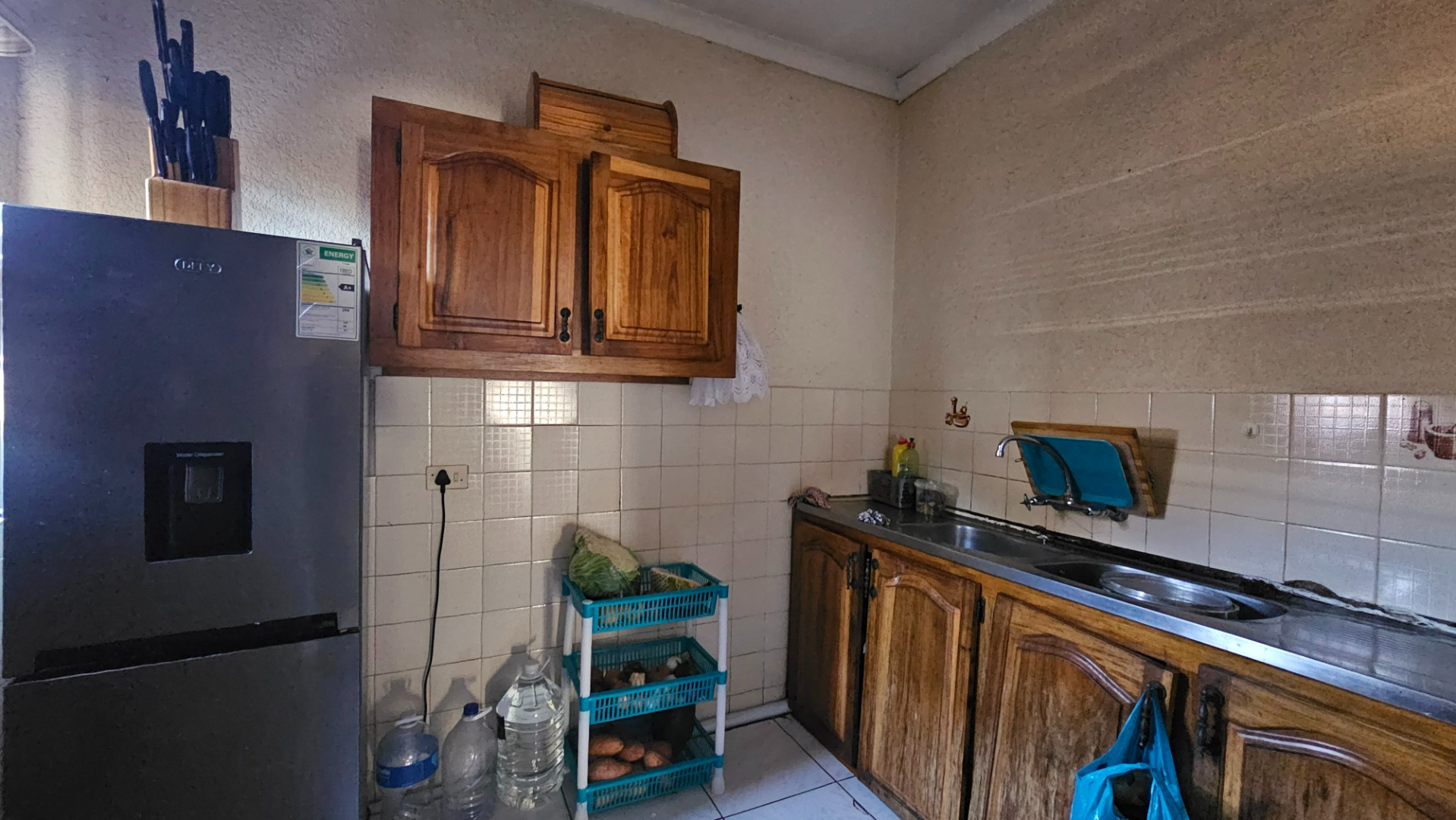 Kitchen Tiled Floors, Built-in Cupboards, Electric stove, Open Plan