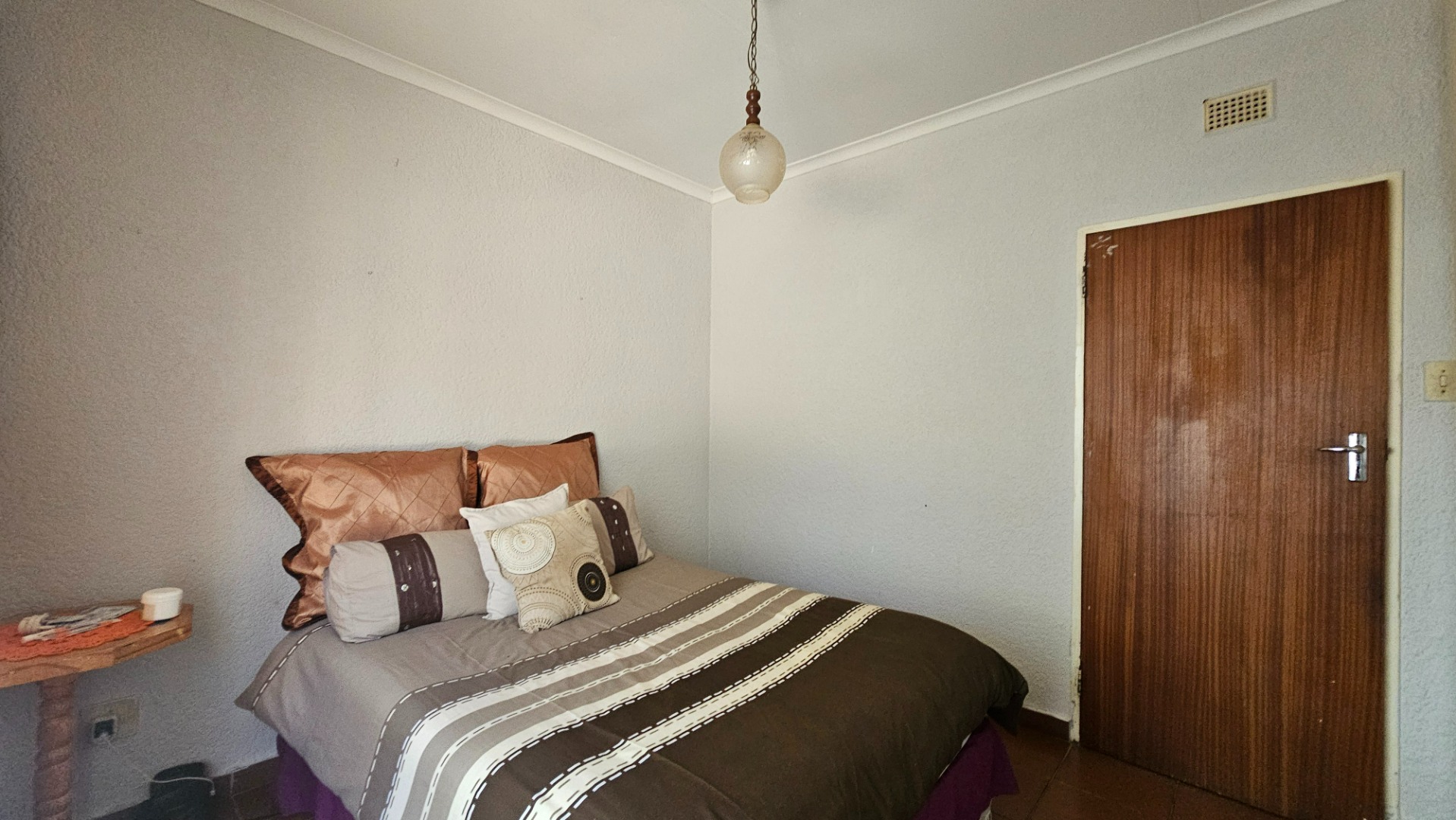 Bedroom 4 Tile Floors, Built-in Cupboards, Double Bed, Curtain Rails
