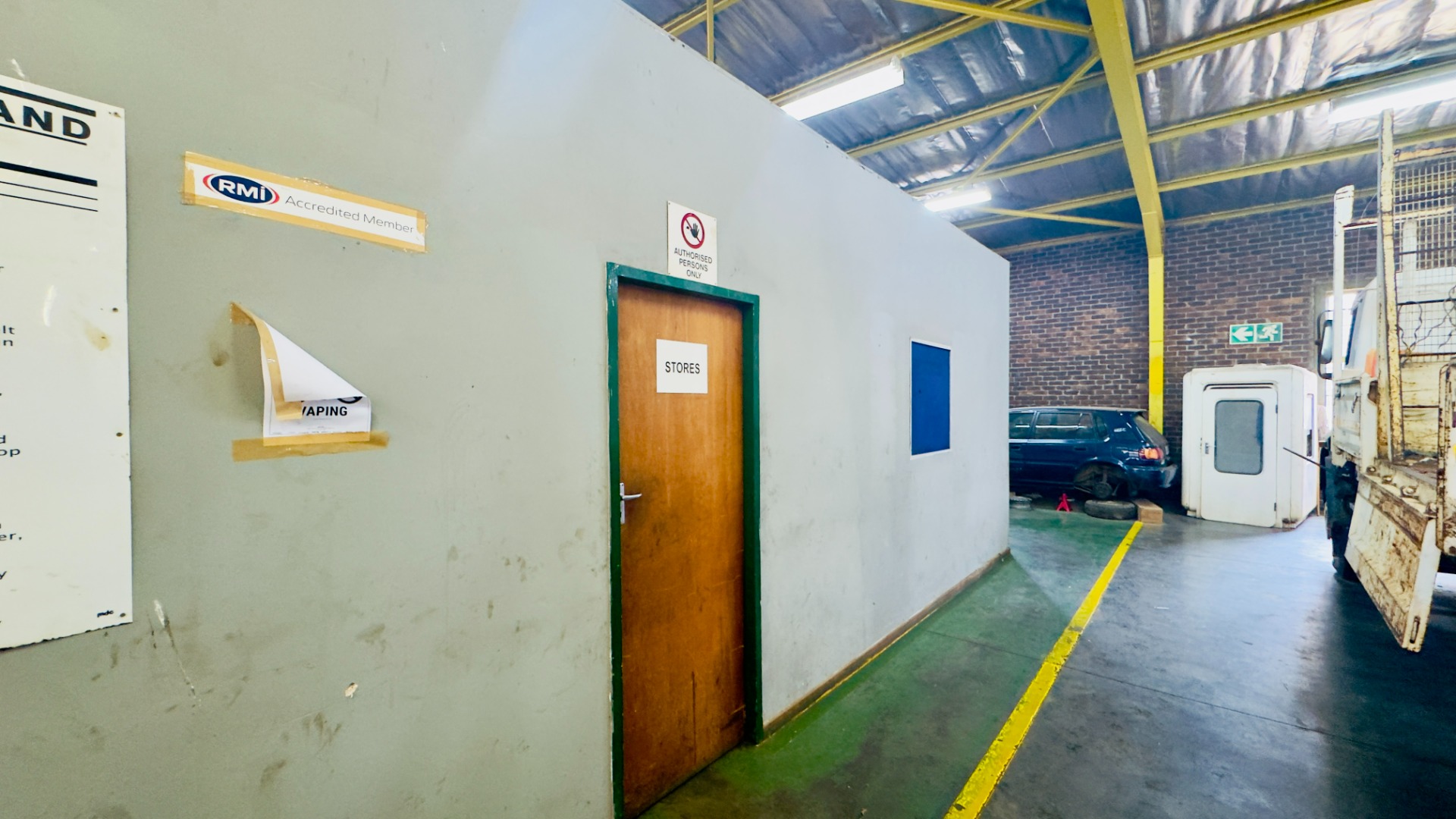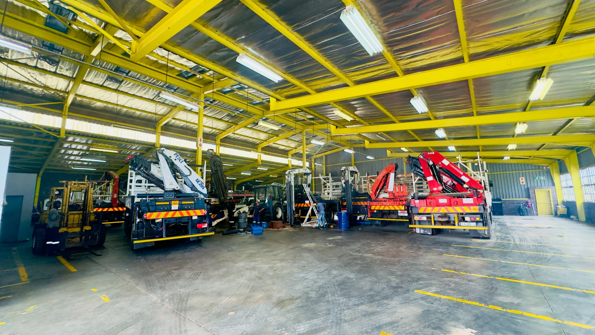 The workshop offers an impressive ±8-metre internal height clearance, making it ideal for heavy-duty operations, servicing, or vertical storage. Access is provided via three large roller shutter doors (±5m height clearance), allowing for efficient movement of trucks, interlinks, and large equipment.