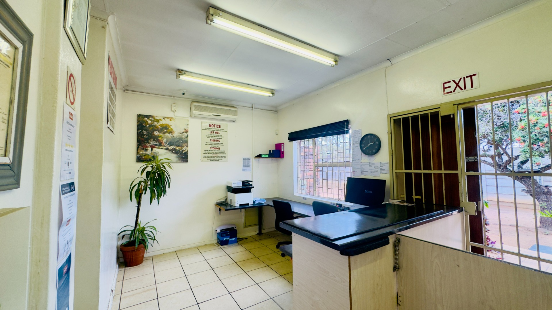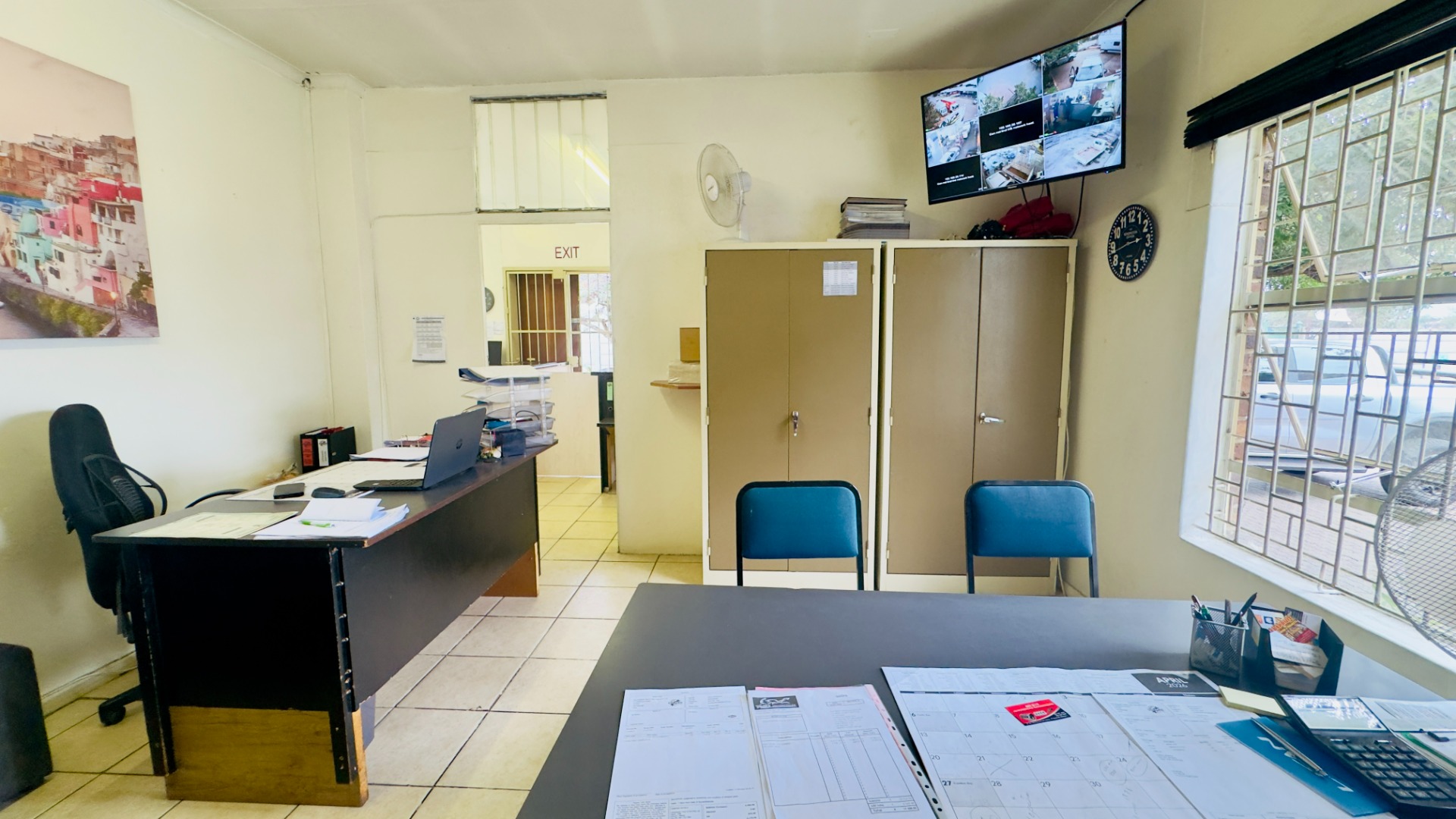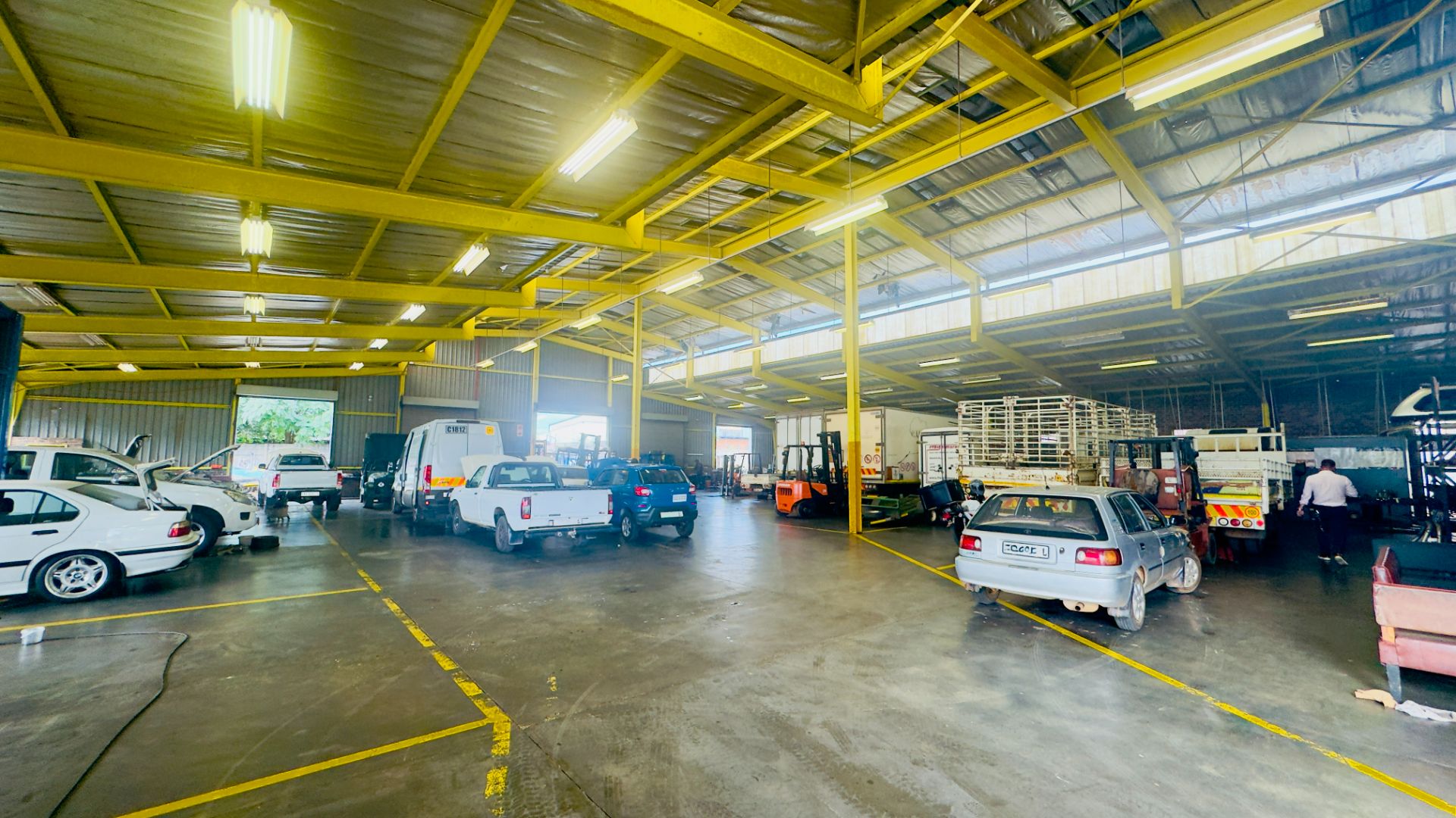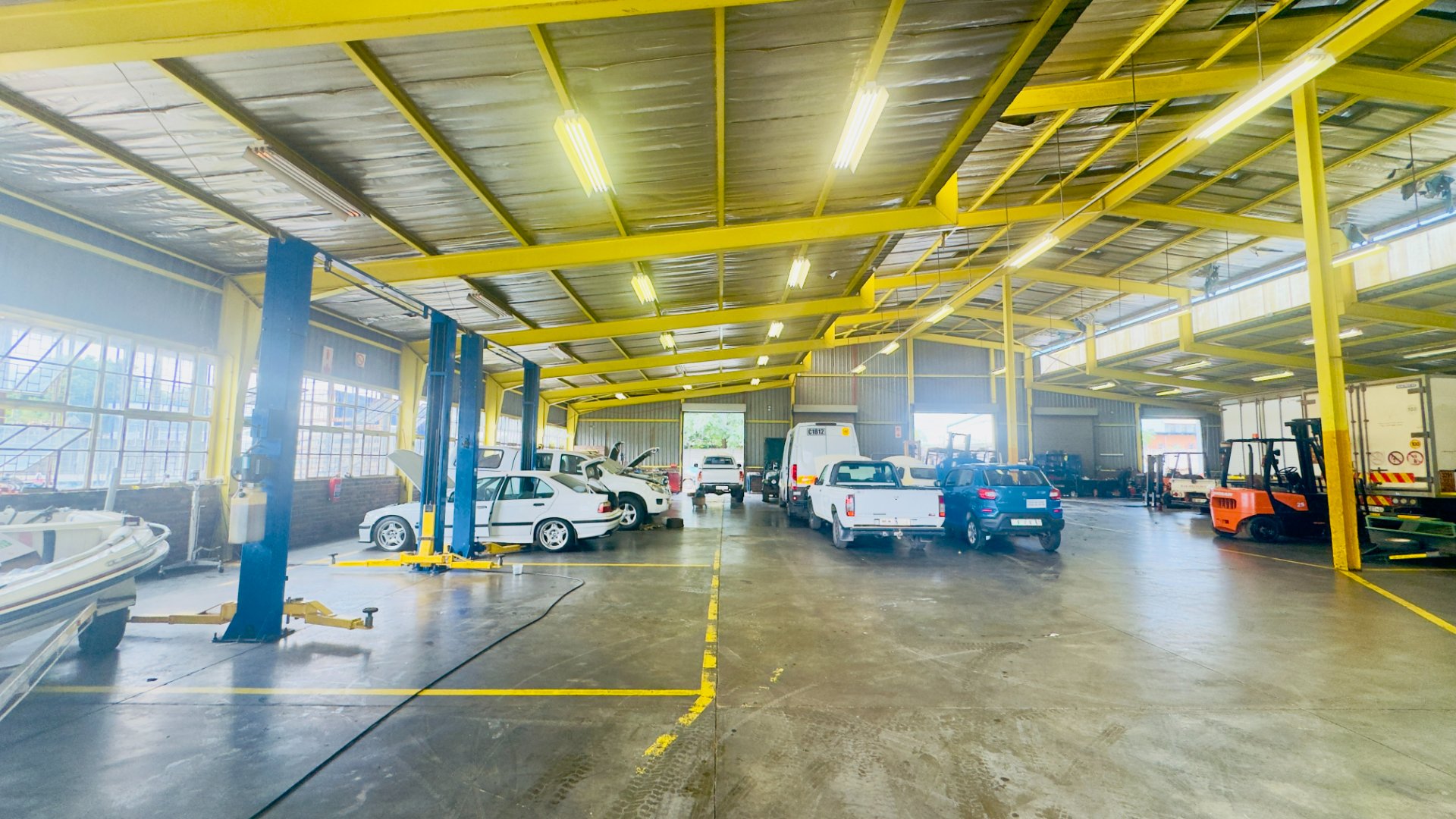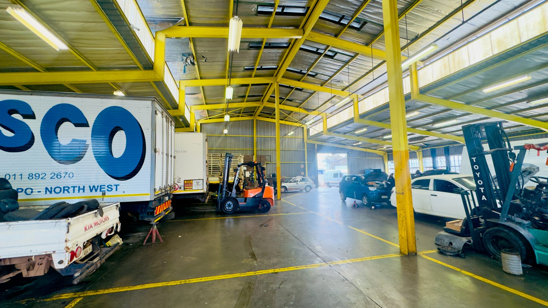 The workshop features an impressive ±8-metre internal height clearance, making it ideal for heavy-duty operations, servicing, or vertical storage. Access is provided via three large roller shutter doors (±5m height clearance), allowing for efficient movement of trucks, interlinks, and large equipment.