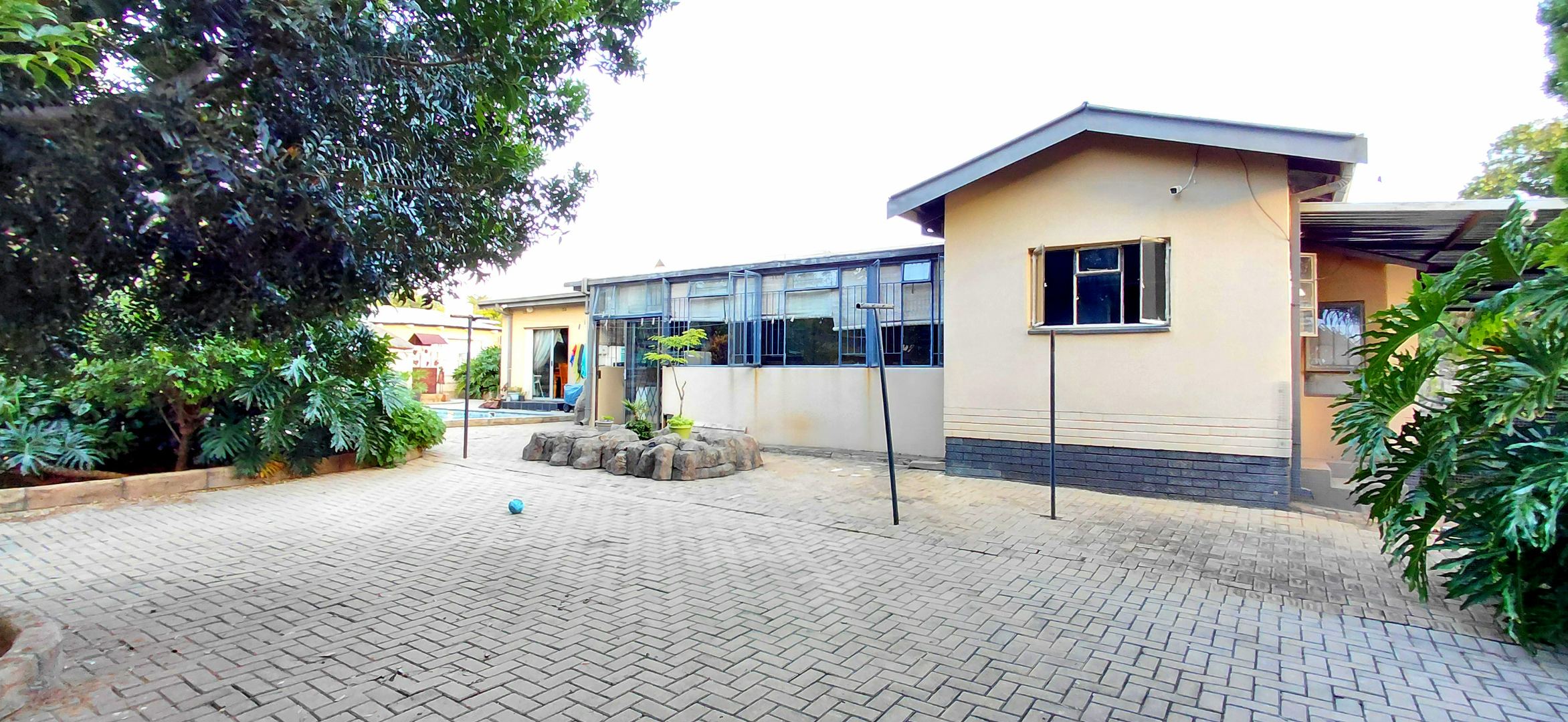 Positioned on a generous 1586m² erf in sought-after Hospitaalpark, this versatile 4-bedroom home offers exceptional potential for both residential living and future business use. The property also features 2.5 bathrooms (main en-suite) and a practical layout flowing from the lounge into the dining area and well-equipped kitchen with gas stove, separate scullery, and laundry. Outside, the property truly stands out with ample parking including 7 carports and additional undercover parking—ideal for business purposes. Enjoy relaxed entertainment with a swimming pool, Lapa, pool shed, and a dedicated entertainment area complete with a built-in bar.