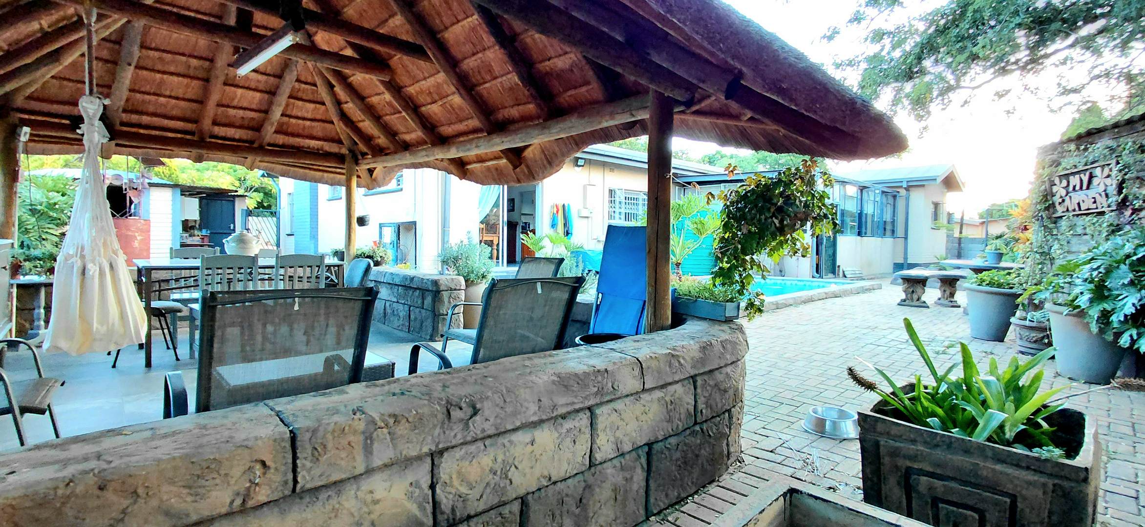 Positioned on a generous 1586m² erf in sought-after Hospitaalpark, this versatile 4-bedroom home offers exceptional potential for both residential living and future business use. The property also features 2.5 bathrooms (main en-suite) and a practical layout flowing from the lounge into the dining area and well-equipped kitchen with gas stove, separate scullery, and laundry. Outside, the property truly stands out with ample parking including 7 carports and additional undercover parking—ideal for business purposes. Enjoy relaxed entertainment with a swimming pool, Lapa, pool shed, and a dedicated entertainment area complete with a built-in bar.