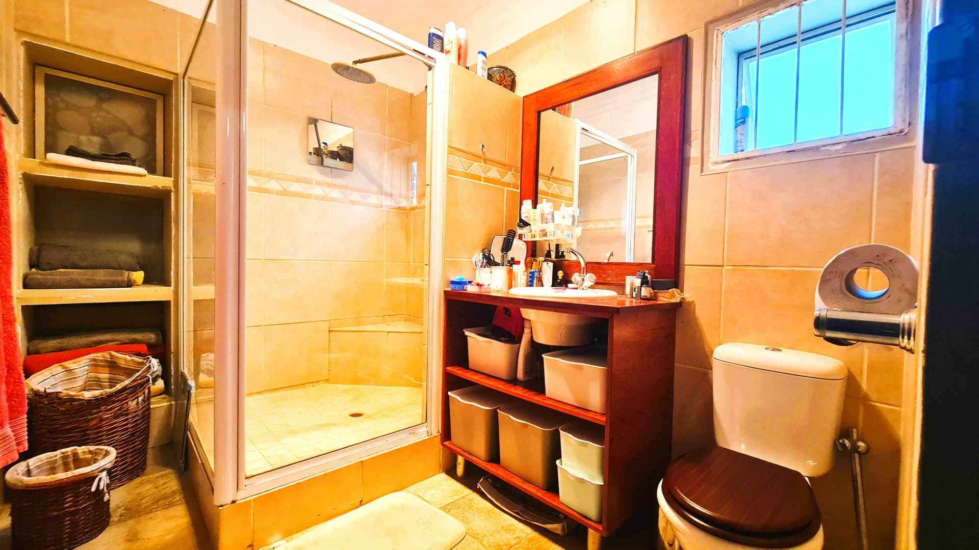 Designed for both relaxation and entertainment, the home features multiple living areas, including a cozy lounge, a dining space, and a family/TV room equipped with a big-screen projector and air conditioning. A dedicated study and a large studio provide the perfect spaces for work or creative endeavours. The open-plan kitchen is thoughtfully designed with a scullery and a laundry area, ensuring convenience in daily living. Storage is never a concern, thanks to two sizable storerooms.