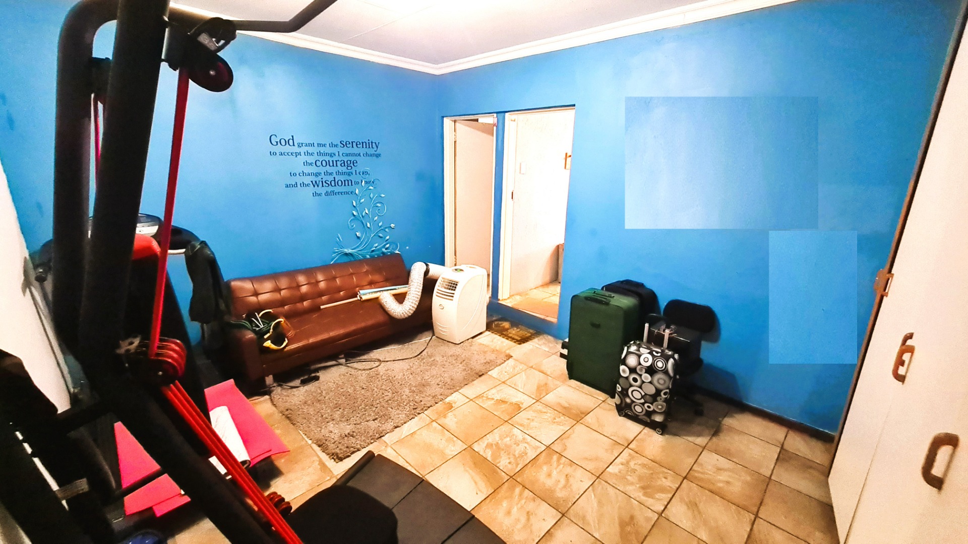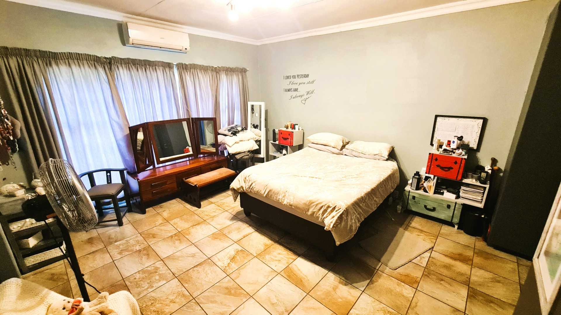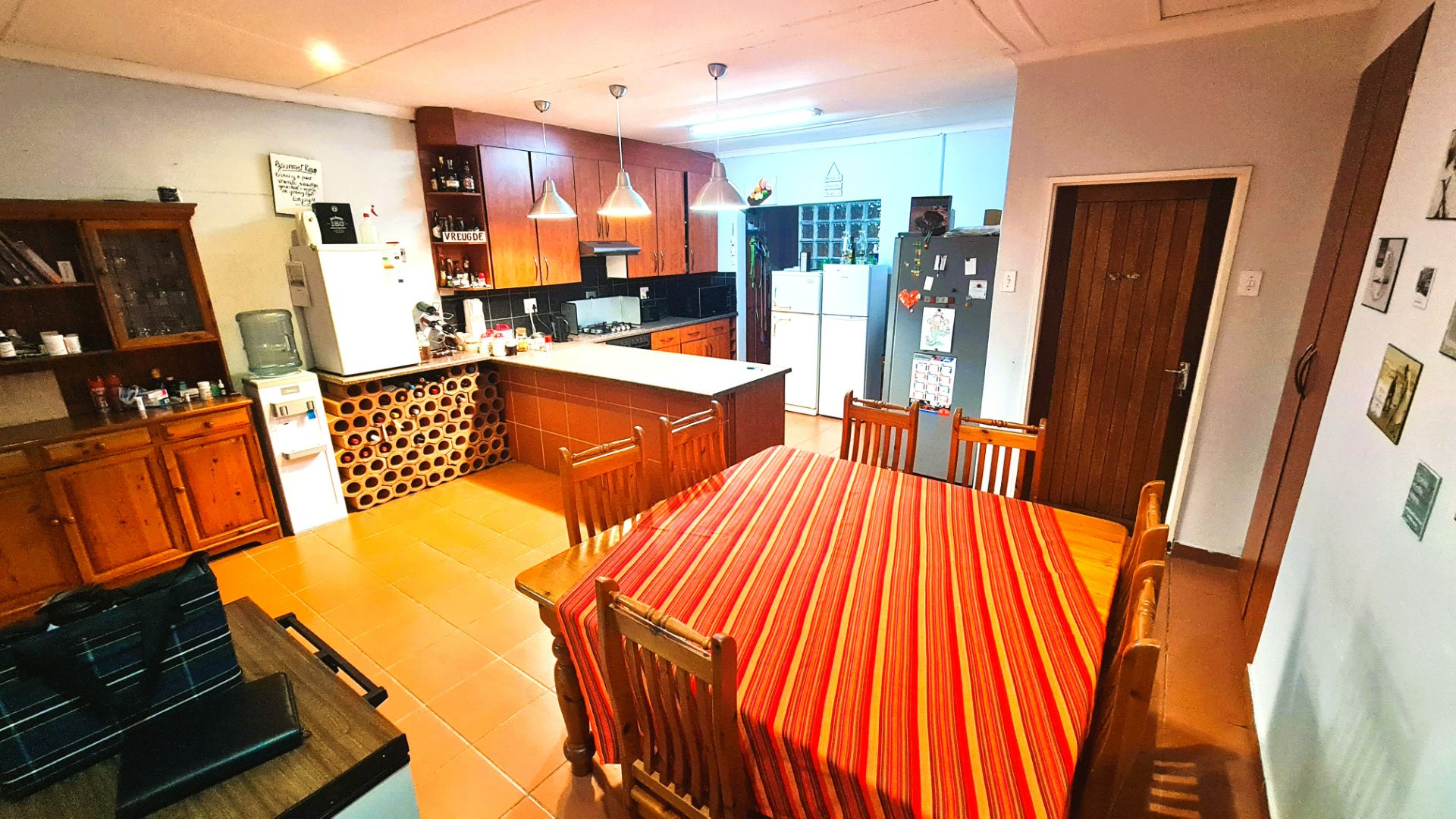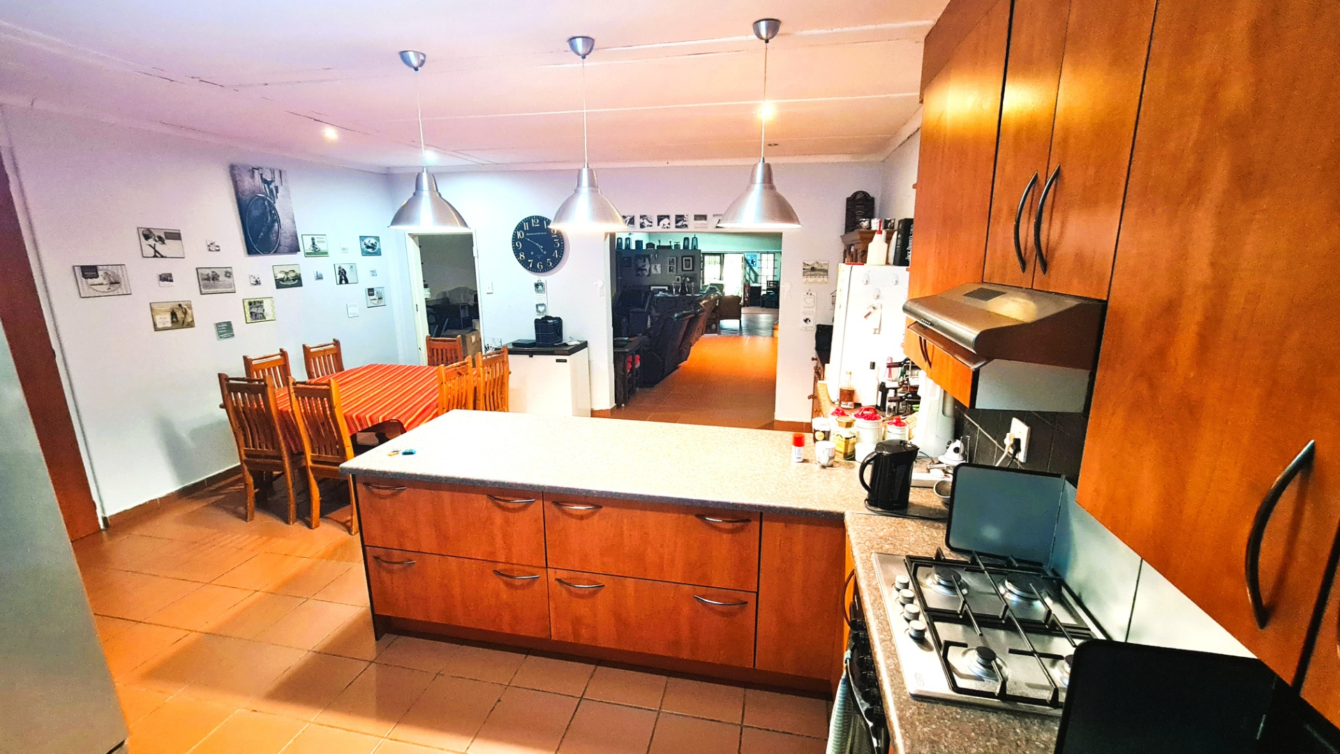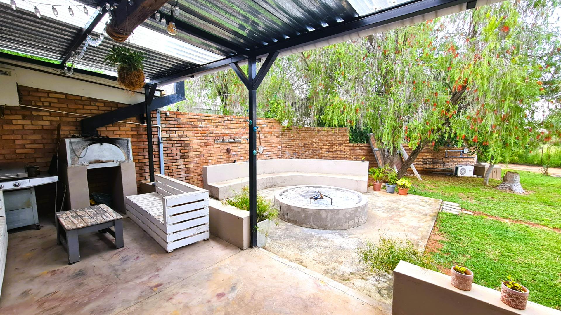 Stepping outside, the property continues to impress with its expansive, fully fenced garden, secured by an electric entrance gate. A heated swimming pool, a boma, and a dedicated entertainment area make this the perfect setting for hosting guests or unwinding in style. Covered parking is well taken care of with two double steel carports, while water security is guaranteed with a 10,000L backup water tank and two boreholes, one of which is fully equipped.