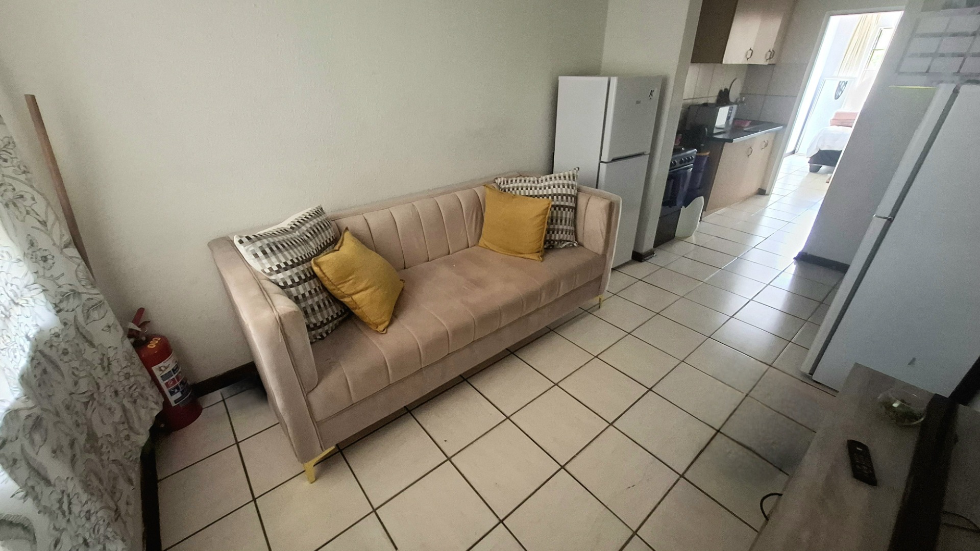 The well-maintained apartment features a bright open-plan lounge that flows into a small but functional kitchen fitted with built-in cupboards and a stove with oven. Two spacious bedrooms with built-in wardrobes enhance tenant appeal, while the bathroom, fitted with a bath, basin, and toilet, ensures everyday convenience.