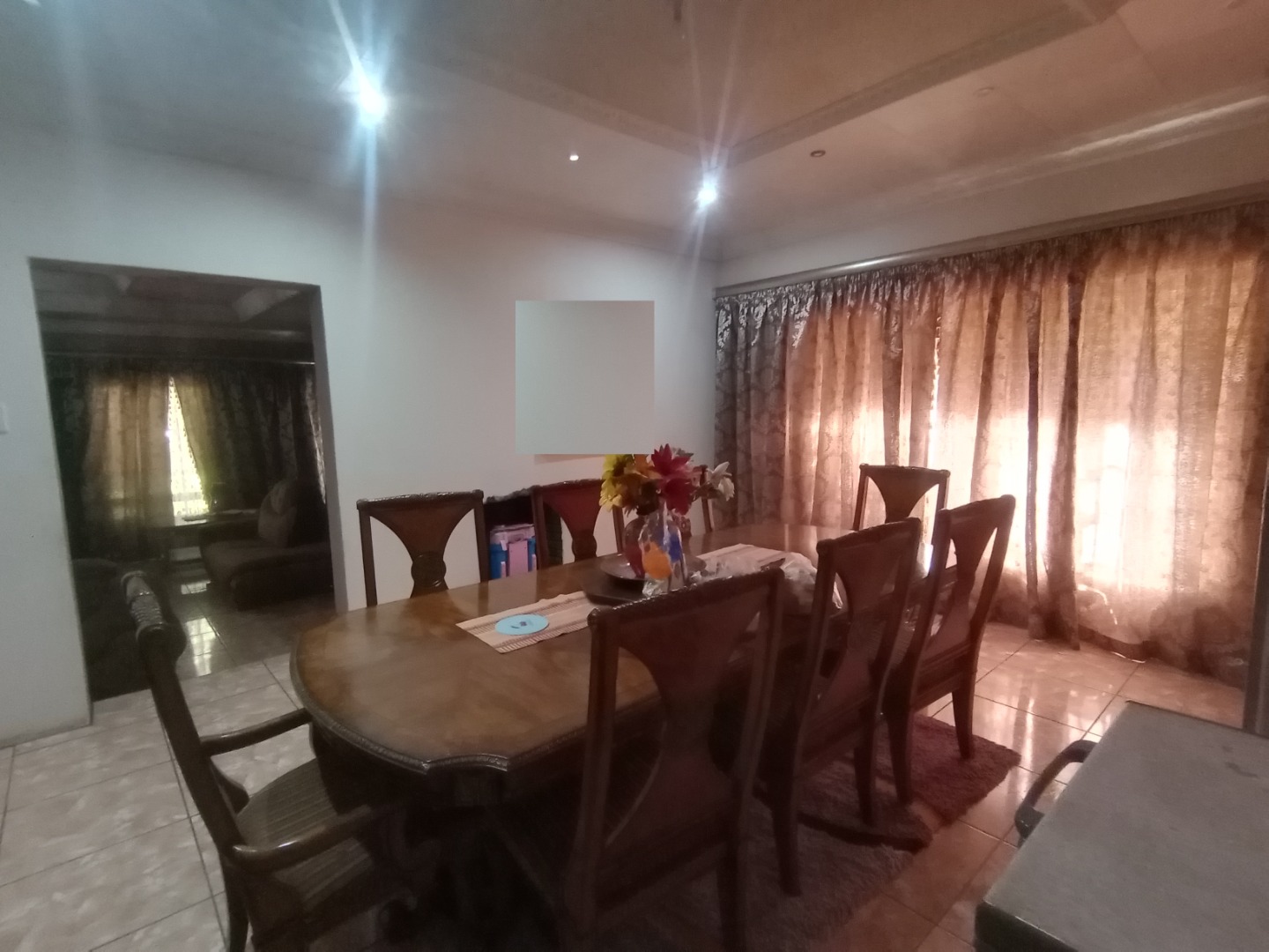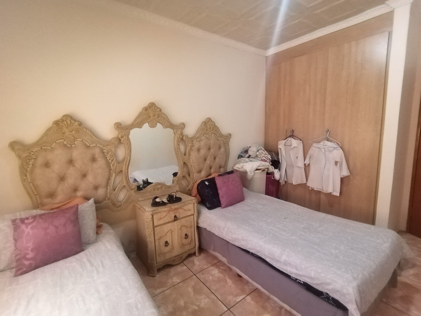 Outside, the property offers incredible extras, including a large zinc garage that can accommodate 4 to 5 vehicles, a sparkling swimming pool, and 3 separate flatlets for extended family or rental income. Two flatlets offer a bedroom, bathroom, small kitchen, and lounge, while the third features a bedroom, bathroom, and small kitchen. The property is equipped with a borehole, water tank, electric fence, alarm system and an intercom for added safety and convenience.