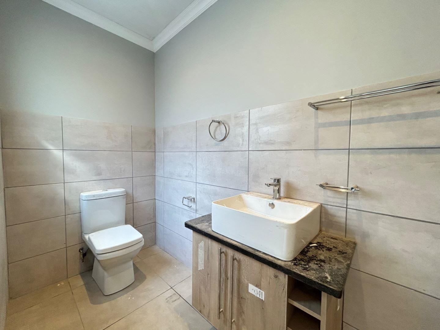 Bathroom 3 Tiled Floors, Shower, Basin and Toilet