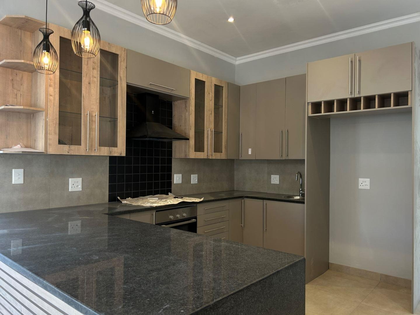 Kitchen Tiled Floors, Built-in Cupboards, Electric stove, Open Plan, Pantry