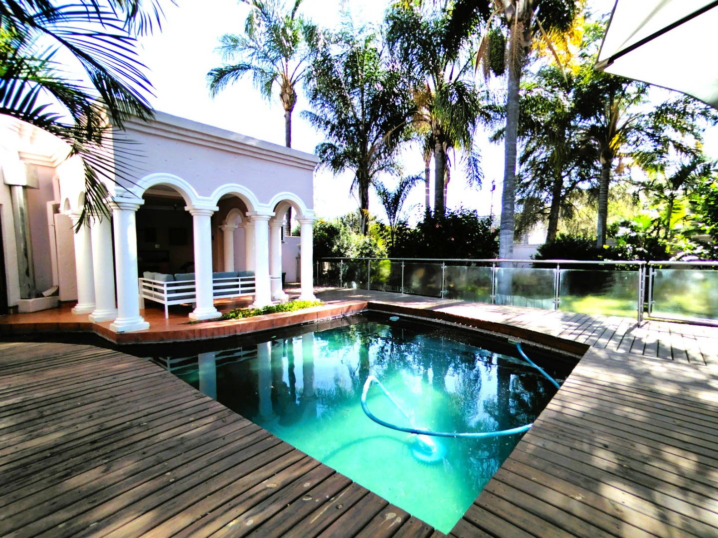 Discover your next purchase with this exceptional property, perfectly situated on a large stand in a serene, tree-lined street within one of the area’s most sought-after, high-value neighbourhoods. Designed for comfort, sustainability, and security, this home is ideal for a discerning family seeking both peace of mind and modern convenience. The property boasts a fully off-the-grid solar power system and a reliable borehole with backup water tanks, ensuring uninterrupted energy and water supply year-round. The expansive, beautifully manicured garden offers a tranquil escape and a stunning setting for entertaining guests, with ample space for children to play and adults to relax, while the heated pool adds a touch of resort-style living, perfect for year-round enjoyment. Equipped with top-tier security features, the home provides complete peace of mind, while the thoughtfully designed layout caters perfectly to both everyday family living and sophisticated social gatherings. Don’t miss this rare opportunity to own a secure, self-sufficient sanctuary in a prime location.