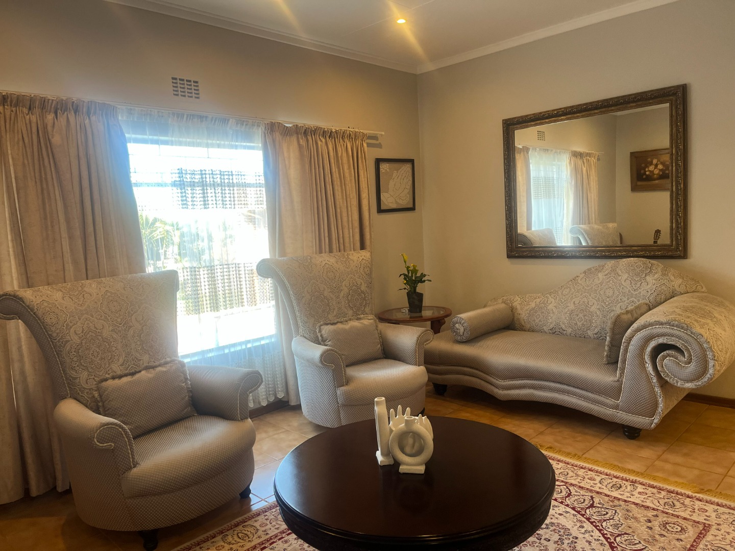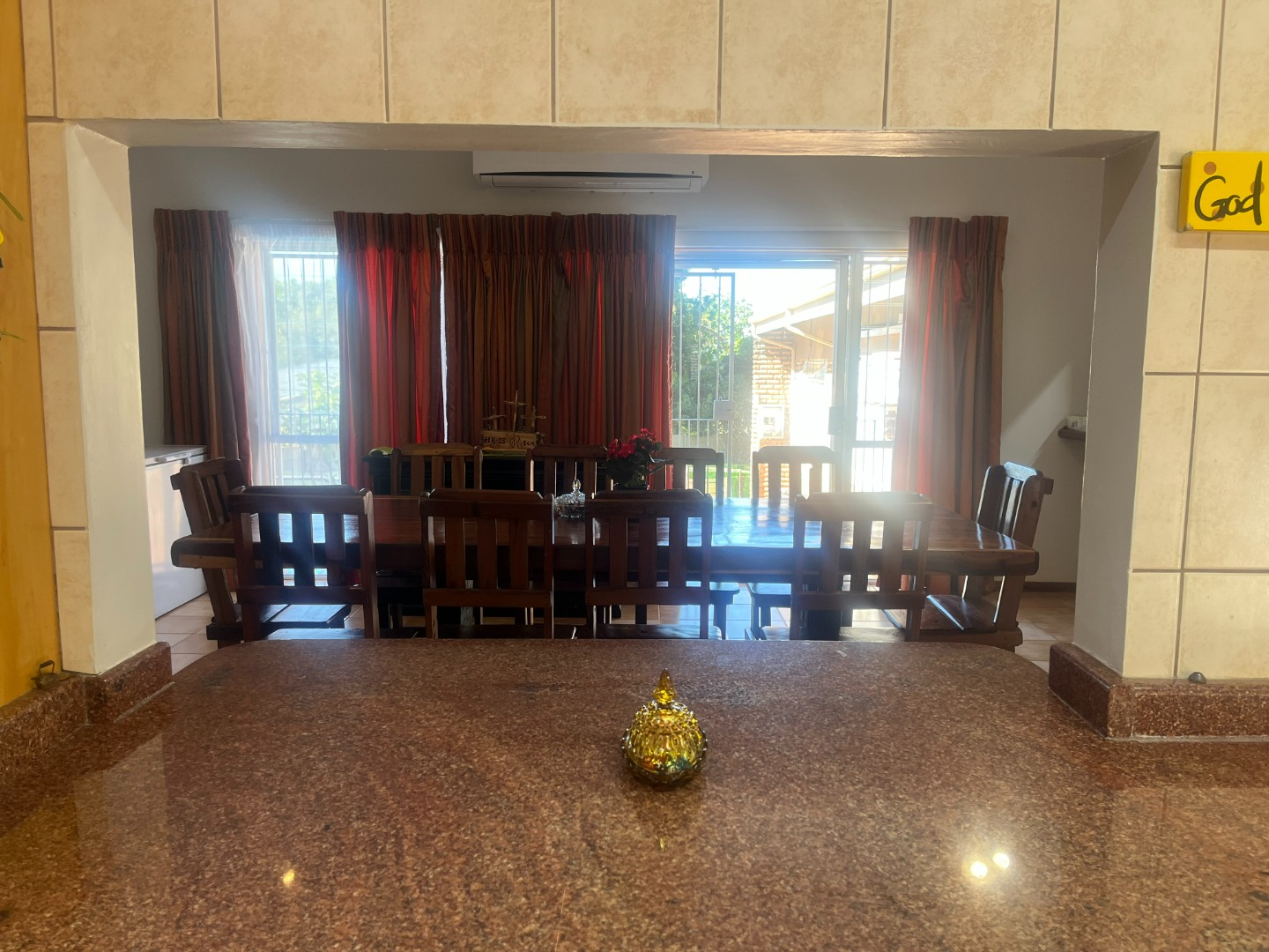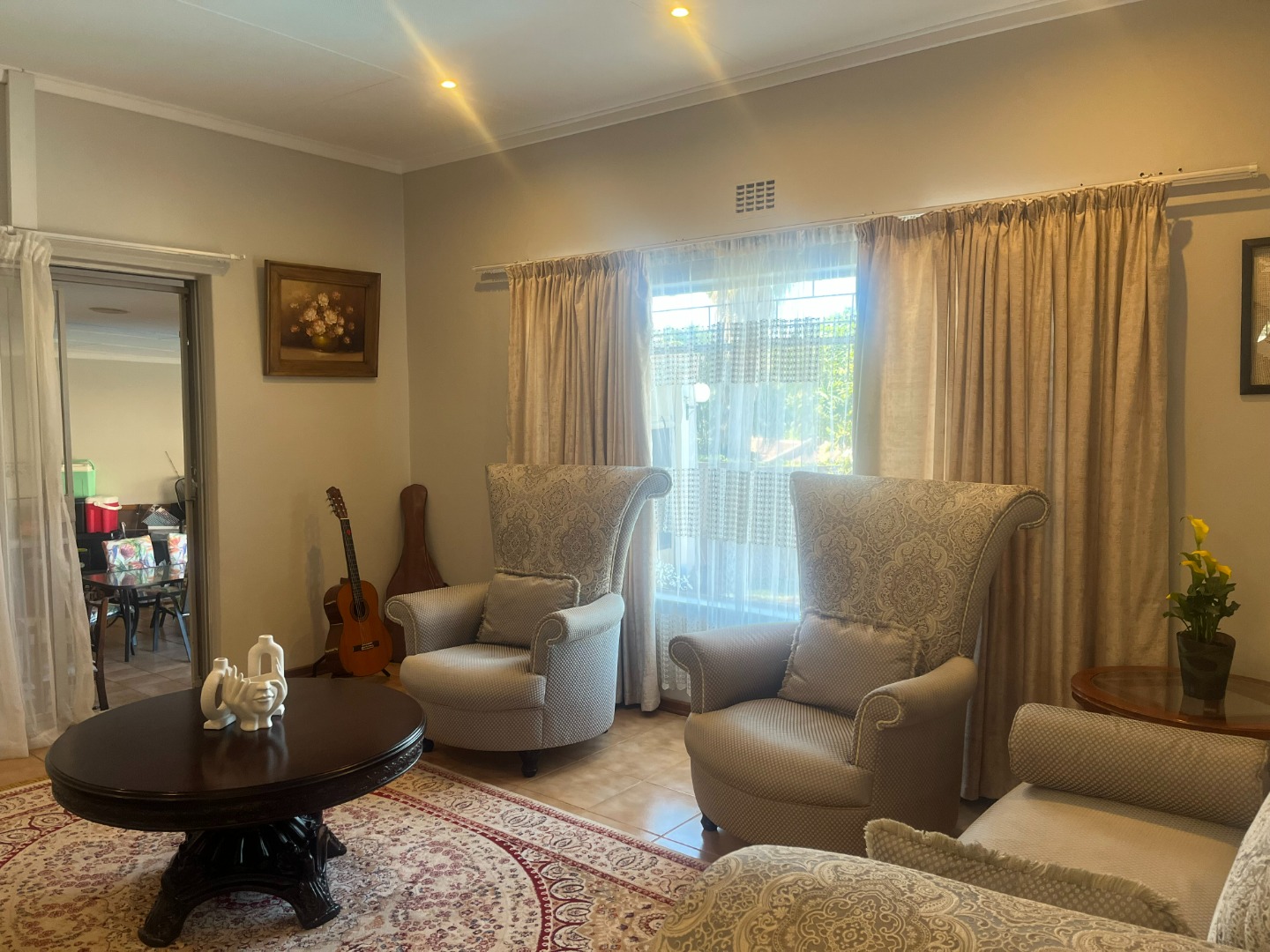 This family home offers 3 air-conditioned bedrooms, 2 bathrooms ( main en-suite) and a separate guest toilet.