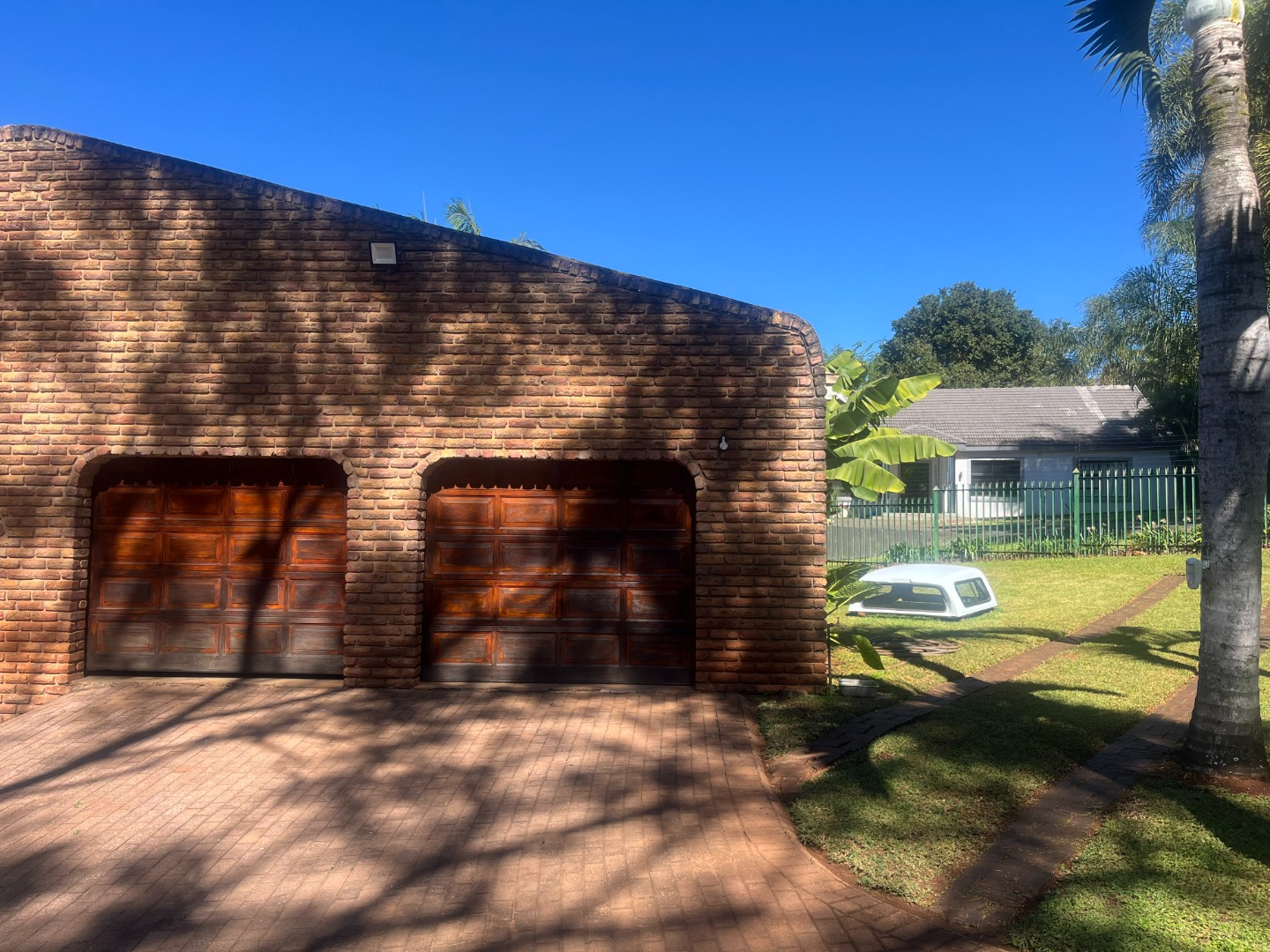 Double garage with electric doors.