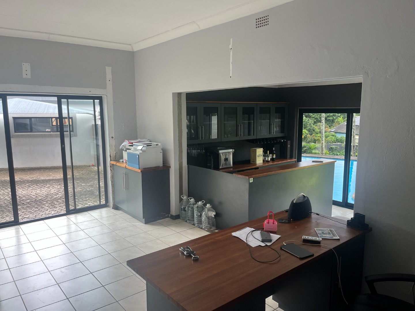 It features a covered, closed patio with built in bar and braai overlooking the sparkling pool, perfect for relaxing and entertaining.