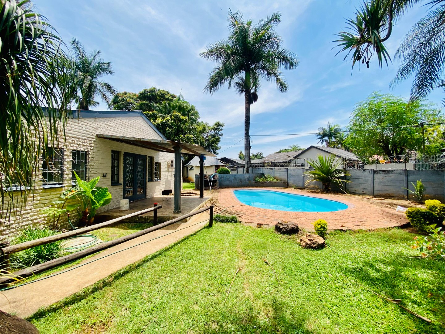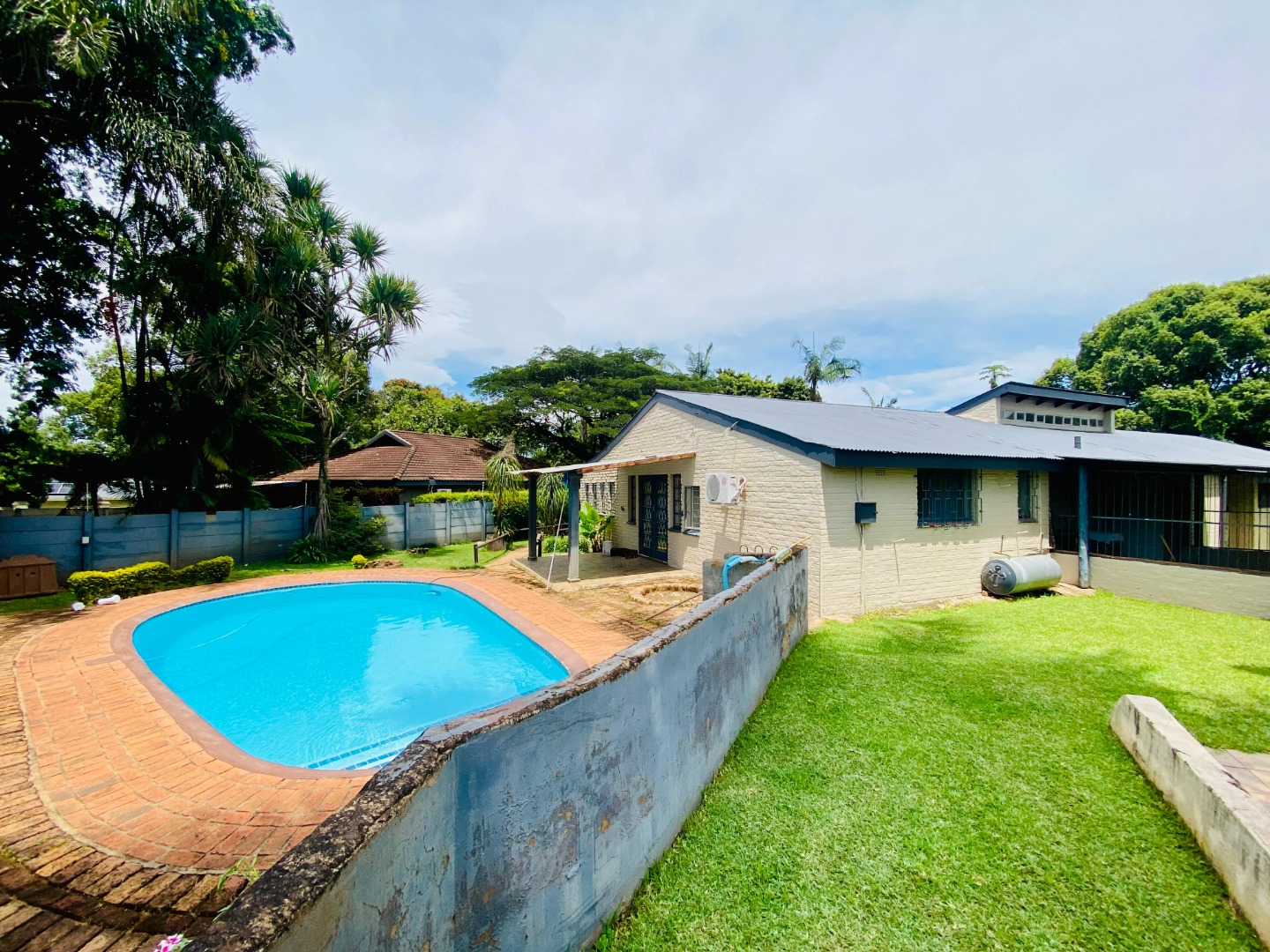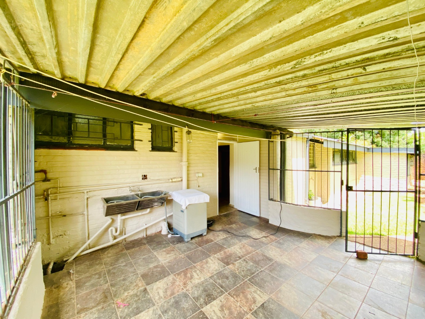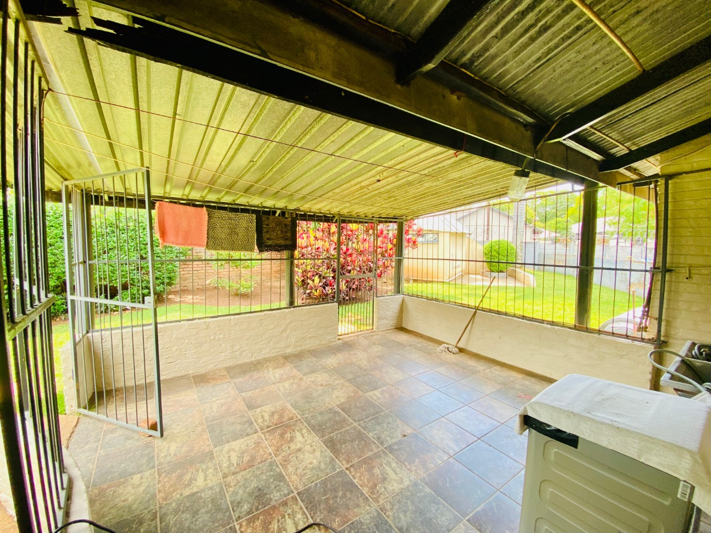 It massive stoep with built-in braai overlooking the garden and a sparkling swimming pool.