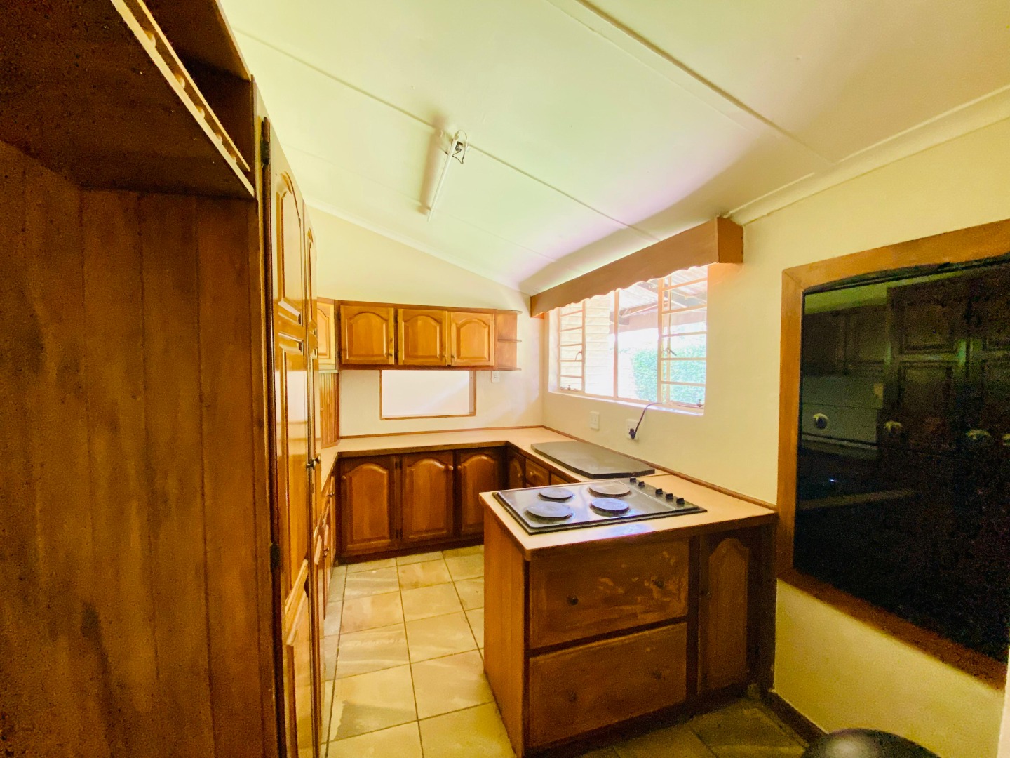 The home offers 3 bedrooms with 2 bathrooms, a kitchen fitted with wooden cupboard and a scullery, living room, and dining area.